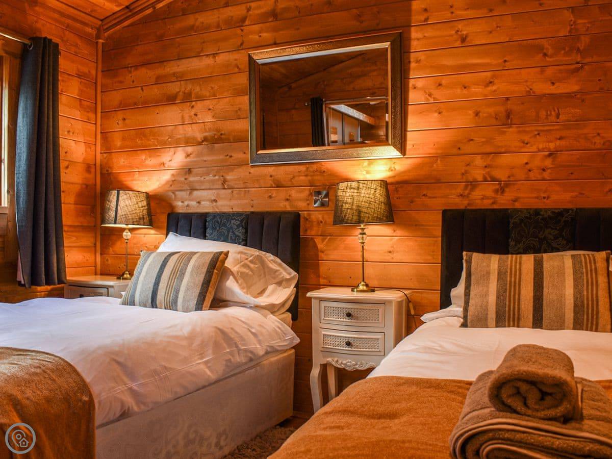 Damsel Lodge features two bedrooms—one double and one twin—each with dressing rooms and en-suite bathrooms, along with a family bathroom. Heron Lodge is a three-bedroom lodge with one double, two twin rooms, a spacious family bathroom, and a separate toilet. Otter Lodge is a romantic retreat designed for couples, featuring a large double bedroom, a generous en-suite with a bath and separate shower, and a private sauna. Kingfisher Lodge accommodates five people in three bedrooms—one double, one twin, and one single—along with a family bathroom and a separate toilet.