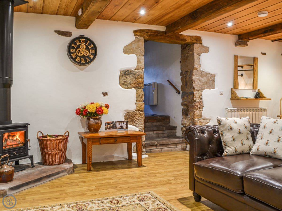 Converted from part of a 17th Century bank barn, you’ll find The Bothy a haven from the minute you arrive. A lot of care and thought has gone into the renovation, you can see the expert craftmanship throughout. The attention to detail is evident and it’s full of quirky features like the original beams and the exposed stonework which all add character and charm. The bothy has been furnished to an excellent standard throughout with a comfortable king-size oak bed frame, hanging space, storage and a range of lighting. The open plan studio-style living room offers easy seating, with a wood burner and 40-inch smart TV. Perfect to relax and unwind after a day of exploring. The kitchen is well equipped with retro appliances and everything you need if you fancy cooking while your away, you can perch on the tractor-seat style stools at the breakfast bar and enjoy a romantic meal for two. The bathroom features a power shower and the quirky sink has been handcrafted from a barrel from the local distillery.
