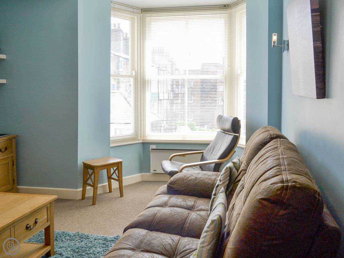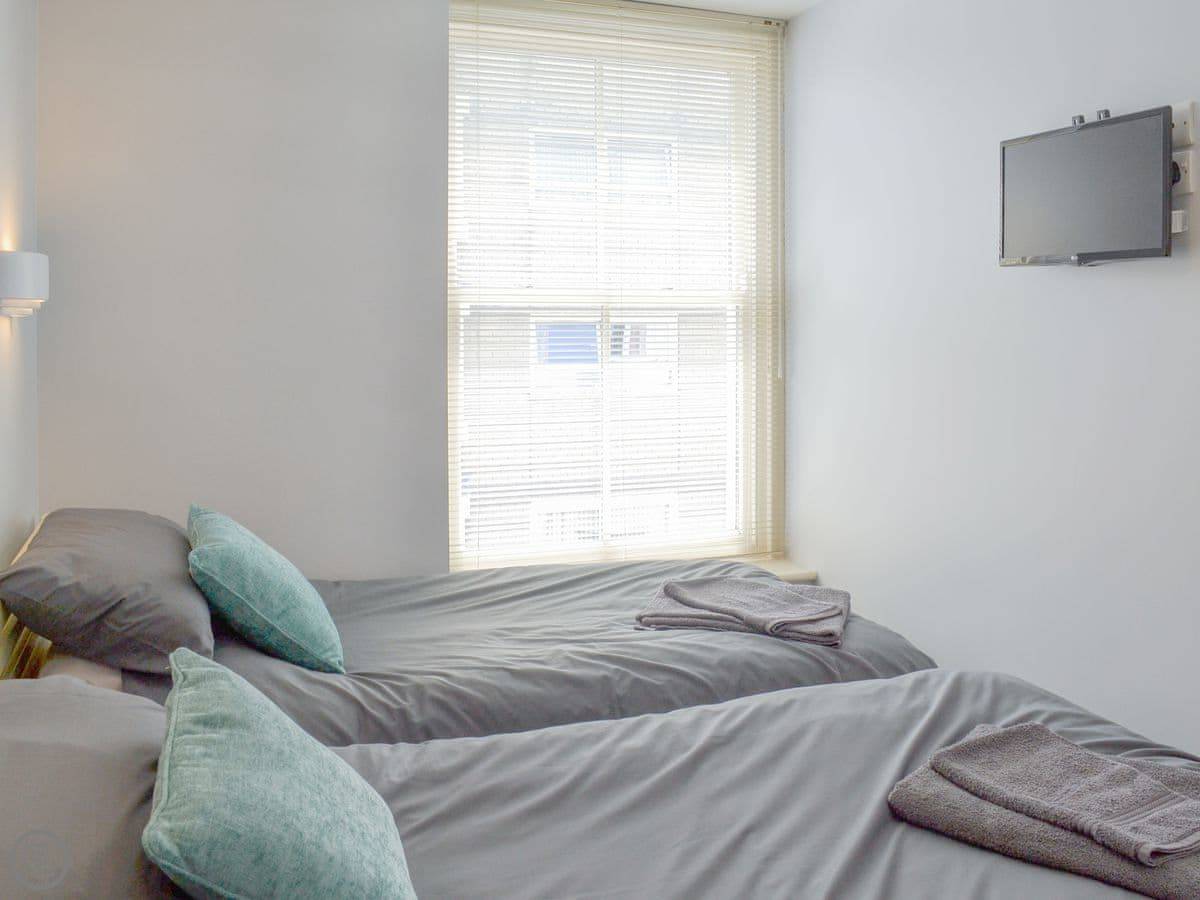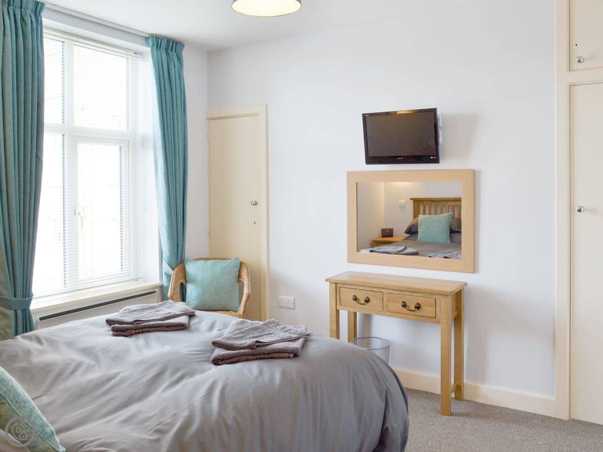 You get a good view of the sea from the living room window. Both bedrooms have a TV. It sleeps four, with two bedrooms and one bathroom.