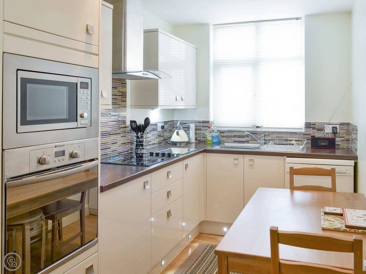 The flat has a dishwasher, wifi, and a shower. Bedding and towels are included. You can bring one dog. There's a cot and highchair if you need them.
