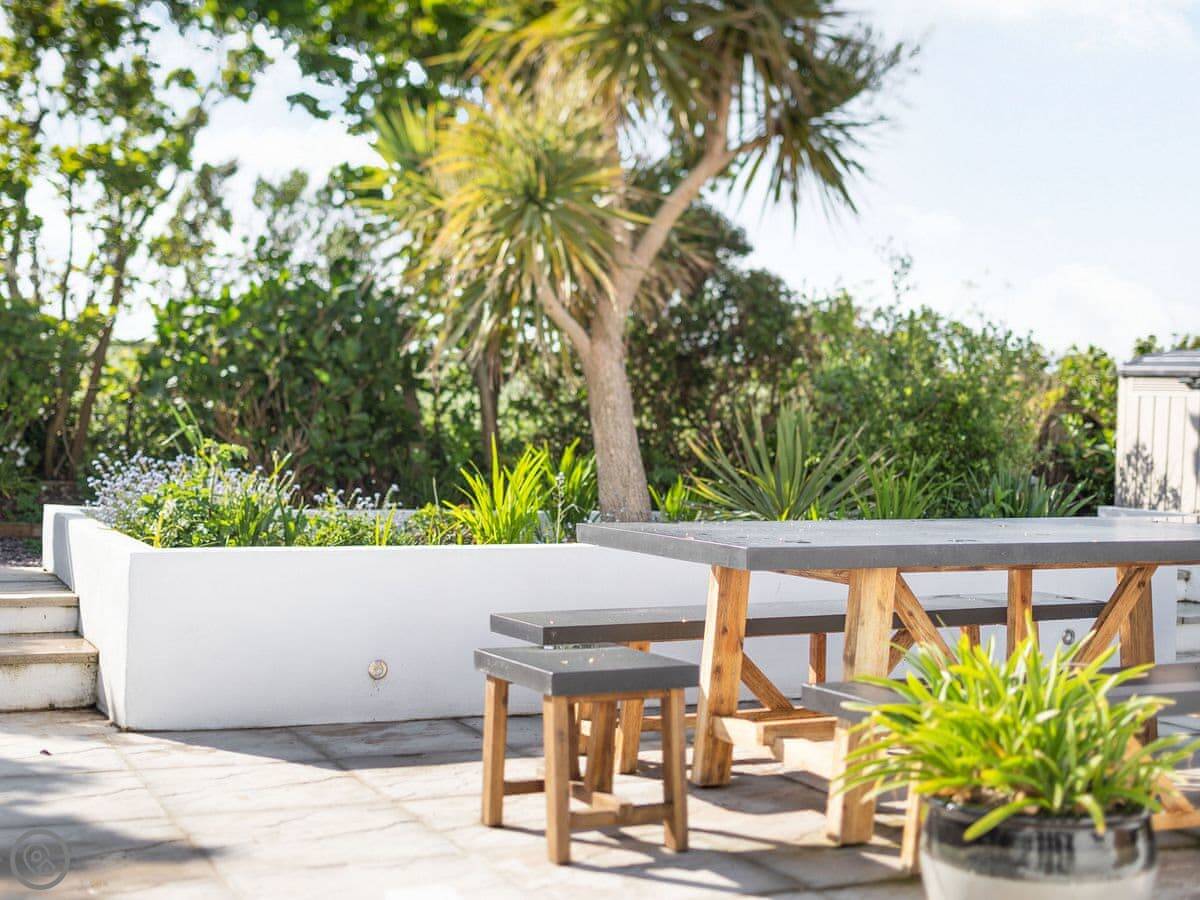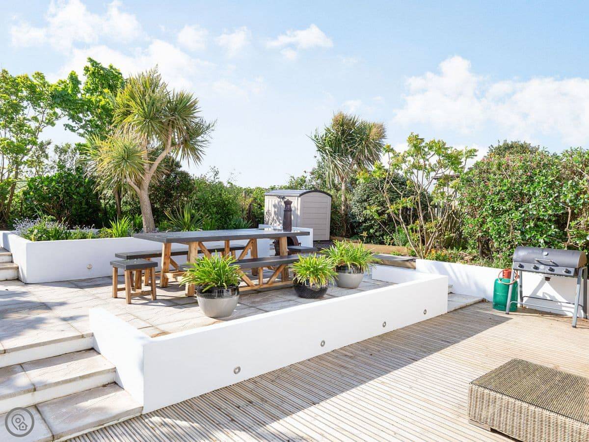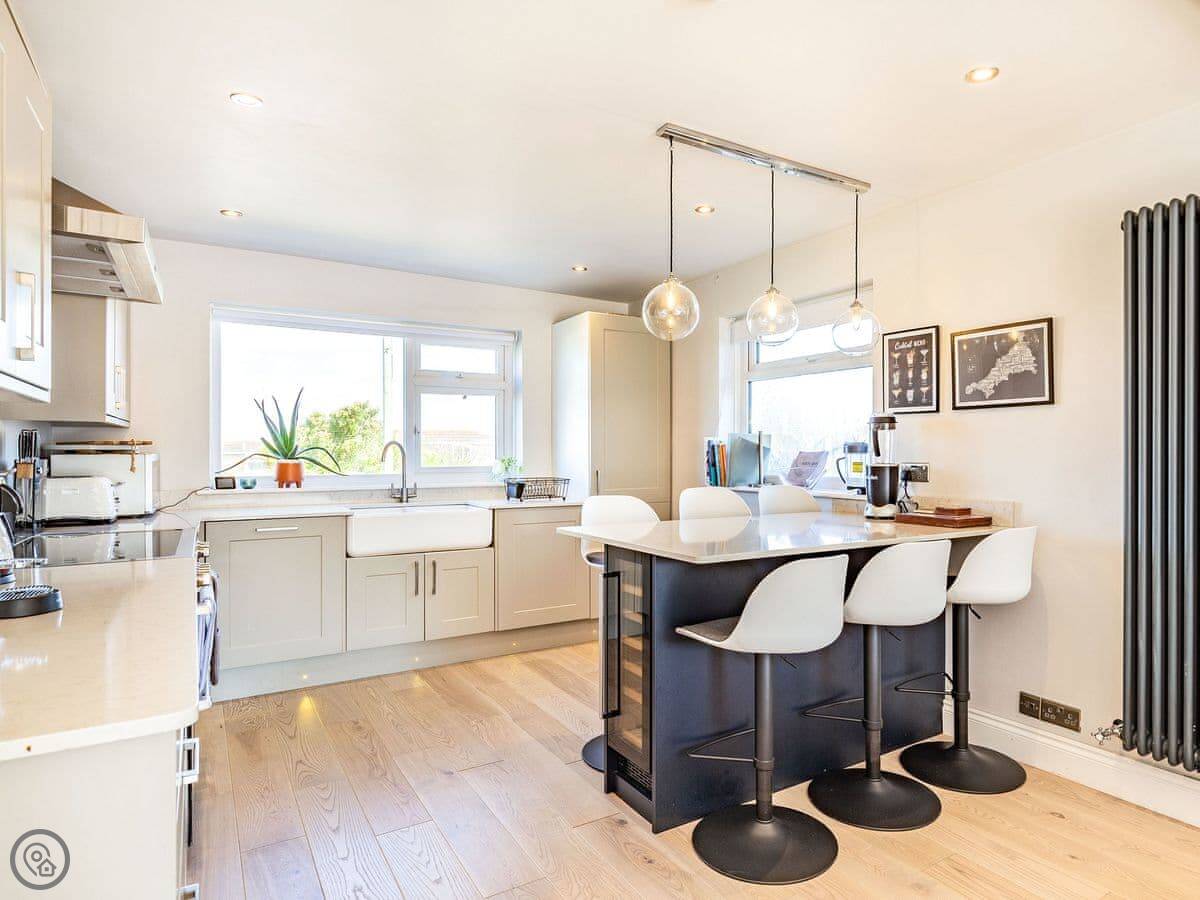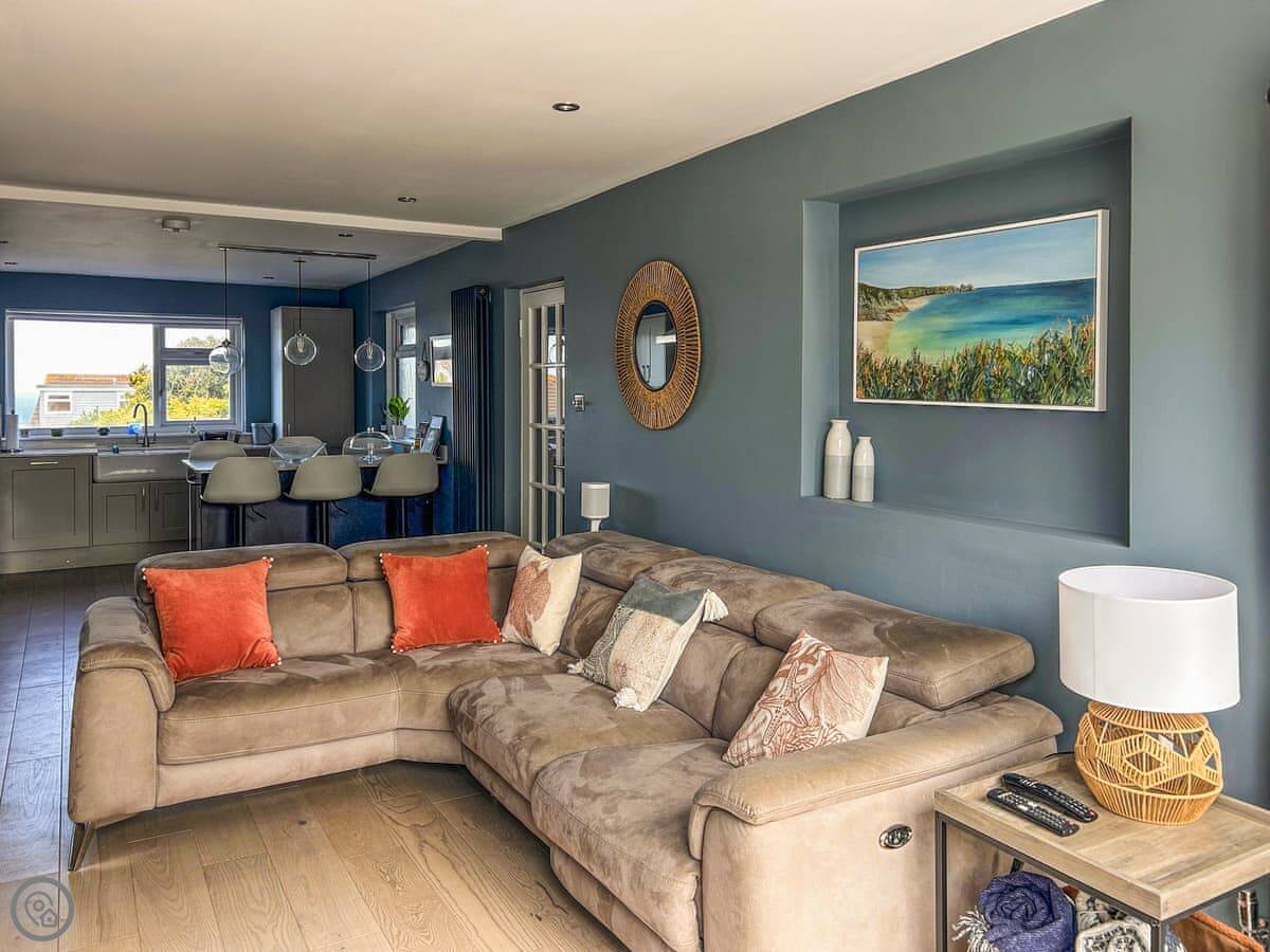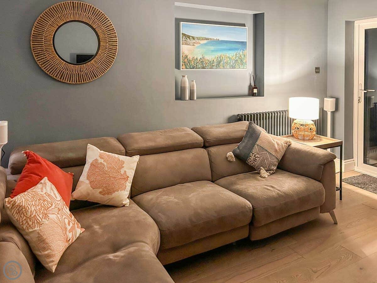 Villa Calafia is a house at the end of a quiet cul-de-sac in Porthtowan. It's detached, so no one's through the wall. Parking for three cars on the driveway.