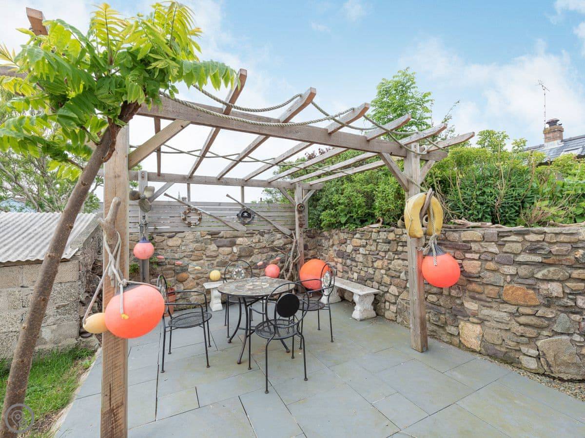 Bwthyn Y Bwlch is on the edge of St Davids. It's a detached house, modern, built by an architect. You go through an archway to get to it. The garden is private.