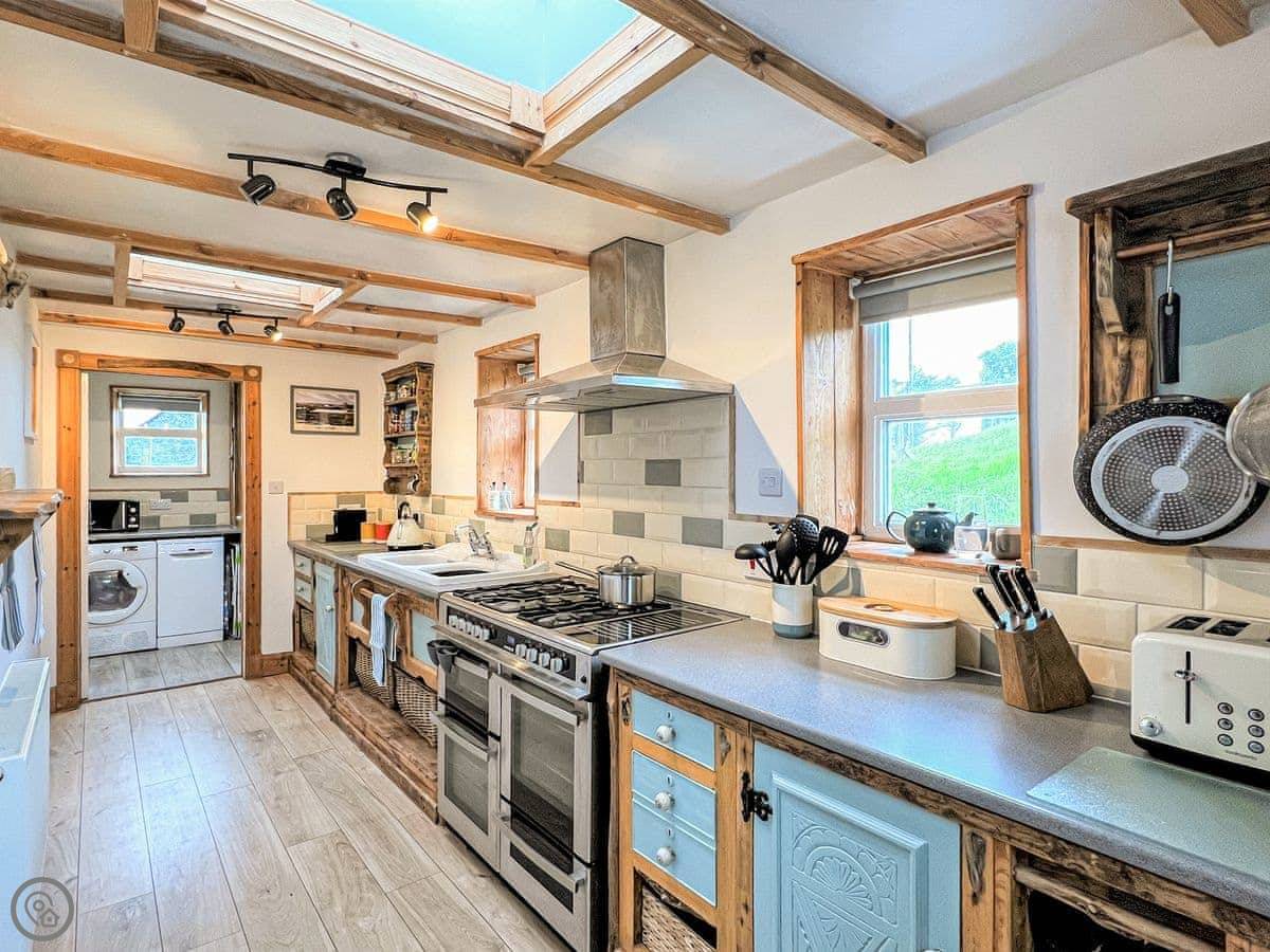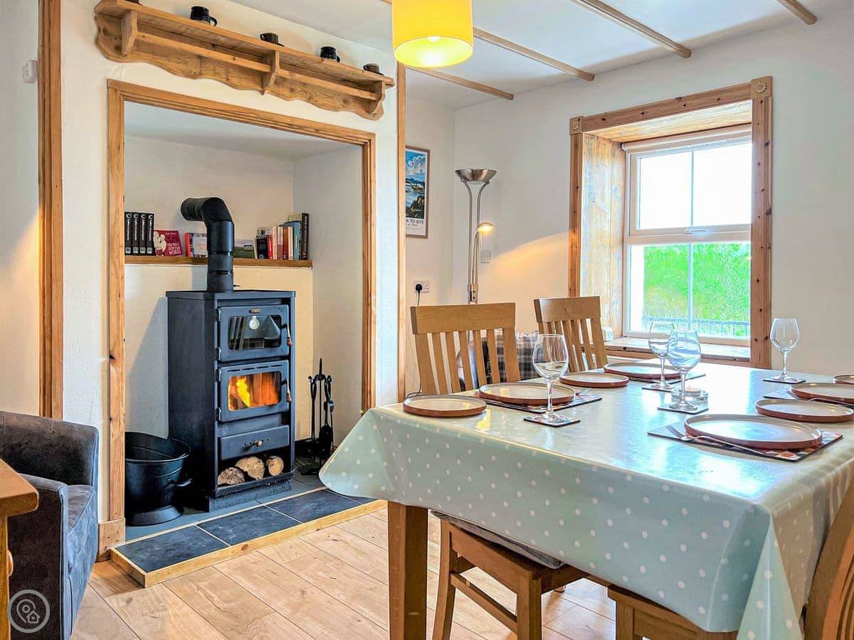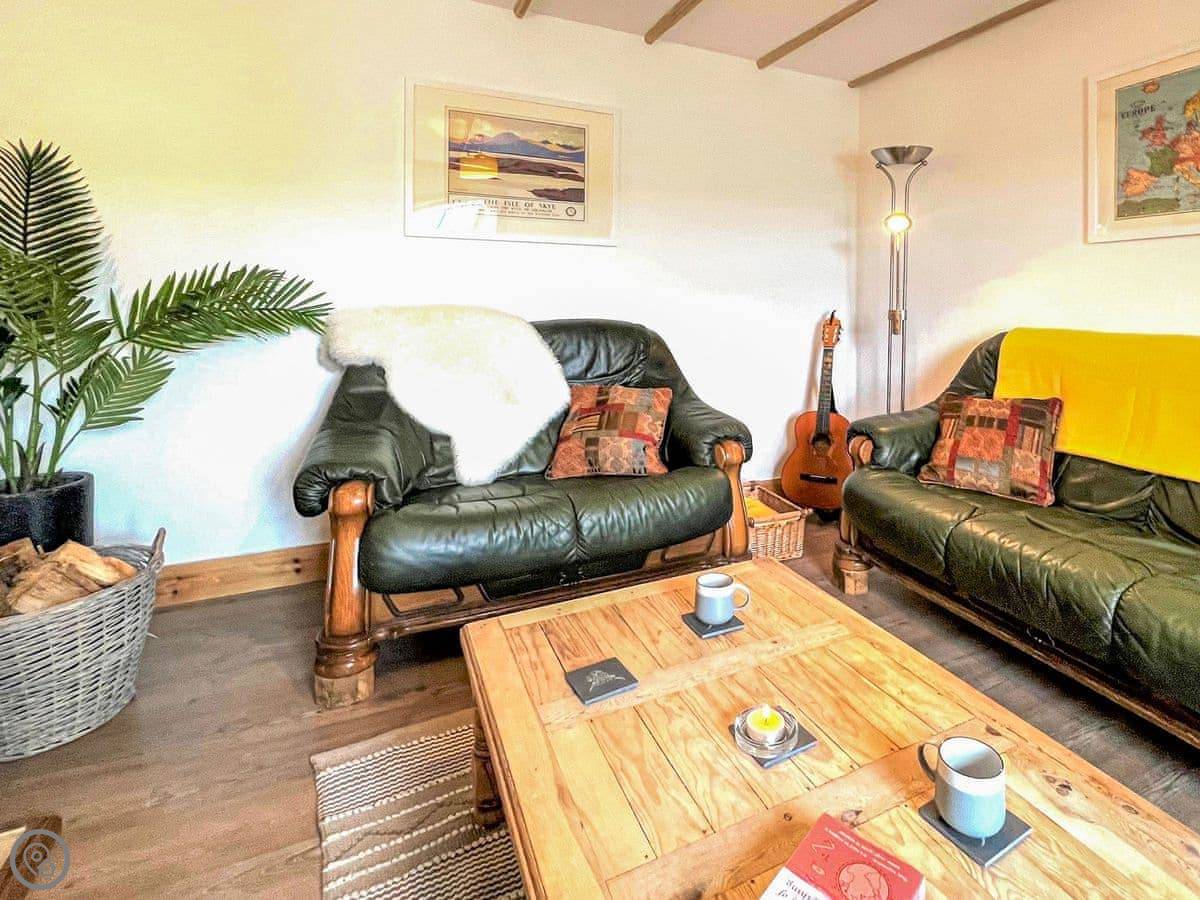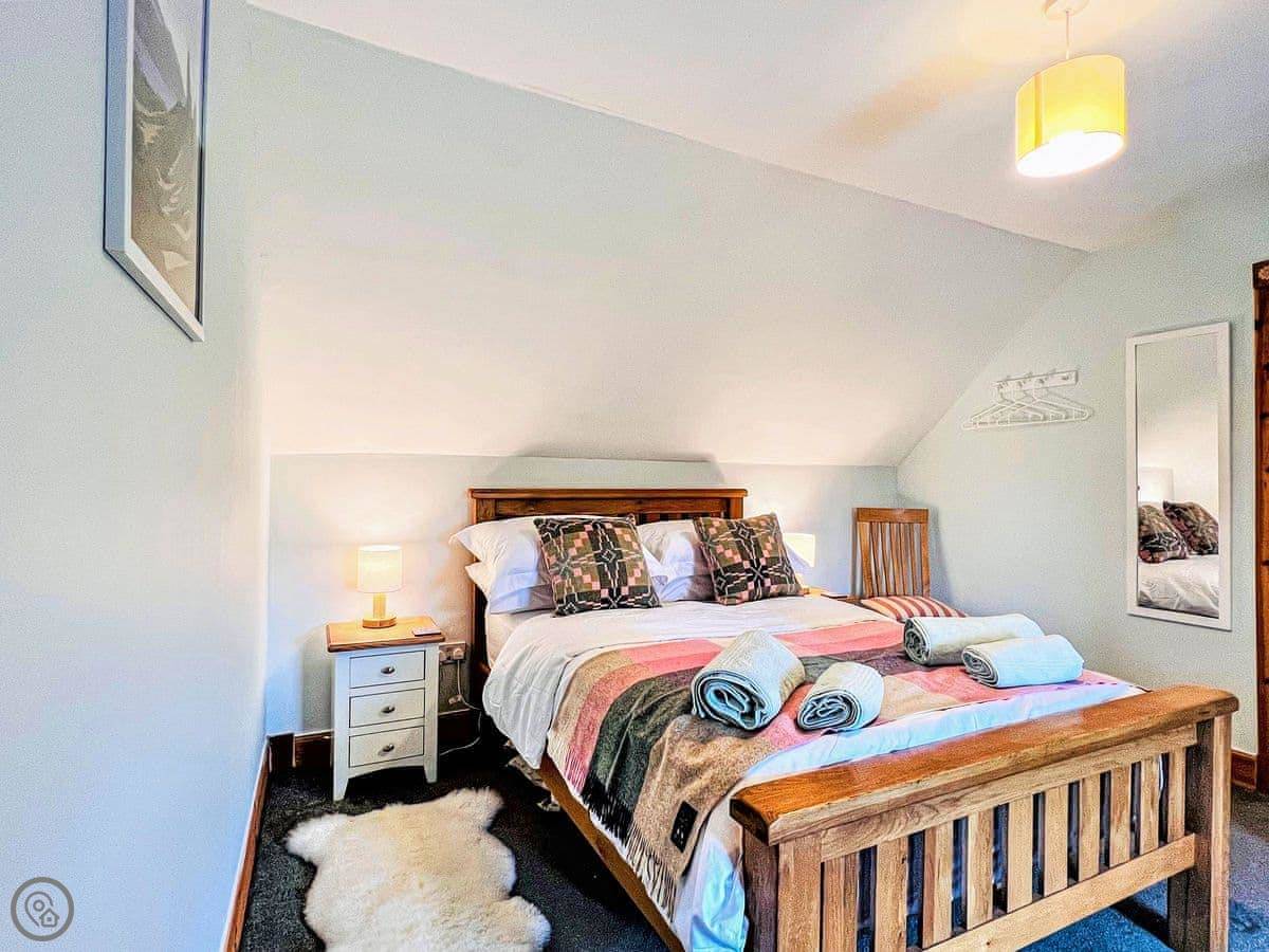 As you enter Ceithir, you’ll find a convenient porch to hang coats and store your boots, bags and rucksacks. Moving into the bright and airy spacious living/dining room, there is a dining table with chairs and a modern wood burner with a couple of tub chairs and reading lights – the perfect place to relax when it’s wet outside or after a day on the hills. To the left, the welcoming sitting room has an open fire, two leather sofas and 40” Smart TV with Netflix subscription included. The Wi-Fi router is located below the TV – the high-speed connection allows Wi-Fi calling, video calls and streaming. The hand-built wooden kitchen lies to the rear of the property and comes fully equipped, including Nespresso machine and baking equipment. There is a separate utility room with washing machine, tumble-dryer, dishwasher, drying rack, iron and ironing board. Upstairs are the two bedrooms, one double and one twin, both with Egyptian cotton bed linen, chest of drawers, hanging space and hairdryer. Also upstairs are the shower room and separate toilet.