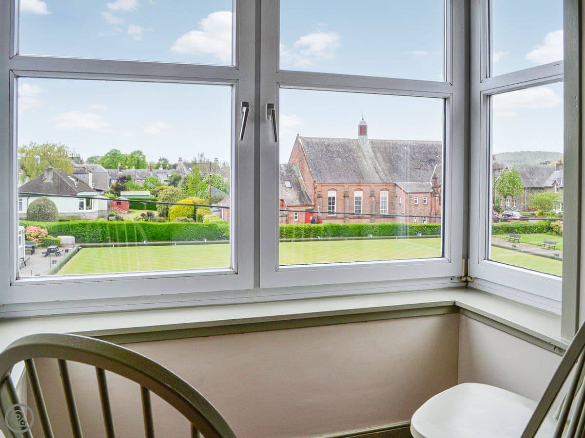 Church Place is a lovely holiday apartment set quietly in the delightful harbour town of Kirkcudbright. The Apartment is beautifully decorated and offers a quiet and relaxing space with a lovely outlook over the town’s bowling green . With a modern kitchen, delightful living room with views over the bowling green, two lovely bedrooms, the master being particularly bright and spacious, Church Place really does offer a lovely base from which to explore the area. Kirkcudbright is a lovely town on the estuary which still has a busy and bustling harbour. Stroll through the town and visit the famous Broughton House, once home to E. A. Hornel. Kirkcudbright is known as the ’artists’ town’ having hosted generations of painters, craft makers and artisans – a culture still thriving today. Visitors are attracted throughout the year, drawn by the harbour, the historic high street and the diverse range of annual events and visitor attractions. The popular programme of summer festivities culminates with the spectacular Tattoo, an event not to be missed.