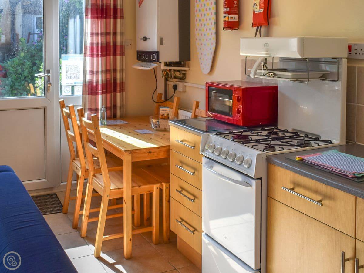 The living space is open plan. You've got a TV, a fridge, microwave, and the usual kitchen things. Bedding and towels are included. There's no travel cot, but there is a single bed in the ground floor double room that's good for a toddler or a small child.