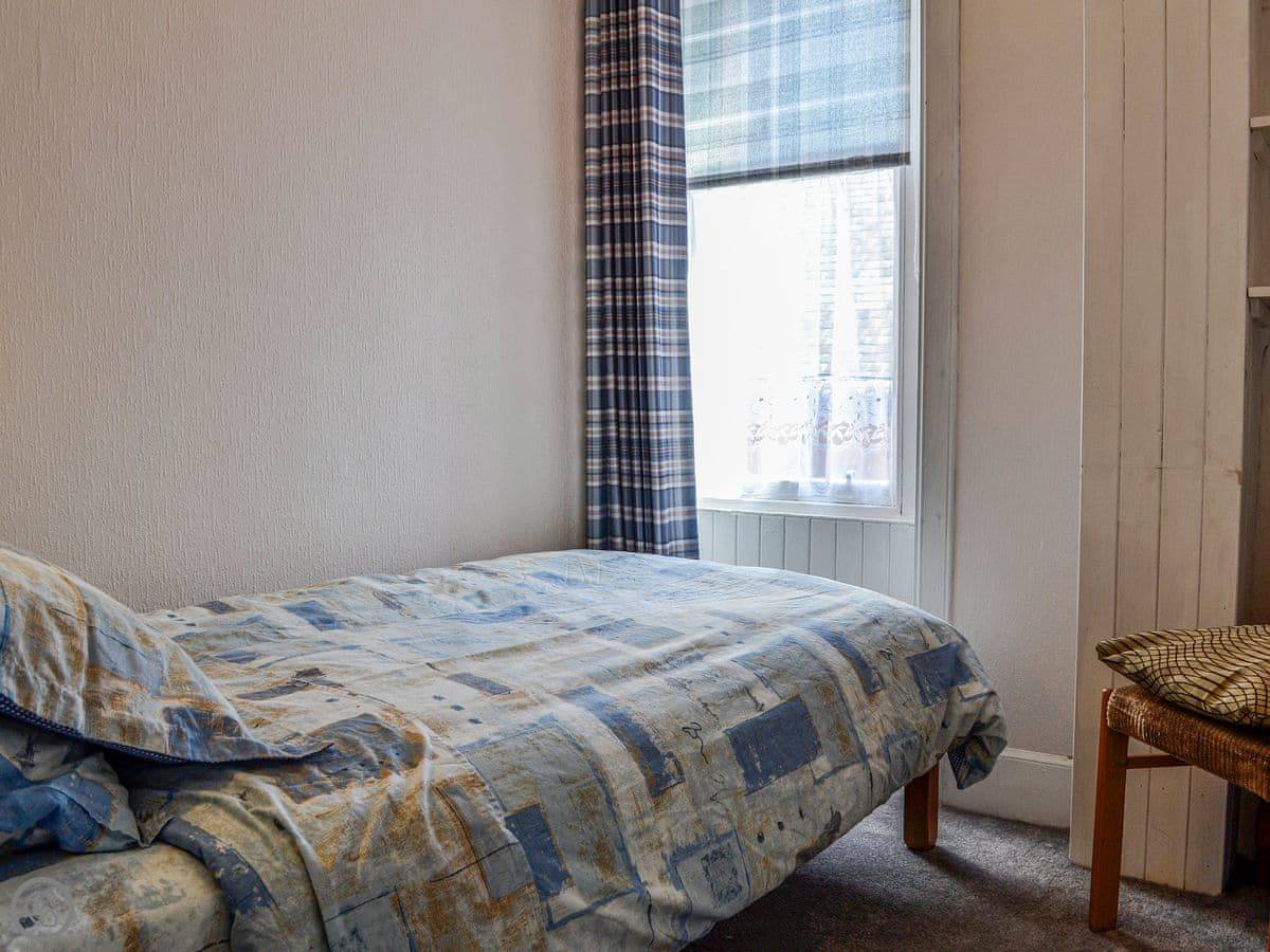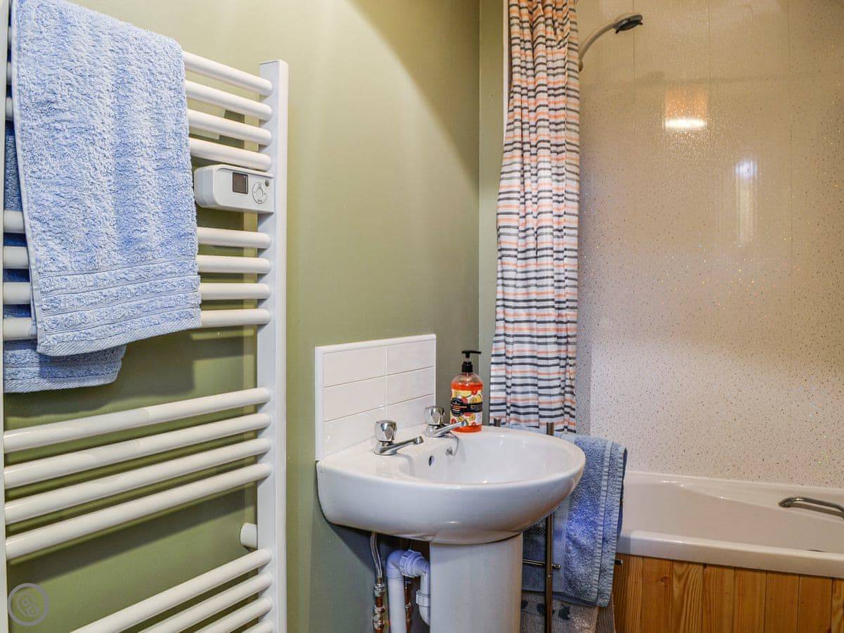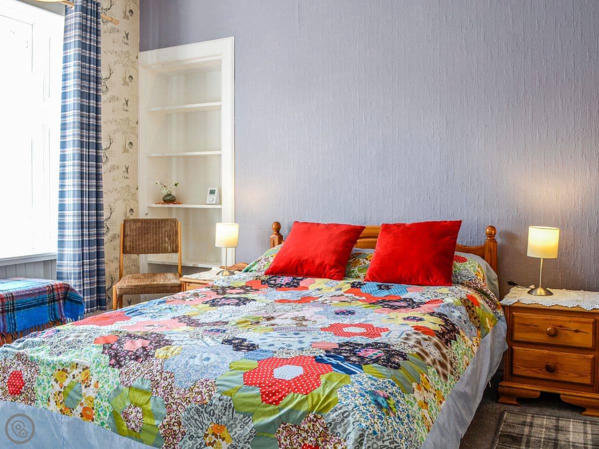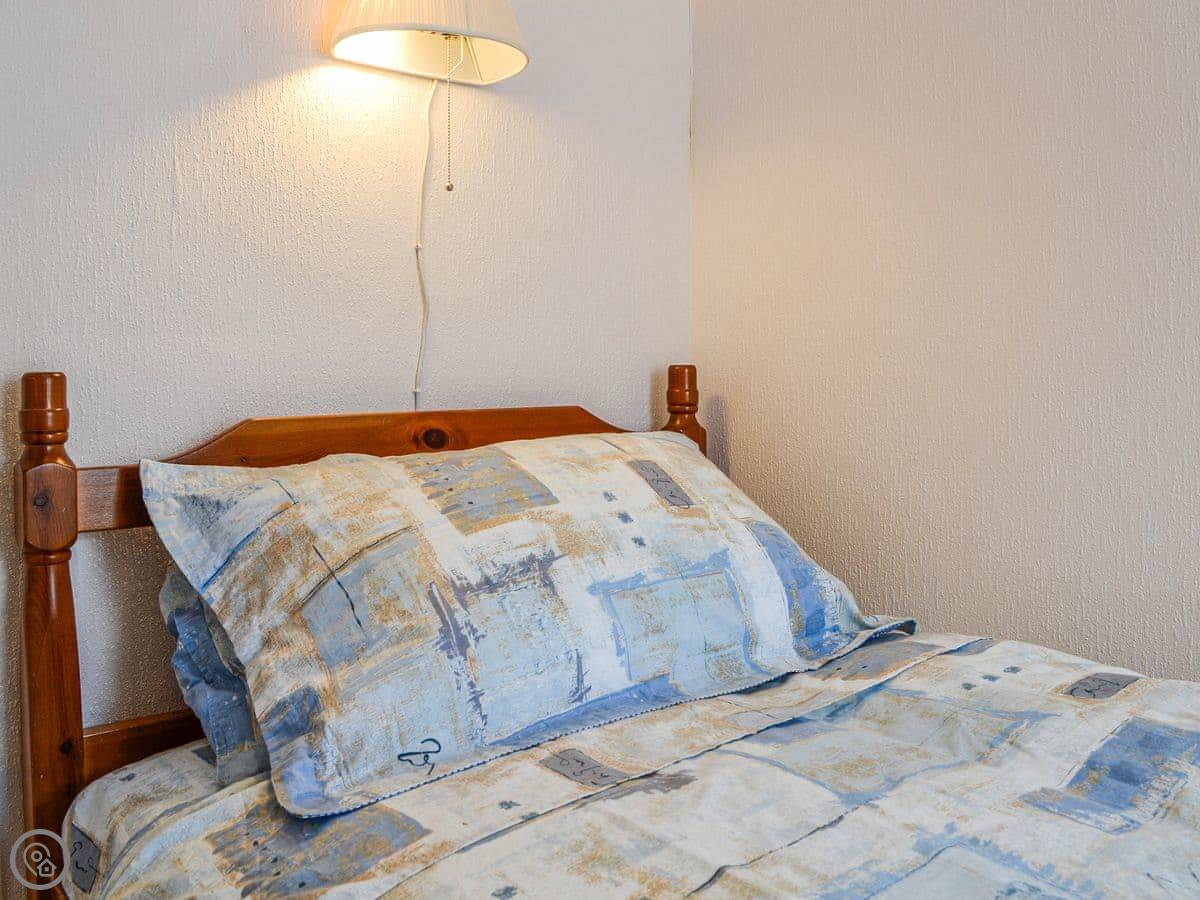 It sleeps three. Two bedrooms: one good-sized double and one small single. There's one bathroom. It's under the stairs, so it's a bit on the compact side. It's clean and it works fine. The place has a 3 Star rating. It's comfortable and looked after, not luxurious.