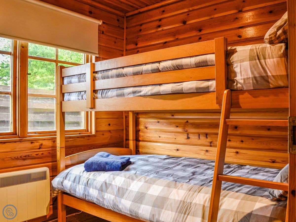 Warm and comfortable within, there is an open plan living room/kitchen with doors to a sunny sheltered decking area which overlooks the panoramic views. Two kingsize bedrooms and a bunk room make this an ideal choice for a relaxing family holiday. Although on a working farm, the location is generally very peaceful, surrounded fields adjacent to a camping pitch so there may be the occasional caravan nearby or the odd tractor now and then.