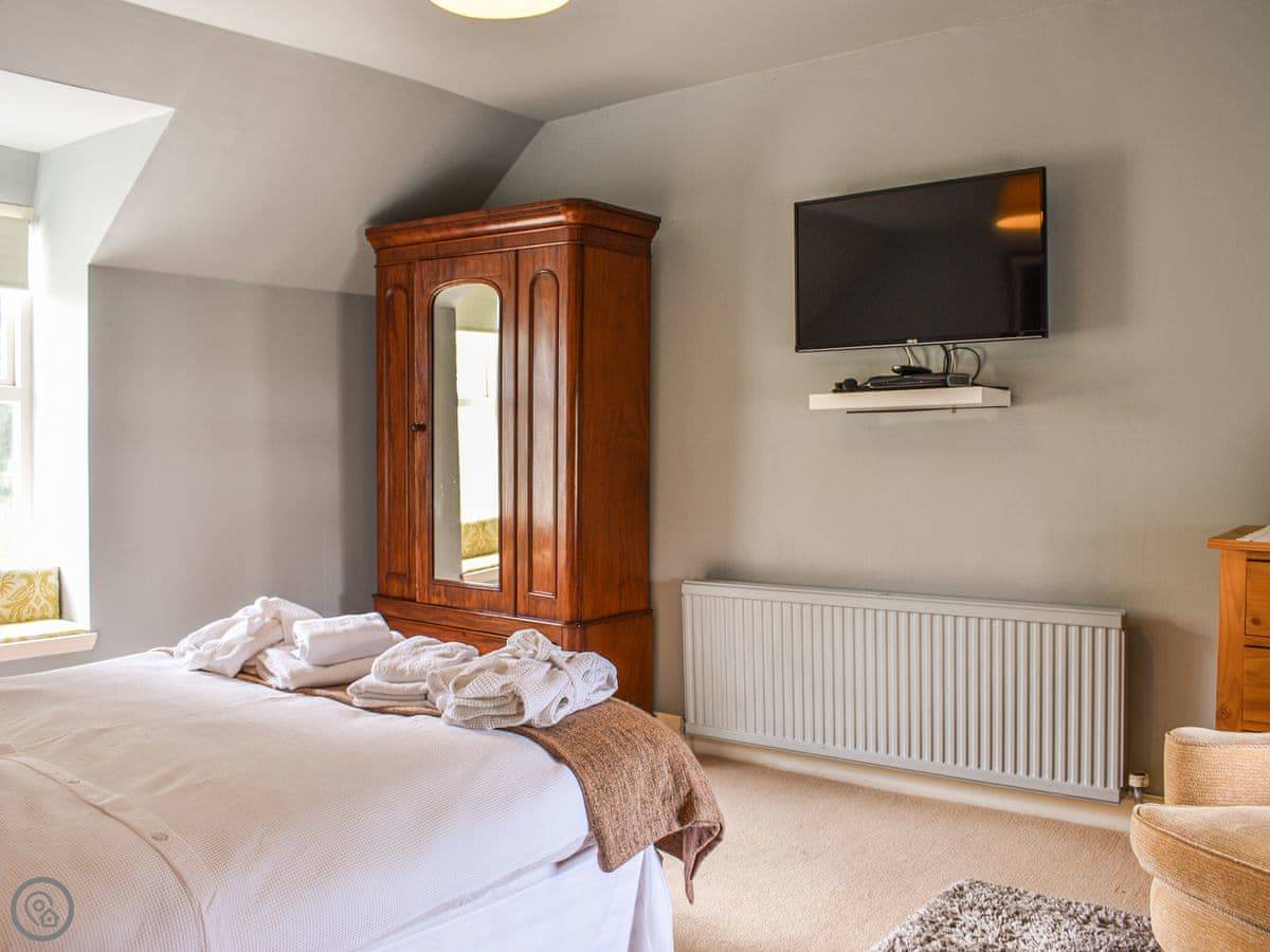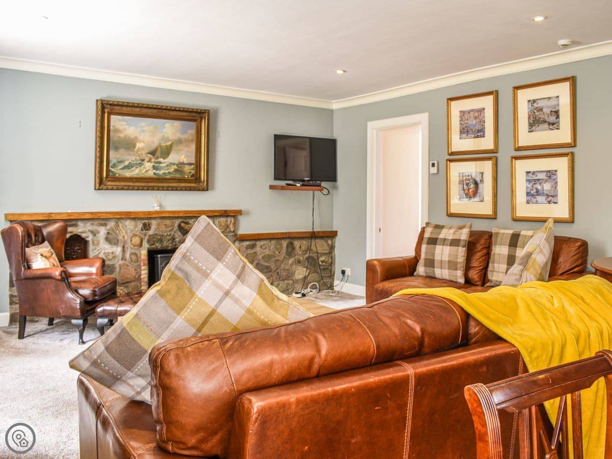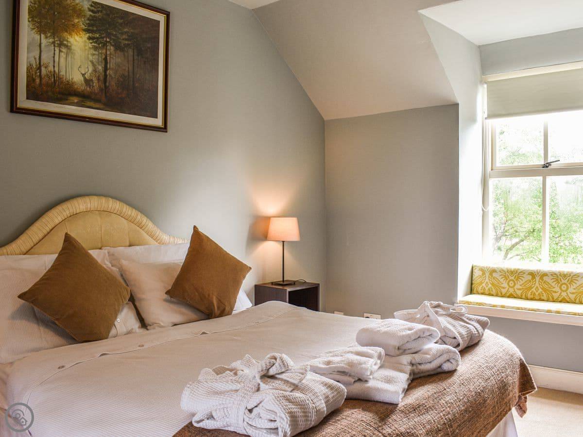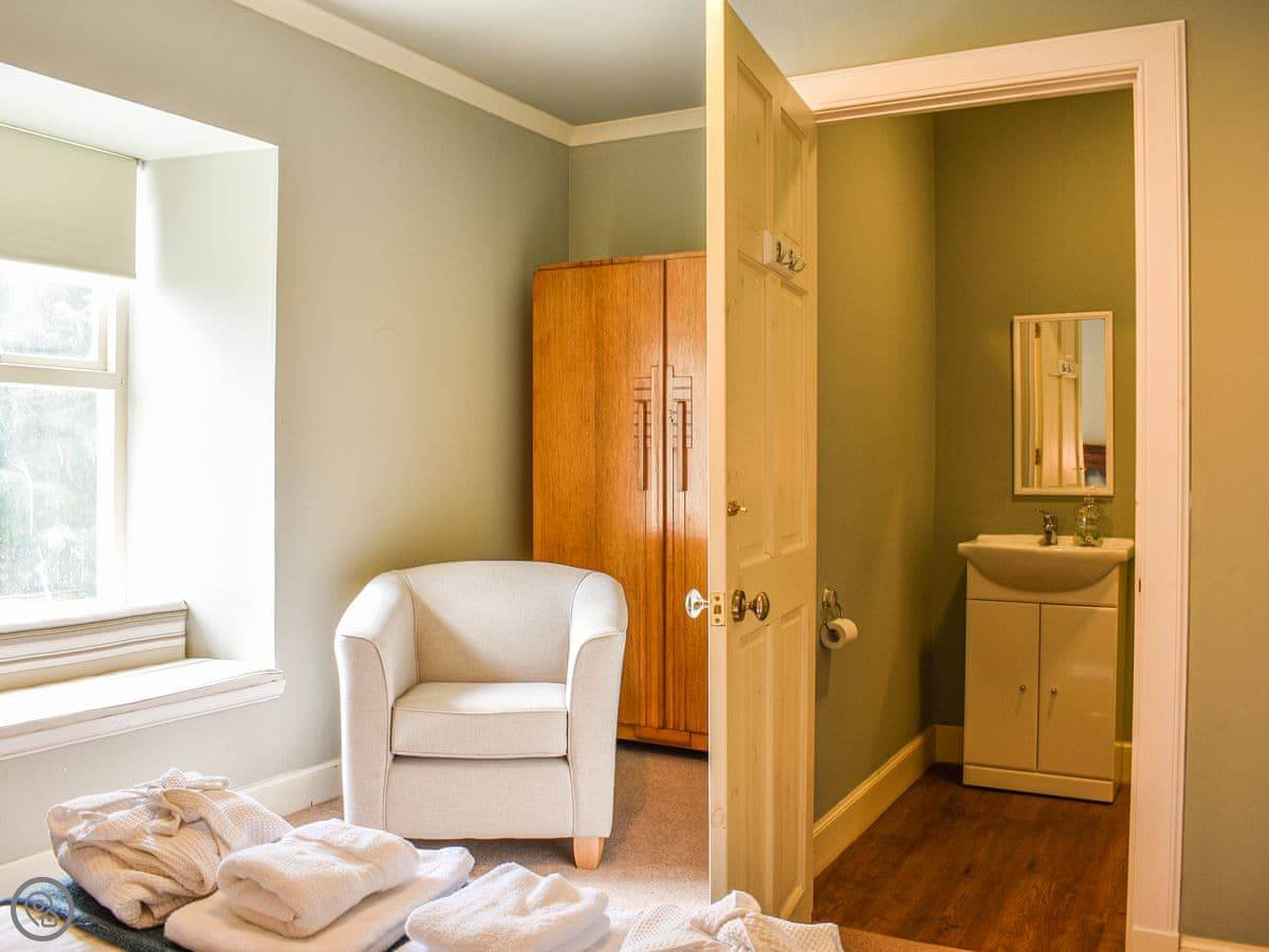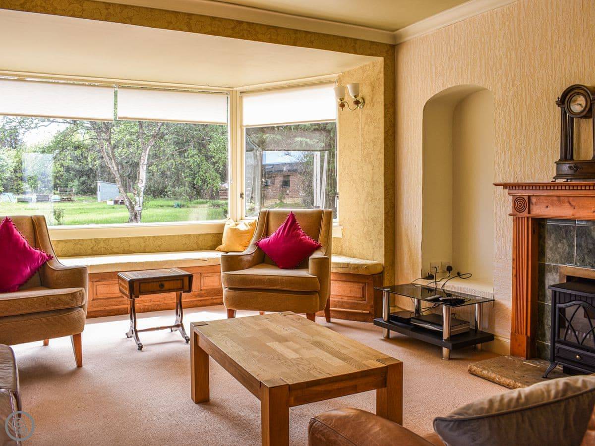 As you enter the property through the solid double doors you are presented with a sweeping staircase that leads you up to four bedrooms consisting of one kingsize with an en-suite, one double with an en-suite, one twin room, and another double room which are all well-appointed. On the ground floor there are two further double rooms, one off the lounge, and one at the other end which gives good wheelchair access to the building. For the bedrooms without en-suite there are bathroom facilities close by. The kitchen is well appointed with an electric hob and oven, dishwasher, and plenty of worktop prep area, leading off the kitchen lies the utility room with tumble dryer and washing machine. Adjoining the kitchen is the main lounge area with super comfortable sofas and a stove for those cold nights, along with a dining room table to sit all your family or friends round this is a room that lends itself to be the hub of the Old Farmhouse for entertaining. If you prefer just to snuggle down in front of the TV and watch a film, or read a good book, then head to the living room which is a little more intimate and looks out onto the spawling front lawn where you might even catch a glance of a Red Squirrel, or a Roe Deer which can often be spotted in the area.