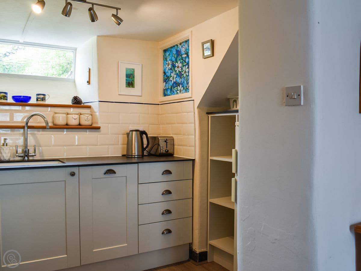 There's a pub about fifty yards down the road. They do food. The harbour in Boscastle is about a twenty minute walk downhill. It's a National Trust harbour. The coastal path runs right past it.