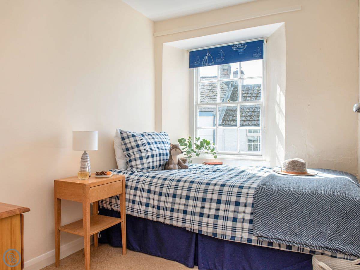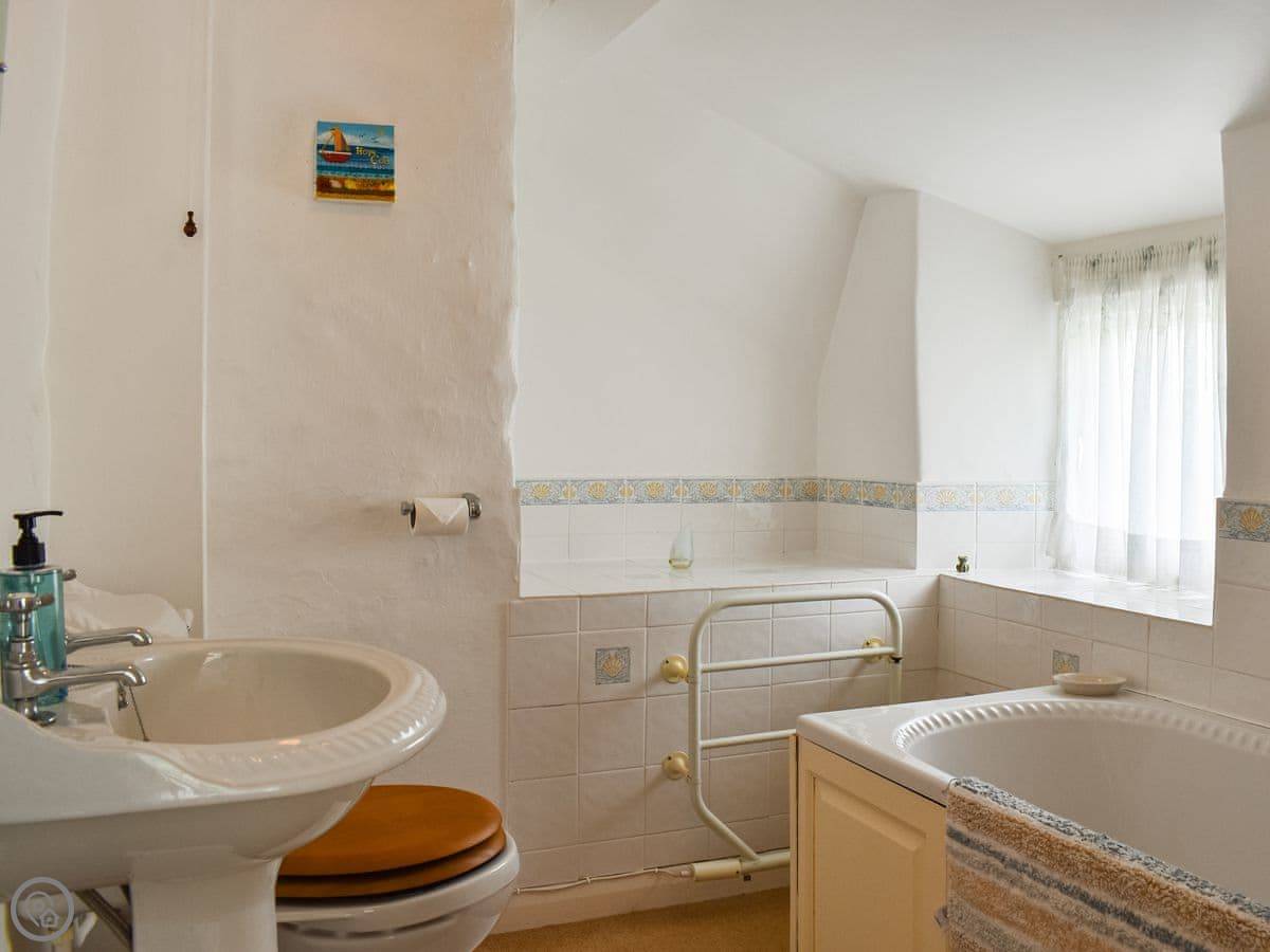 It sleeps five in three bedrooms. There's one bathroom. The rating is 4 Star. It's comfortable and well looked after. The stairs are what you'd expect for a cottage.