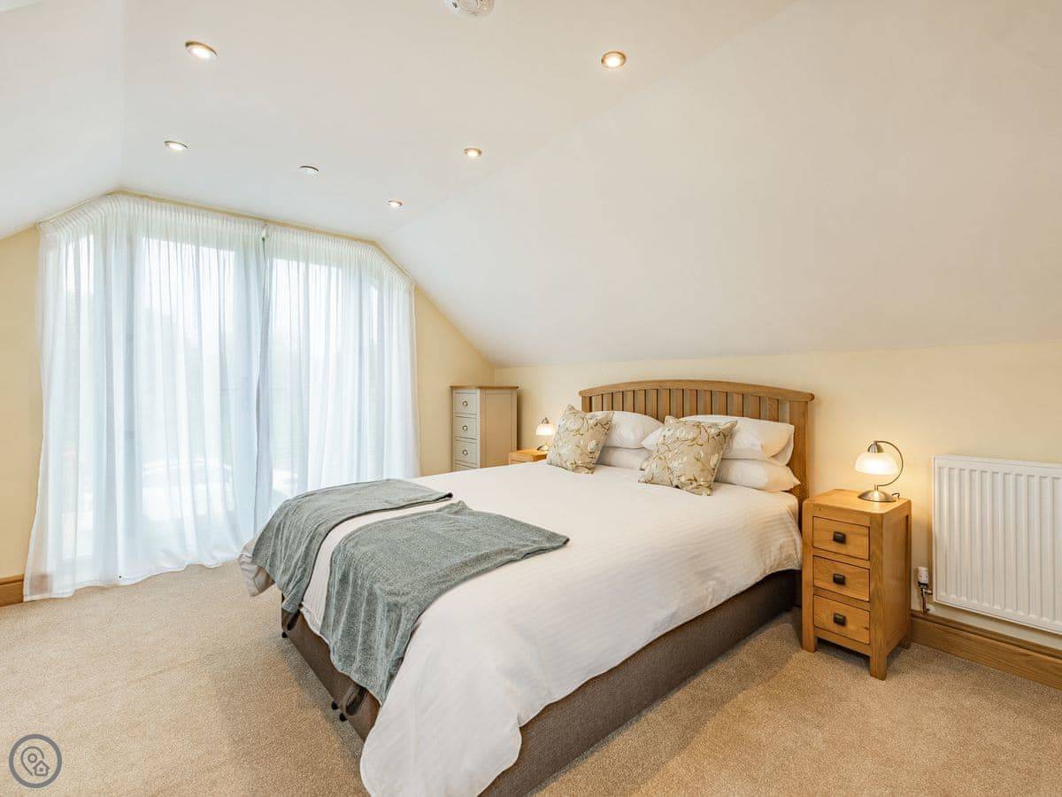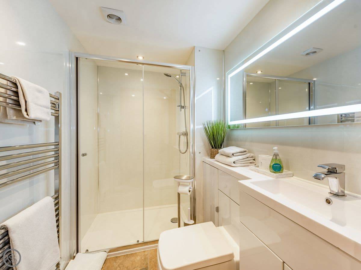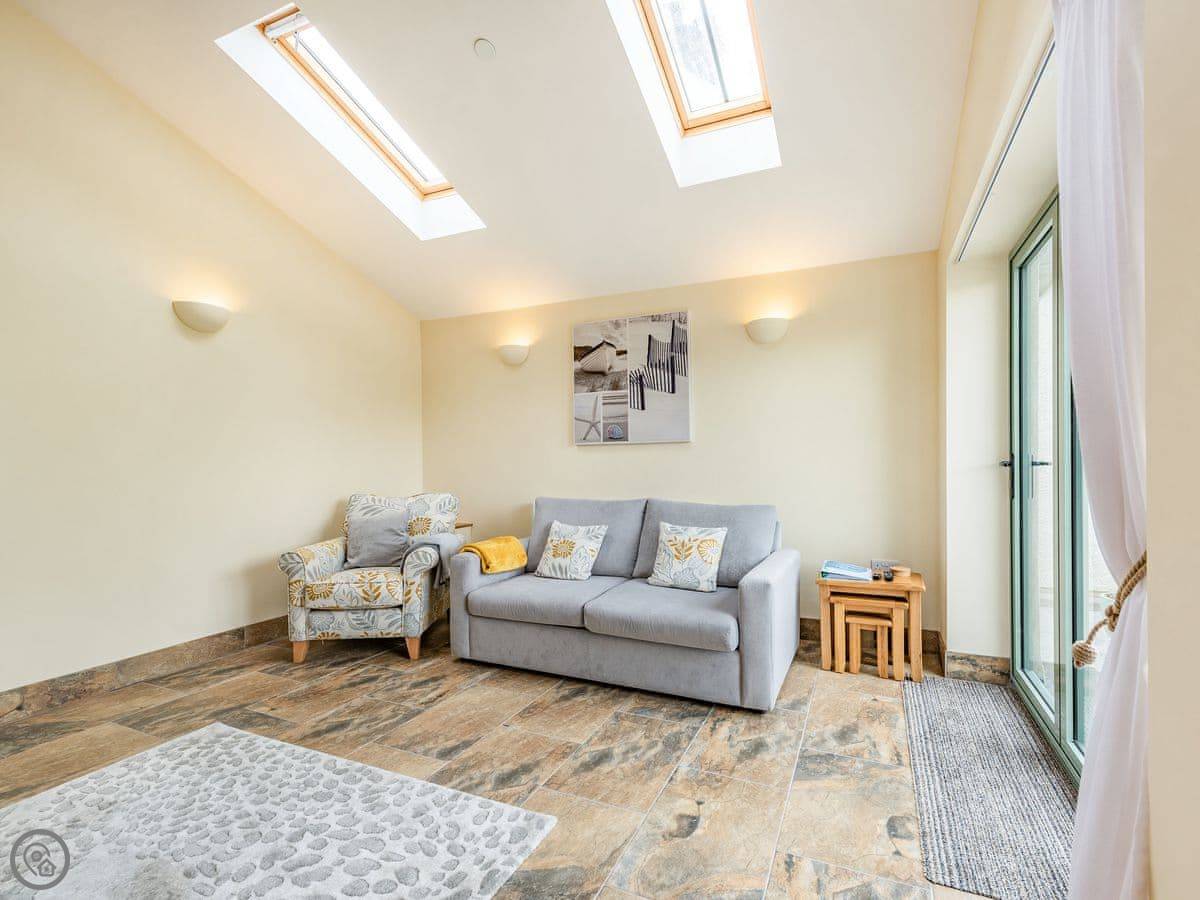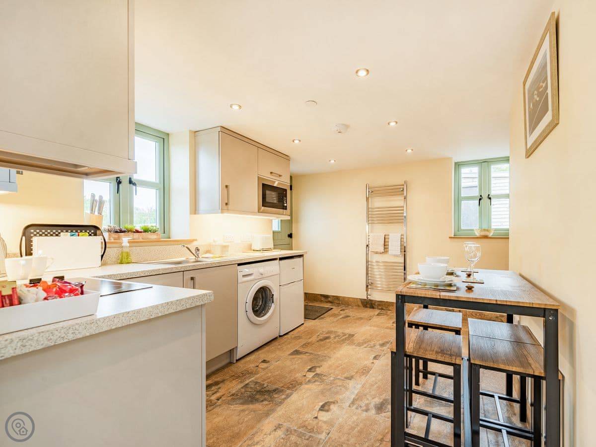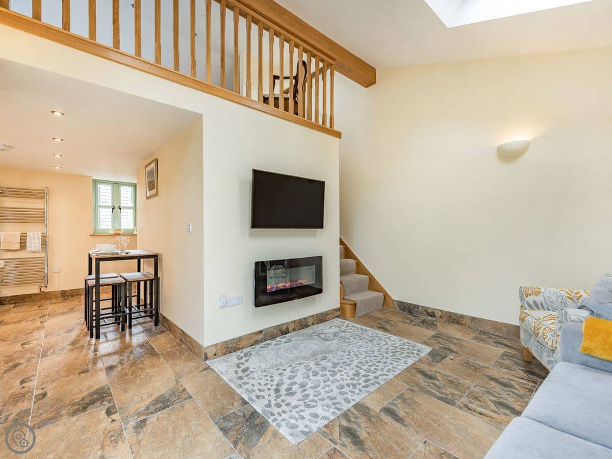 Inside, it's open plan. The kitchen has an electric oven and hob, a fridge freezer, microwave, and a washing machine. The living space has bifolding doors that open onto the patio. There's a Smart TV and WiFi. We have an electric vehicle charger on site you can use.