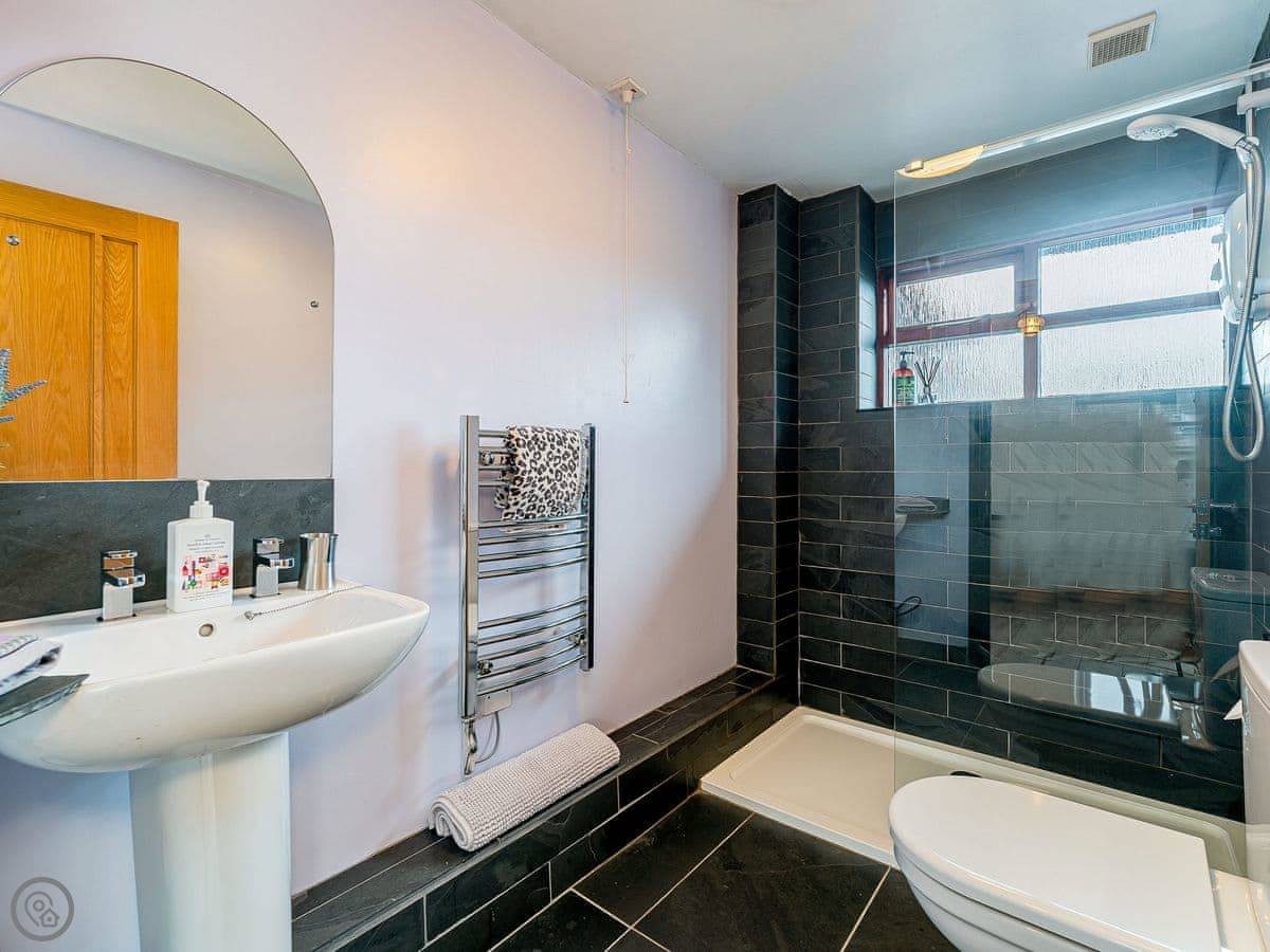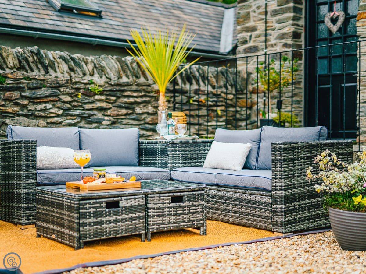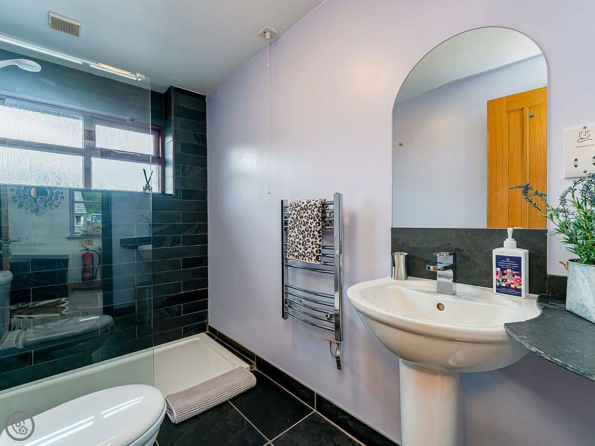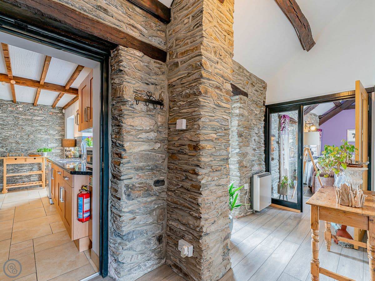 In the quaint hamlet of Furnace in Ceredigion, this stunning 18th-century barn has been lovingly converted into a self-catering holiday cottage. With a home from home like feel, Wi-Fi throughout and stunning mountain views, Hen Efail is the perfect destination for those looking to take in the dramatic beauty and historic charm of rural Wales without compromising on luxury. The main living space is a spacious room with a high vaulted ceiling along with a gas wood burner, perfect for relaxing after a day of exploring. An airy kitchen and dining area, with ample seating space for hungry hikers, including everything you need to create a range of fantastic meals during your stay. You will also find the utility room next door with a deep sink and washer/dryer, ensuring that whatever the weather you’re ready to strike out each day. With all the rooms on the ground floor, the cottage is perfect for all the family. There is a kingsize double bedroom, a twin bedroom and two excellent walk-in shower rooms. The patio with its outdoor dining table and sitting area can be accessed directly from the south-facing living room.