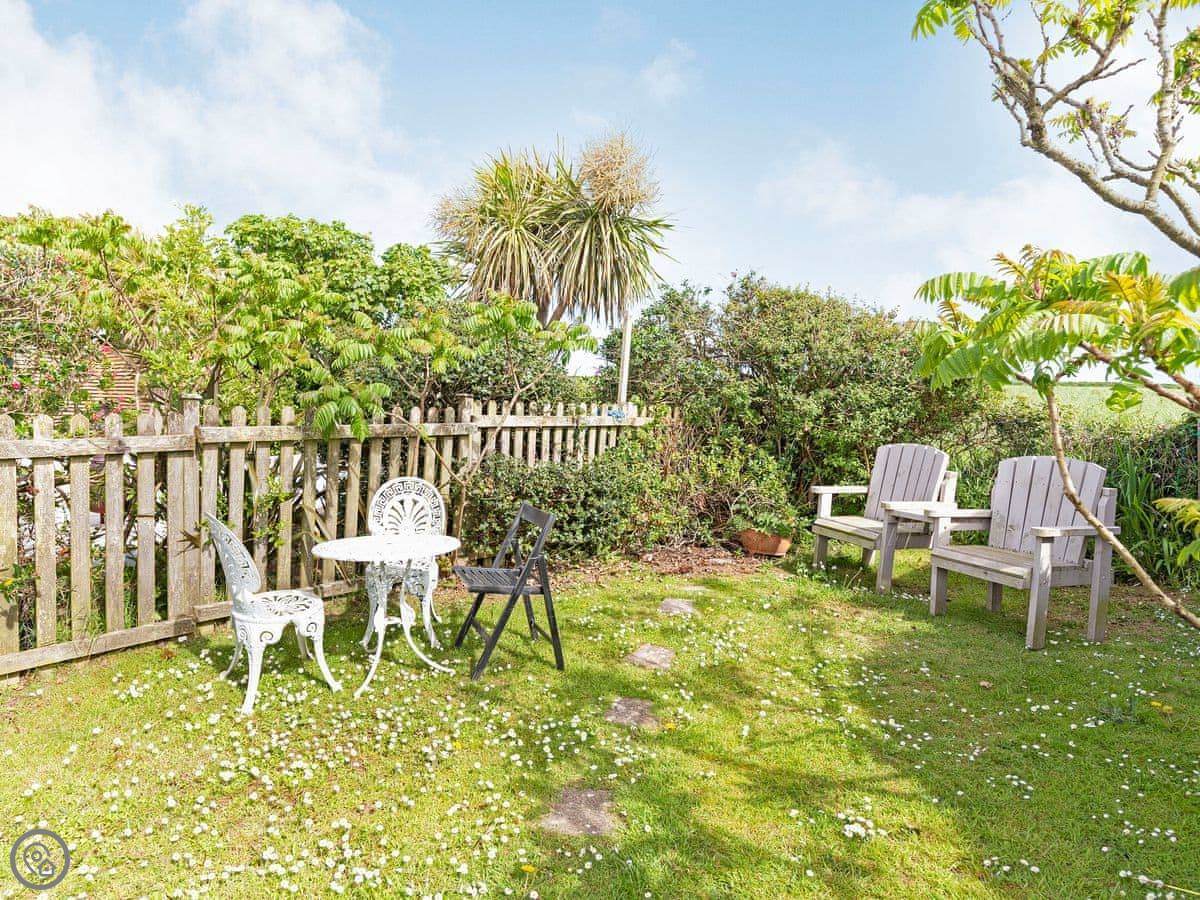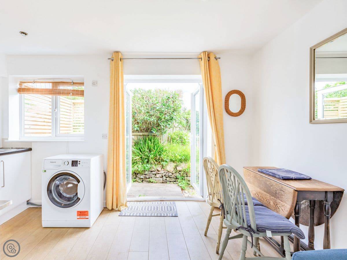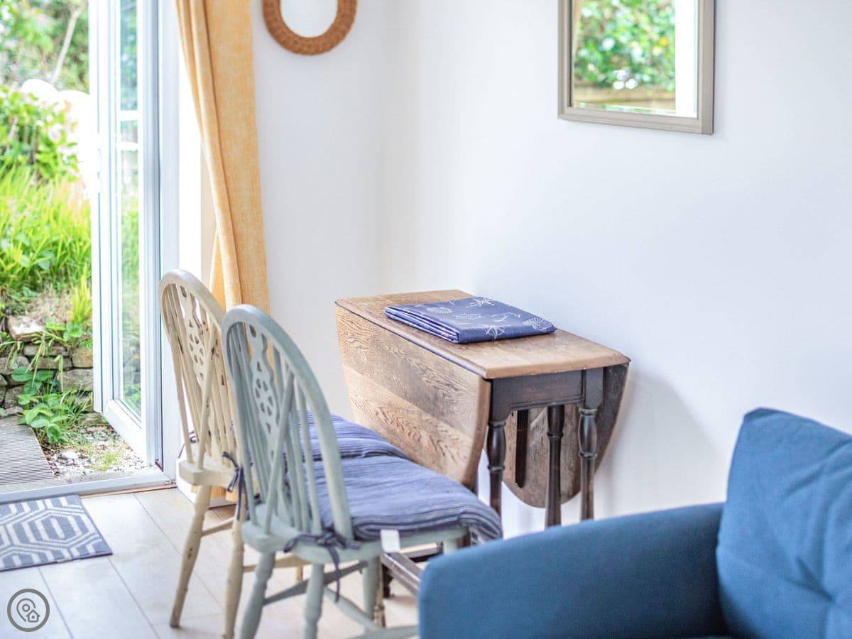 This place is called Cosy Hideaway. It's our annexe in Porthtowan. It's detached and you get your own garden and parking for one car.