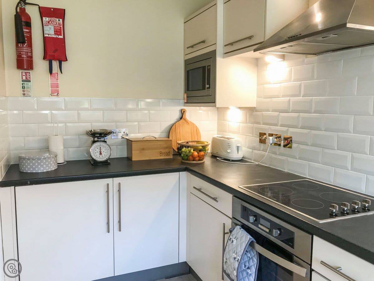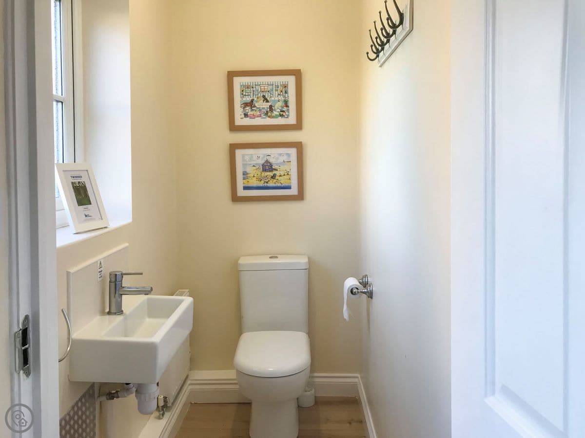 Enter the property and discover a large sitting/dining room, offering two large sofas where you can sit back and relax after a day on the beach and enjoy your favourite holiday movie on the large Smart TV. For your enjoyment there is also a DVD player and an iPod. The dining area offers plenty of seating for six and sits in front of French doors that lead out onto a patio with additional seating. The galley style kitchen offers an electric oven and hob as well as an array of other appliances including a dishwasher and washer-dryer. There is plenty of work top space to allow you to rustle up a delicious picnic to enjoy on the beach or to prepare a wonderful home cooked evening meal. A separate toilet completes the ground floor accommodation.
