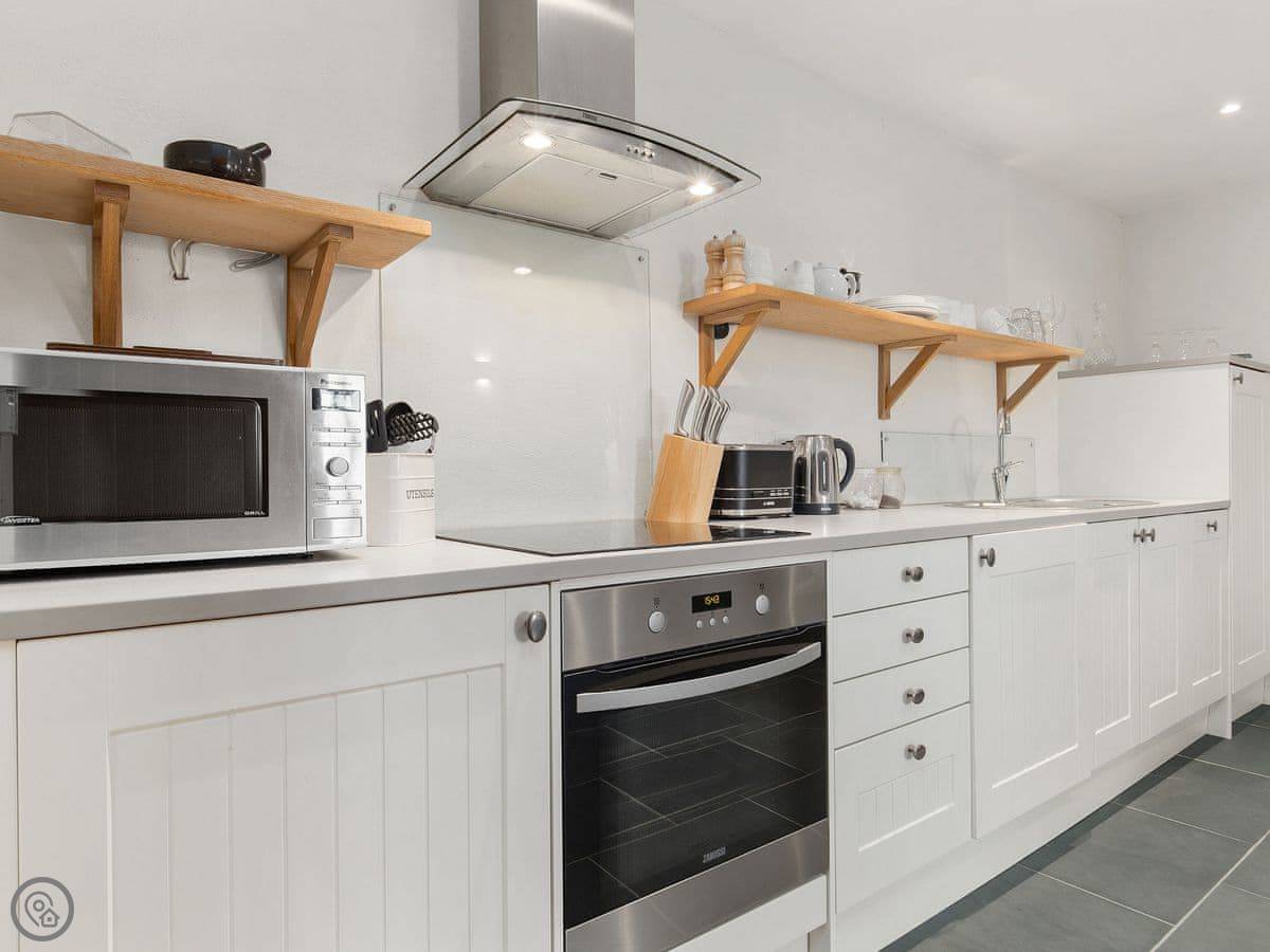 Facilities include a dishwasher, washing machine, EV charger, and bike storage. Bedding and towels are included. We can provide a cot and highchair. Two well-behaved dogs are welcome. The other two cottages here, The Byre and The Milking Parlour, can be booked together with this one for larger groups.