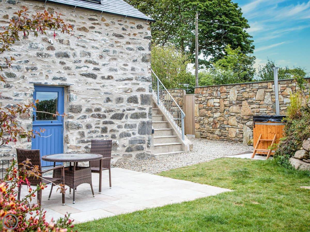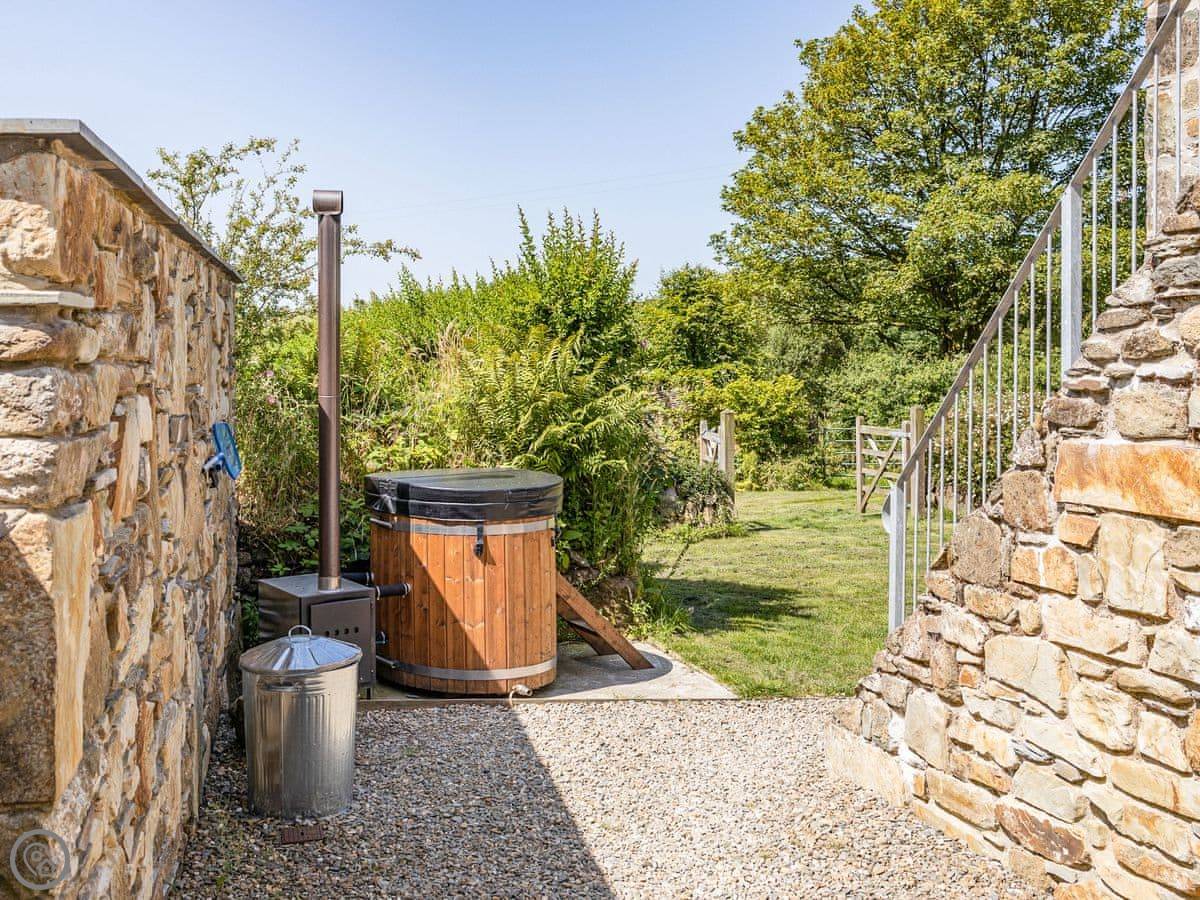 Outside, you get your own enclosed garden and patio. There's a wood-fired hot tub which is private to you. You can wander around the grounds. There's a small lake on the farm to walk around. The owners' belted Galloway cows are often in the nearby field.