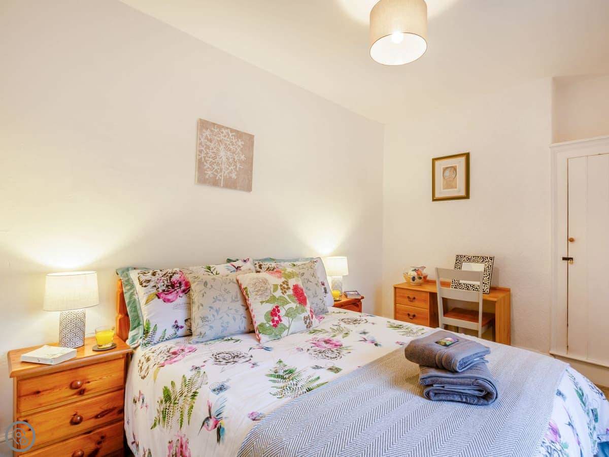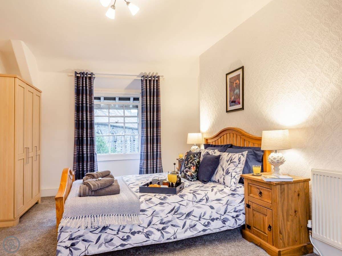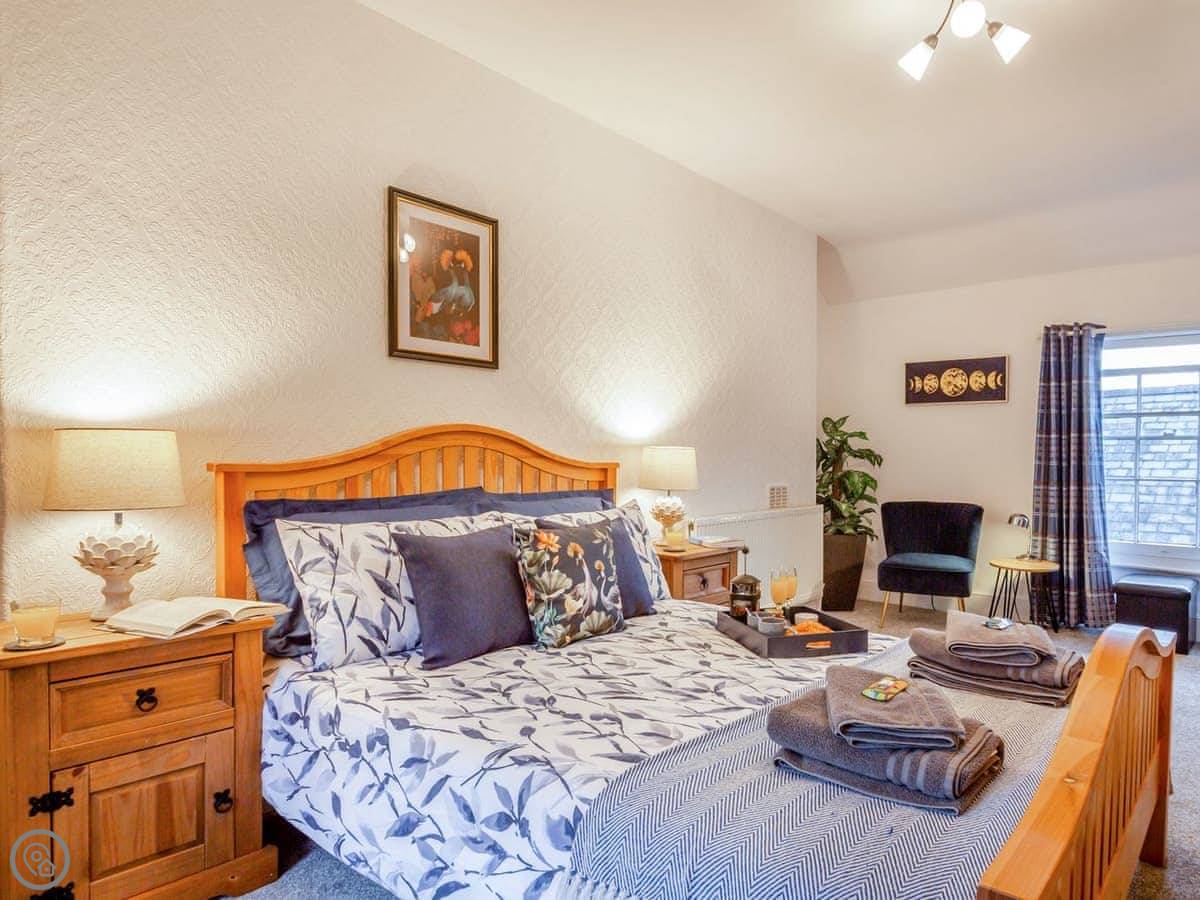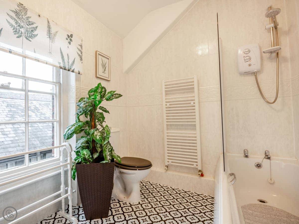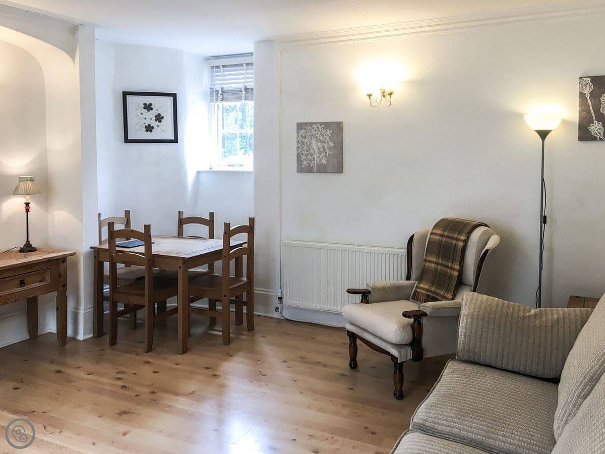 Ty Llew is an apartment set over two floors, offering three bedrooms for up to six guests. The interior has been decorated in relaxing tones showcasing various unique features of the Grade II listed building on the staircase and some of the doors. The kitchen space has a clean, modern feel to it with a range of appliances and utensils plus a breakfast area. The dining and living room offer an electric fire and comfy sofas where you can put your feet up and get stuck into a good book for a cosy evening in or enjoy each other’s company and talk about the day’s adventures. The three bedrooms are on the second floor all with double beds and offering views of Dolgellau. There is a full-size bathroom with a bathtub and shower, plus the master double has an en-suite. Conveniently, Ty Llew comes with one parking permit for the nearby public car park for your stay.