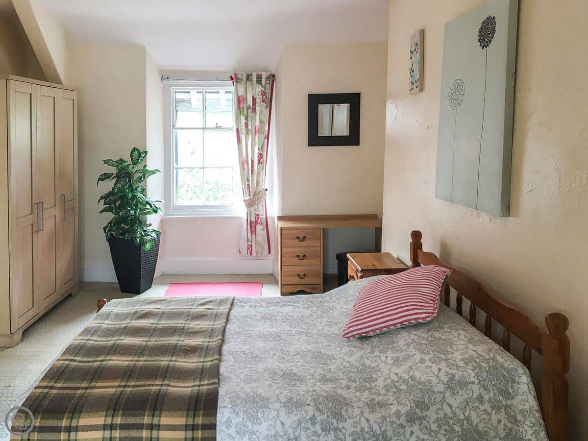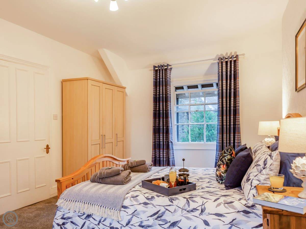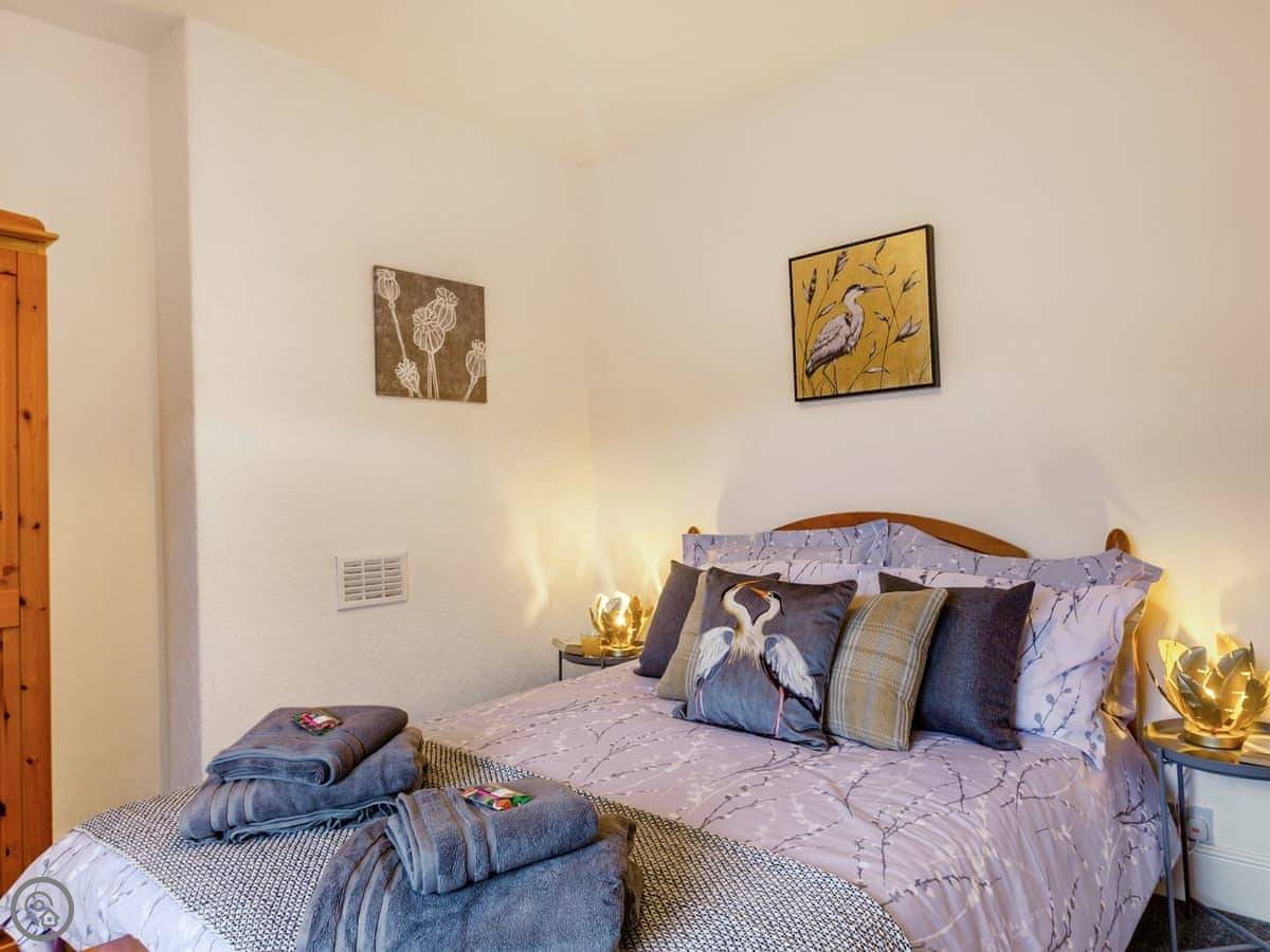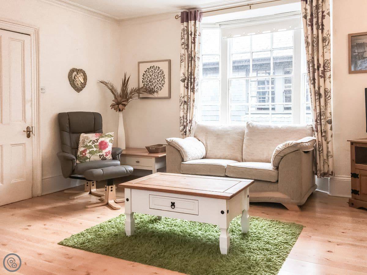 Ty Llew is an apartment set over two floors, offering three bedrooms for up to six guests. The interior has been decorated in relaxing tones showcasing various unique features of the Grade II listed building on the staircase and some of the doors. The kitchen space has a clean, modern feel to it with a range of appliances and utensils plus a breakfast area. The dining and living room offer an electric fire and comfy sofas where you can put your feet up and get stuck into a good book for a cosy evening in or enjoy each other’s company and talk about the day’s adventures. The three bedrooms are on the second floor all with double beds and offering views of Dolgellau. There is a full-size bathroom with a bathtub and shower, plus the master double has an en-suite. Conveniently, Ty Llew comes with one parking permit for the nearby public car park for your stay.