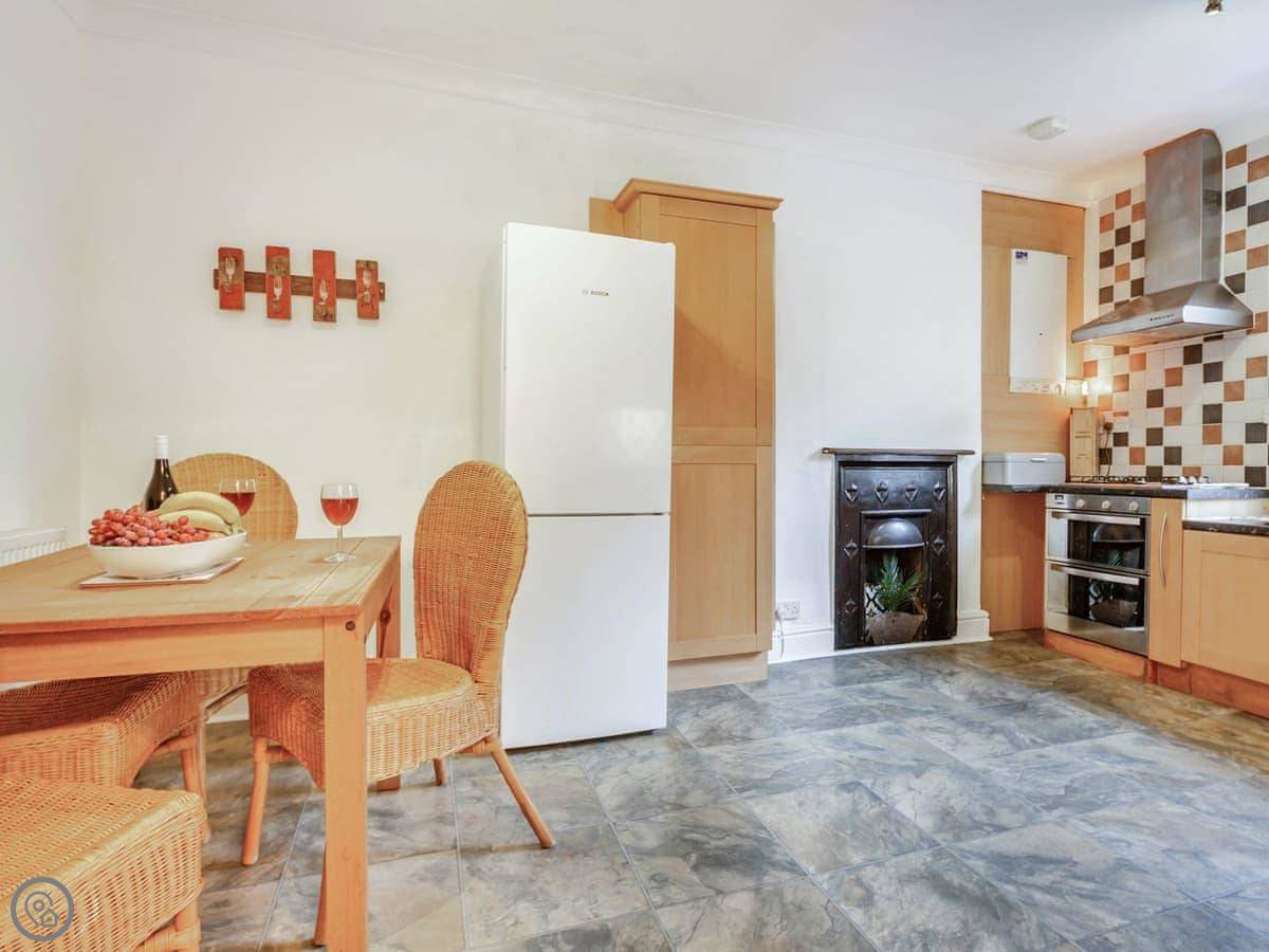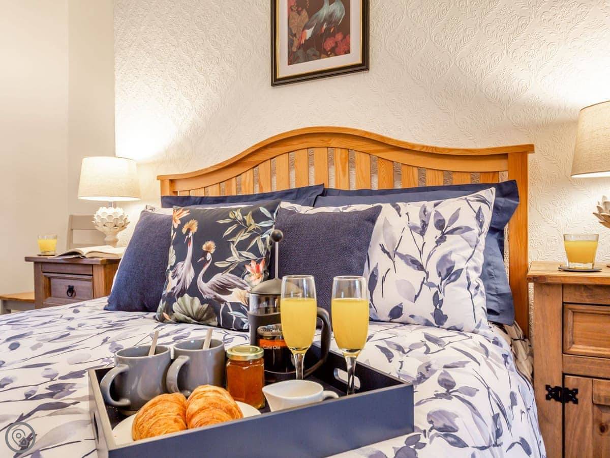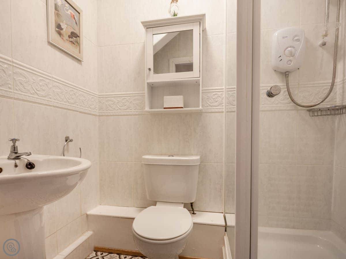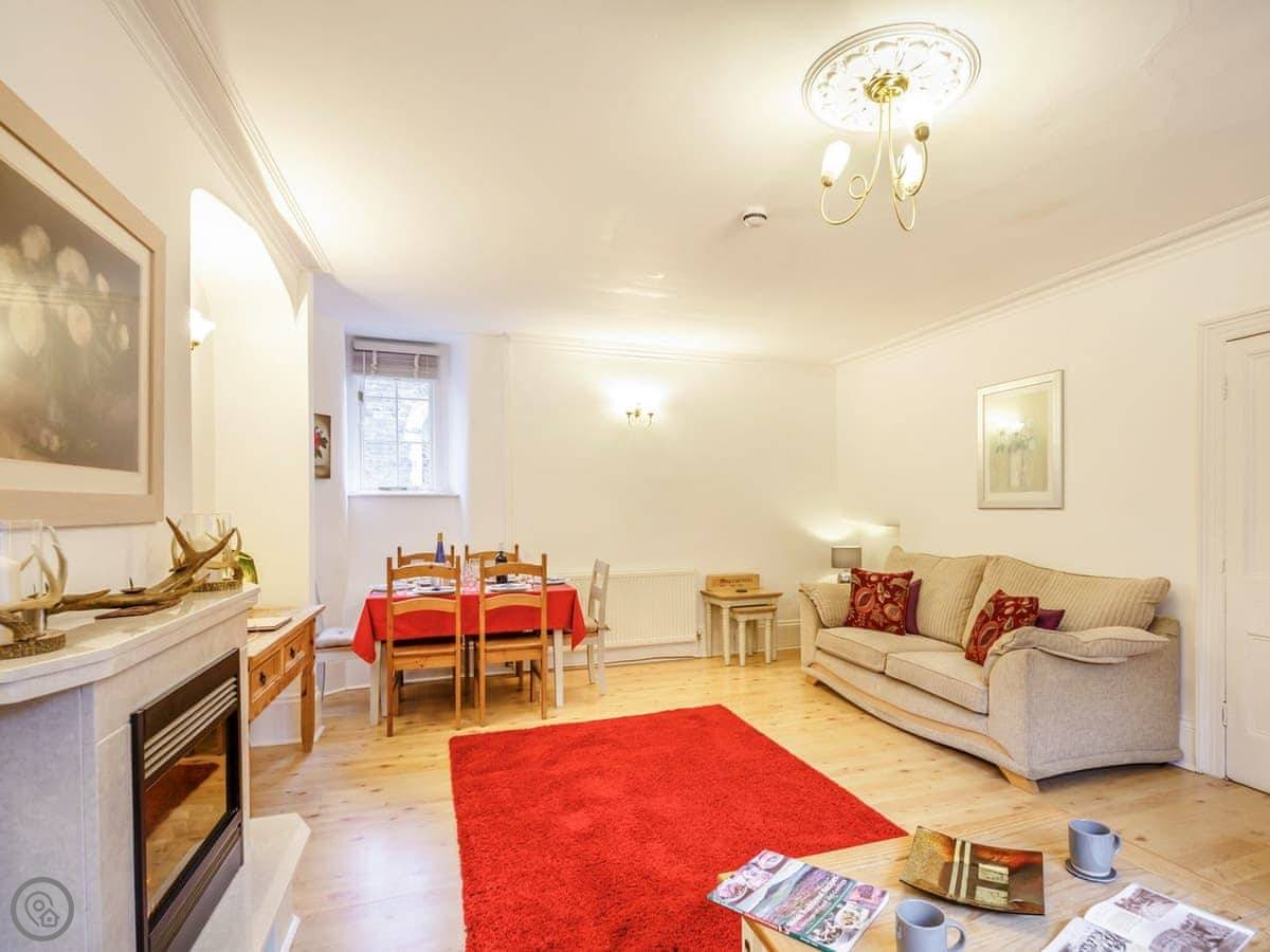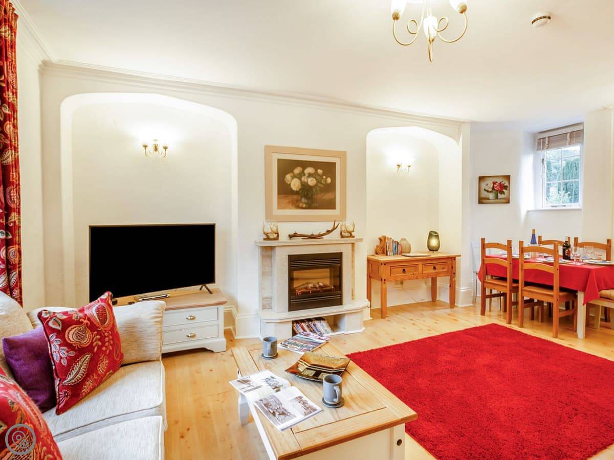 Ty Llew is an apartment set over two floors, offering three bedrooms for up to six guests. The interior has been decorated in relaxing tones showcasing various unique features of the Grade II listed building on the staircase and some of the doors. The kitchen space has a clean, modern feel to it with a range of appliances and utensils plus a breakfast area. The dining and living room offer an electric fire and comfy sofas where you can put your feet up and get stuck into a good book for a cosy evening in or enjoy each other’s company and talk about the day’s adventures. The three bedrooms are on the second floor all with double beds and offering views of Dolgellau. There is a full-size bathroom with a bathtub and shower, plus the master double has an en-suite. Conveniently, Ty Llew comes with one parking permit for the nearby public car park for your stay.