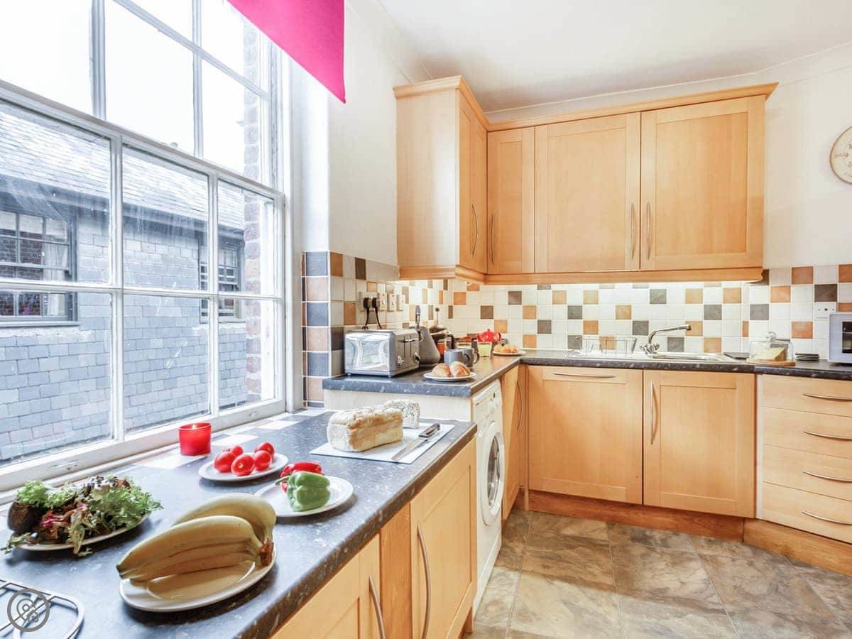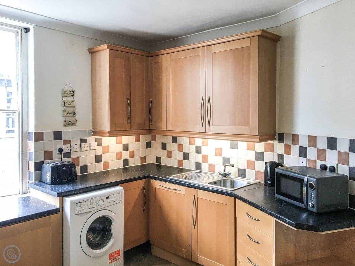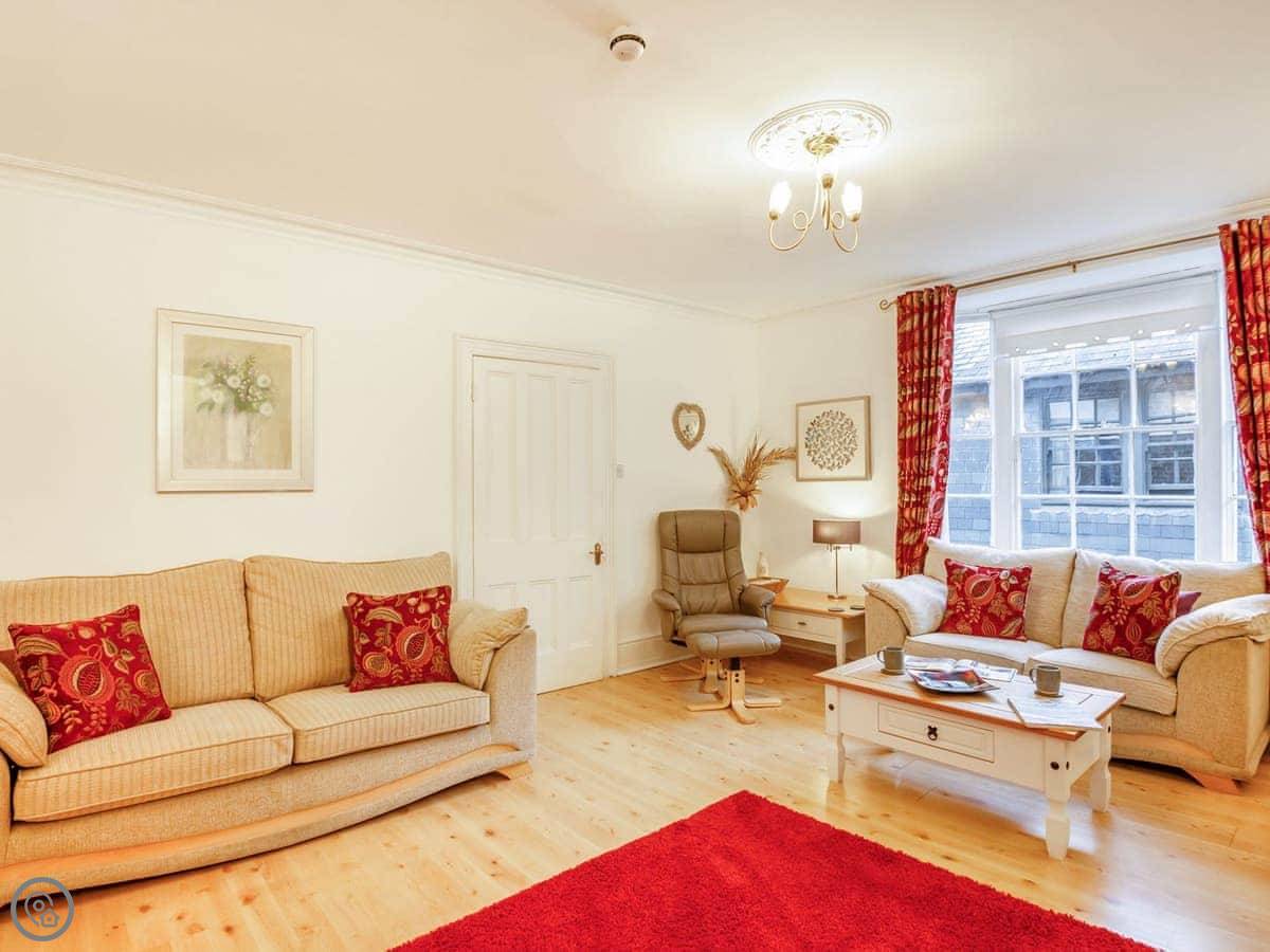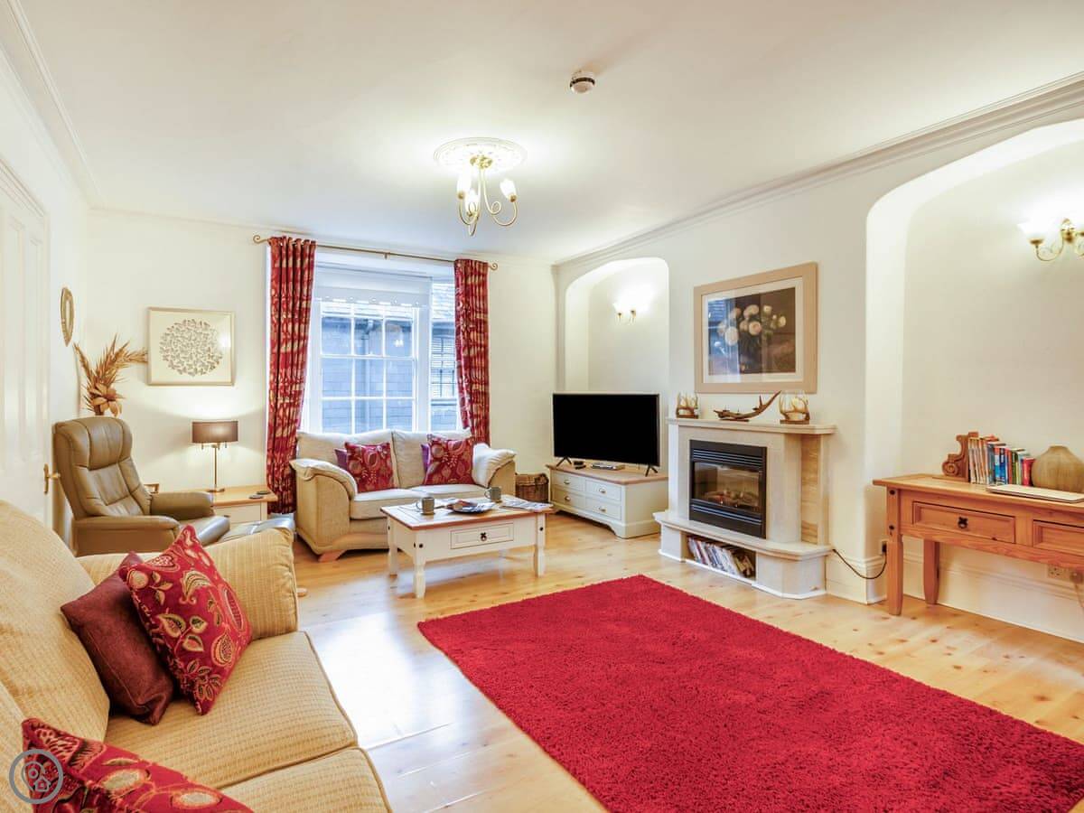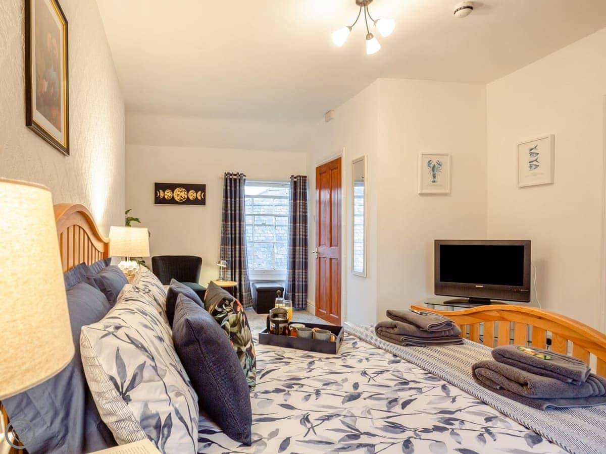 Ty Llew is an apartment set over two floors, offering three bedrooms for up to six guests. The interior has been decorated in relaxing tones showcasing various unique features of the Grade II listed building on the staircase and some of the doors. The kitchen space has a clean, modern feel to it with a range of appliances and utensils plus a breakfast area. The dining and living room offer an electric fire and comfy sofas where you can put your feet up and get stuck into a good book for a cosy evening in or enjoy each other’s company and talk about the day’s adventures. The three bedrooms are on the second floor all with double beds and offering views of Dolgellau. There is a full-size bathroom with a bathtub and shower, plus the master double has an en-suite. Conveniently, Ty Llew comes with one parking permit for the nearby public car park for your stay.