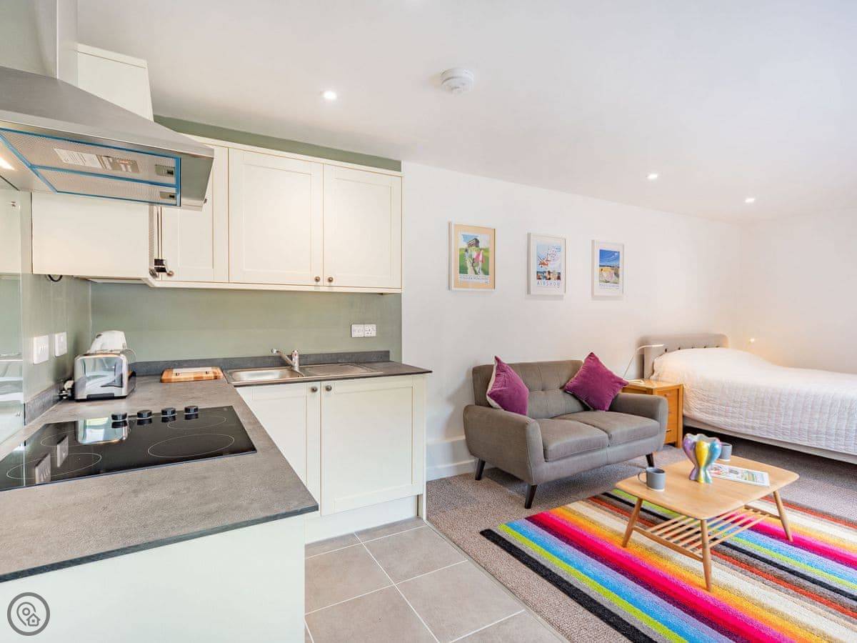 These studio apartments at Crookham really are a surprise. Far from what we know as little studios, these are comfy and cosy and exceptionally well suited to couples, friends and even for groups as additional units are on site.