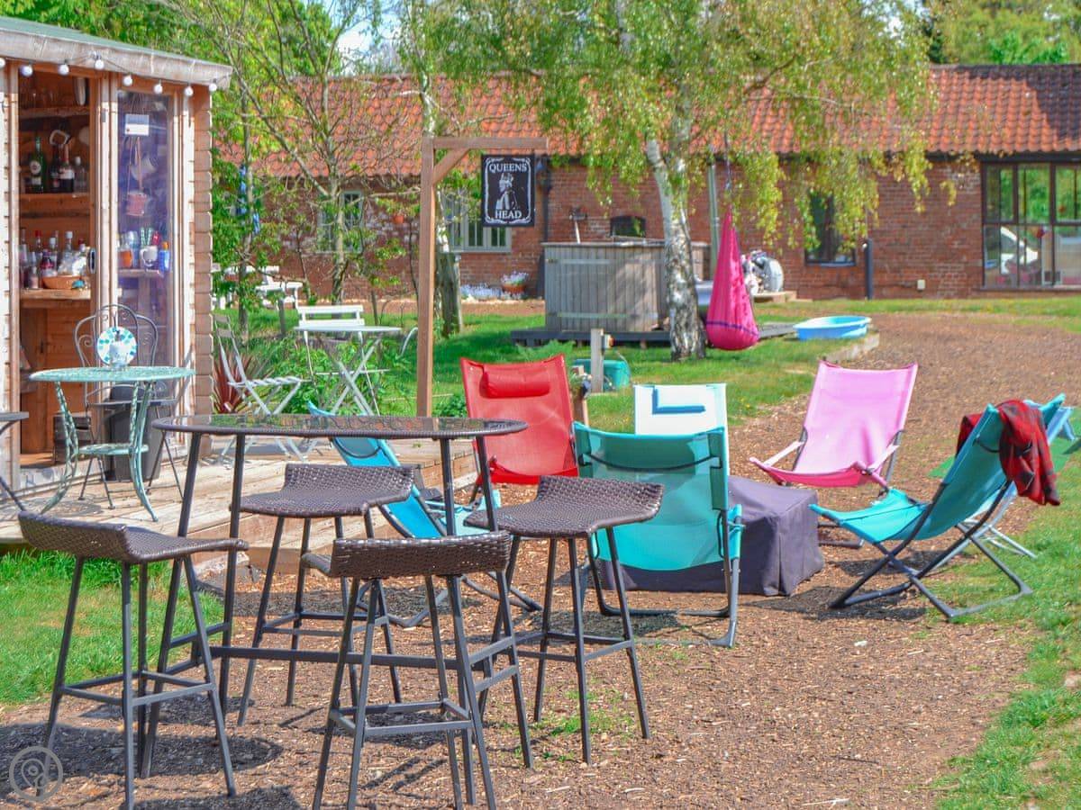 Guests are welcomed to enjoy shared use to the grounds and all its amenities including an outdoor swimming pool, six seater hot tub, wood fired hot tub, BBQ area with seating courtyard, or enjoy a game of giant garden chess. Why not visit the Queens Head, an on-site self-service honesty bar, and relax within one of the many seating areas enjoying both sunny and shaded areas located in the grounds. Fresh produce can be purchased from a local farm shop, or why not take advantage of the in-house chef services, have your meals cooked and prepared on your behalf, pre-booking essential and charges apply.