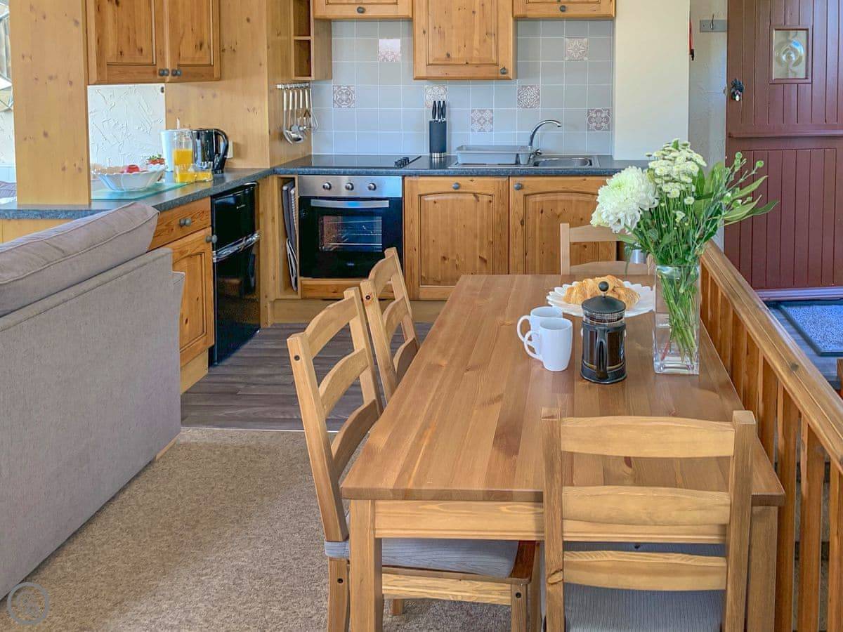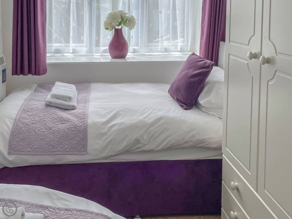 It sleeps four. Two bedrooms downstairs, one double and one twin. One bathroom with a bath and a shower over it. It's got a 4 Star rating, so it's comfortable and everything works as it should.