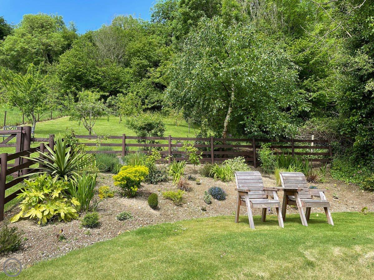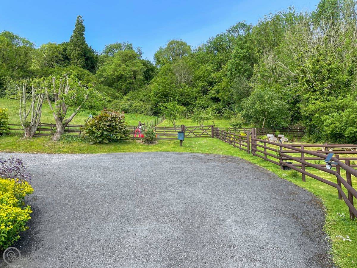You share the grounds with the other cottages here. There's a big, flat paddock which is good for kids and dogs to run about in. There's a field opposite with our two Shetland ponies in it. There's a small play area for children, an orchard, and a covered games room with table tennis, table football, and darts. The laundry room is shared too, with a washing machine and tumble dryer. There's a freezer with a drawer labelled for this cottage.