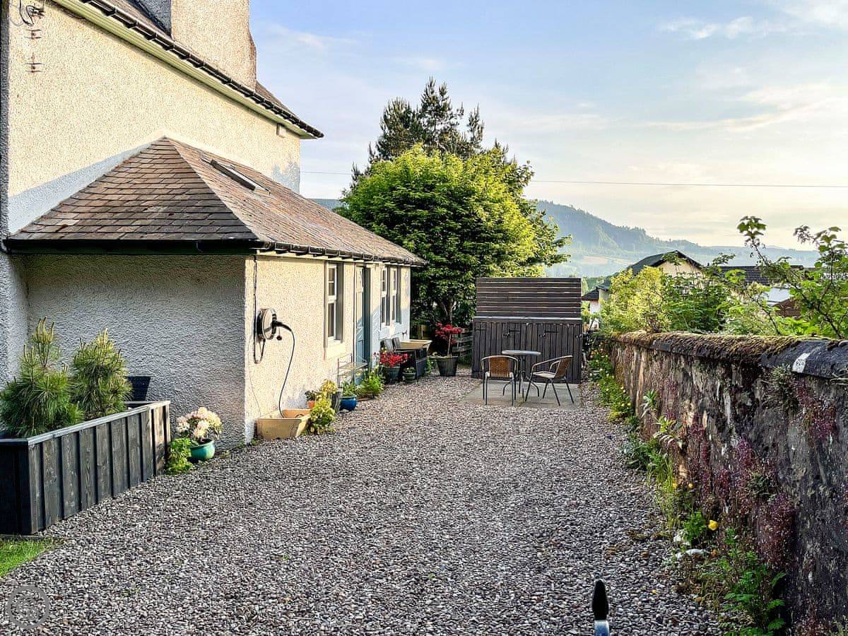 The Wee Manse is a beautiful self-contained studio; a new addition to Aberfeldy, attached to the Old Manse but has its private entrance and driveway. A mere 2 minutes’ walk from the quaint town centre and set in a quiet peaceful location. Finished to a high standard with underfloor heating, a double bed with wonderful Egyptian cotton, the studio includes a Smart TV and Wi-Fi. Even though it’s compact, the kitchen area is well-equipped with a Nespresso coffee machine, microwave/grill and fridge. You have your own private outdoor space. A great getaway, ideal for relaxing, reading or catching up on work.