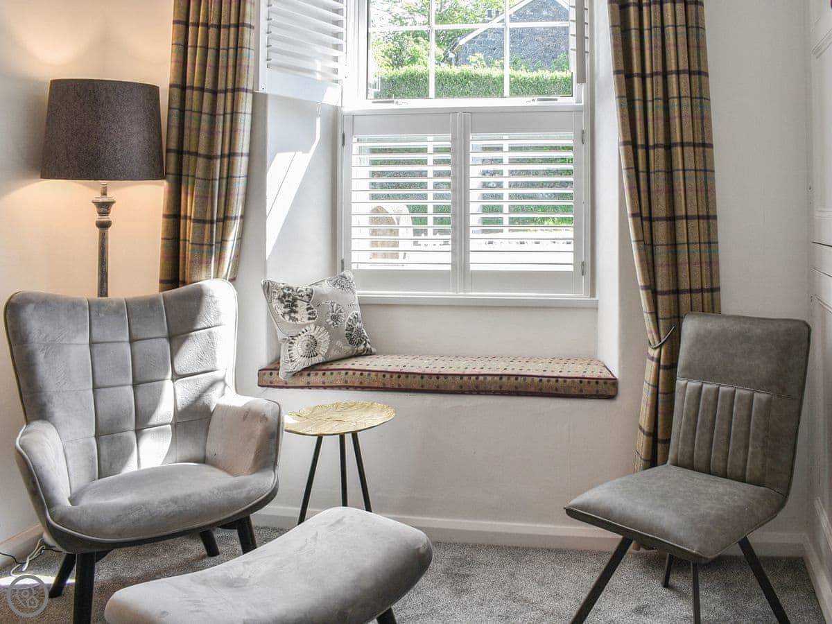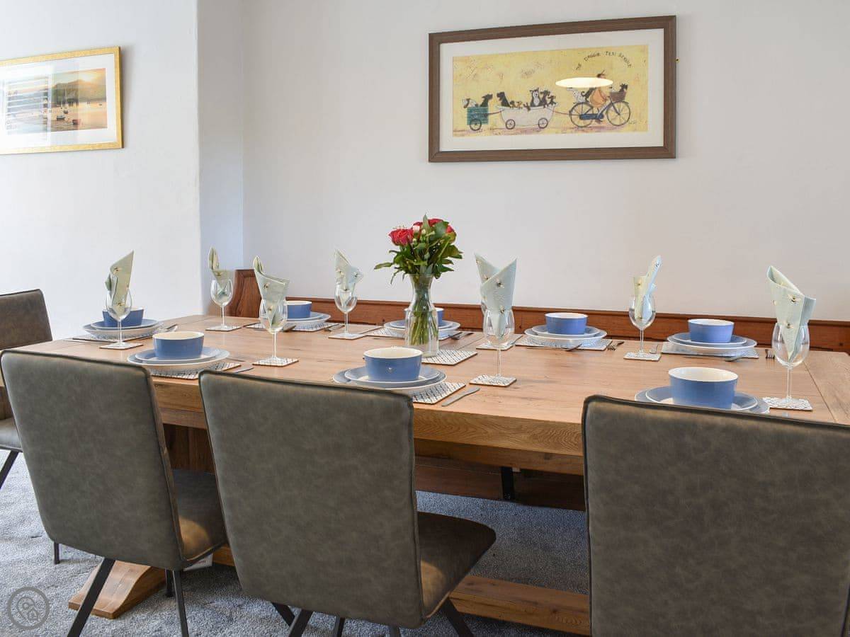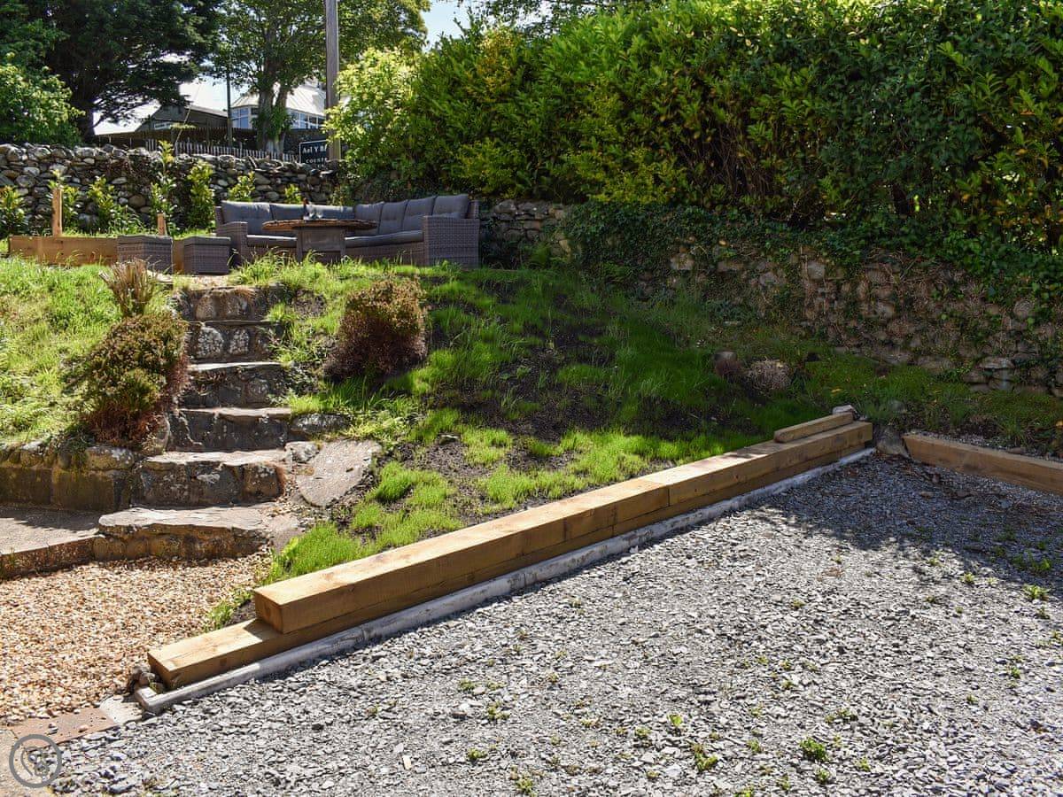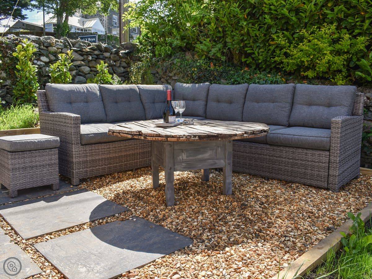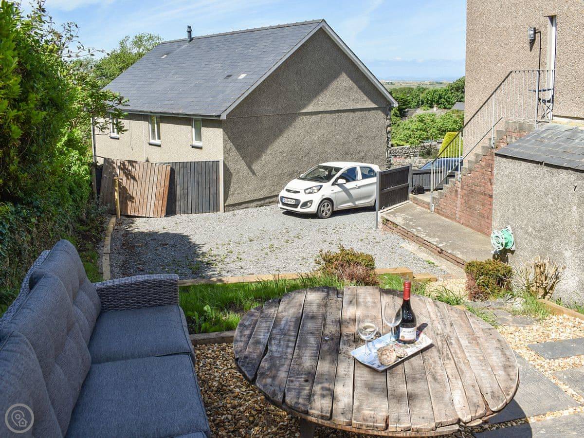 Bryn Y Felin is about two miles north of Harlech. It's detached. You're at the end of a farm track, so it’s quiet. The garden is yours to use, with a table and chairs.