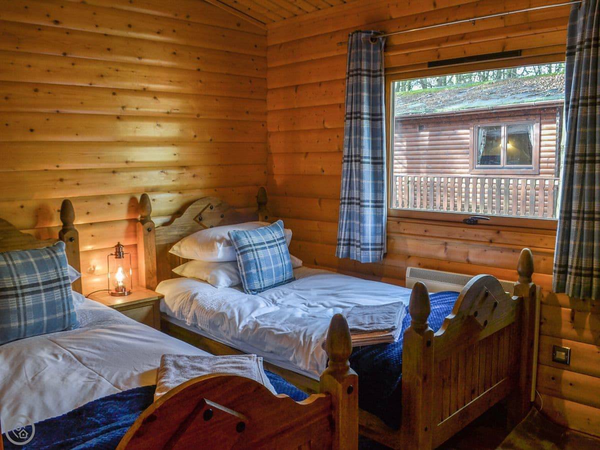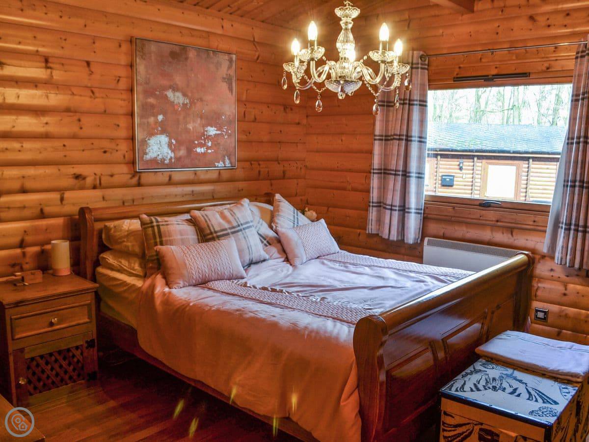 Kenwick Lodge is a log cabin in Little Cawthorpe. It's a detached place in Kenwick Woods, so you've got woodland all around.