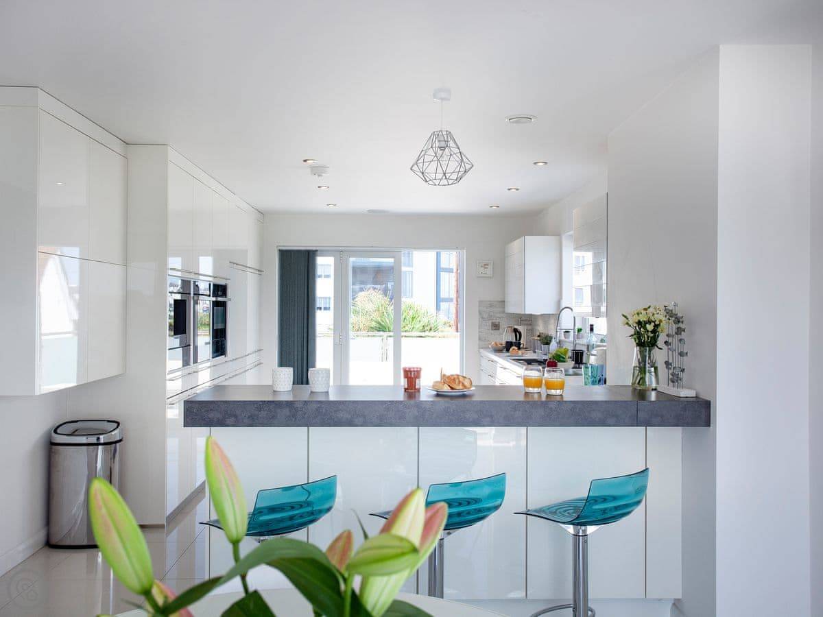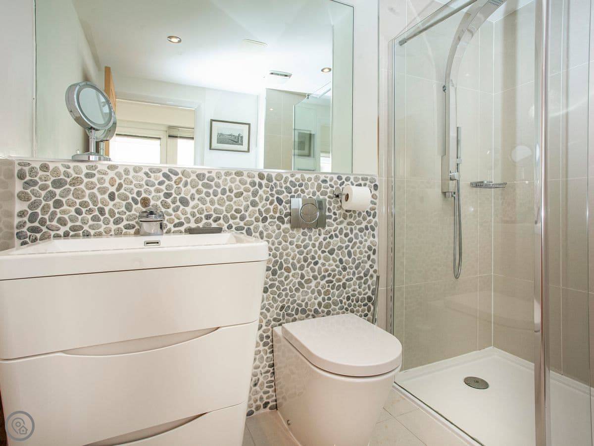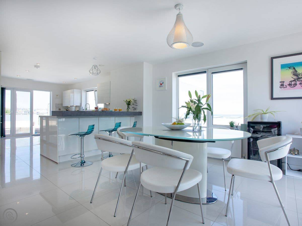 The ground floor comprises a superb shower room, and four bedrooms are split over the next three floors. The open plan living space has balconies where you can enjoy morning coffee or perhaps a glass of wine as the sun sets on another memorable day can be enjoyed. From here marvel at the view and plan tomorrow’s adventure! The kitchen is fully equipped, with all you need to prepare a simple snack or a family feast, with clever extras thoughtfully provided, including cupboards which open electronically! The dining area has quality dining table and chairs, ample room for all your guests, whilst there is sumptuous seating you will just want to sink into, superfast Wi-Fi throughout and a 75" television.