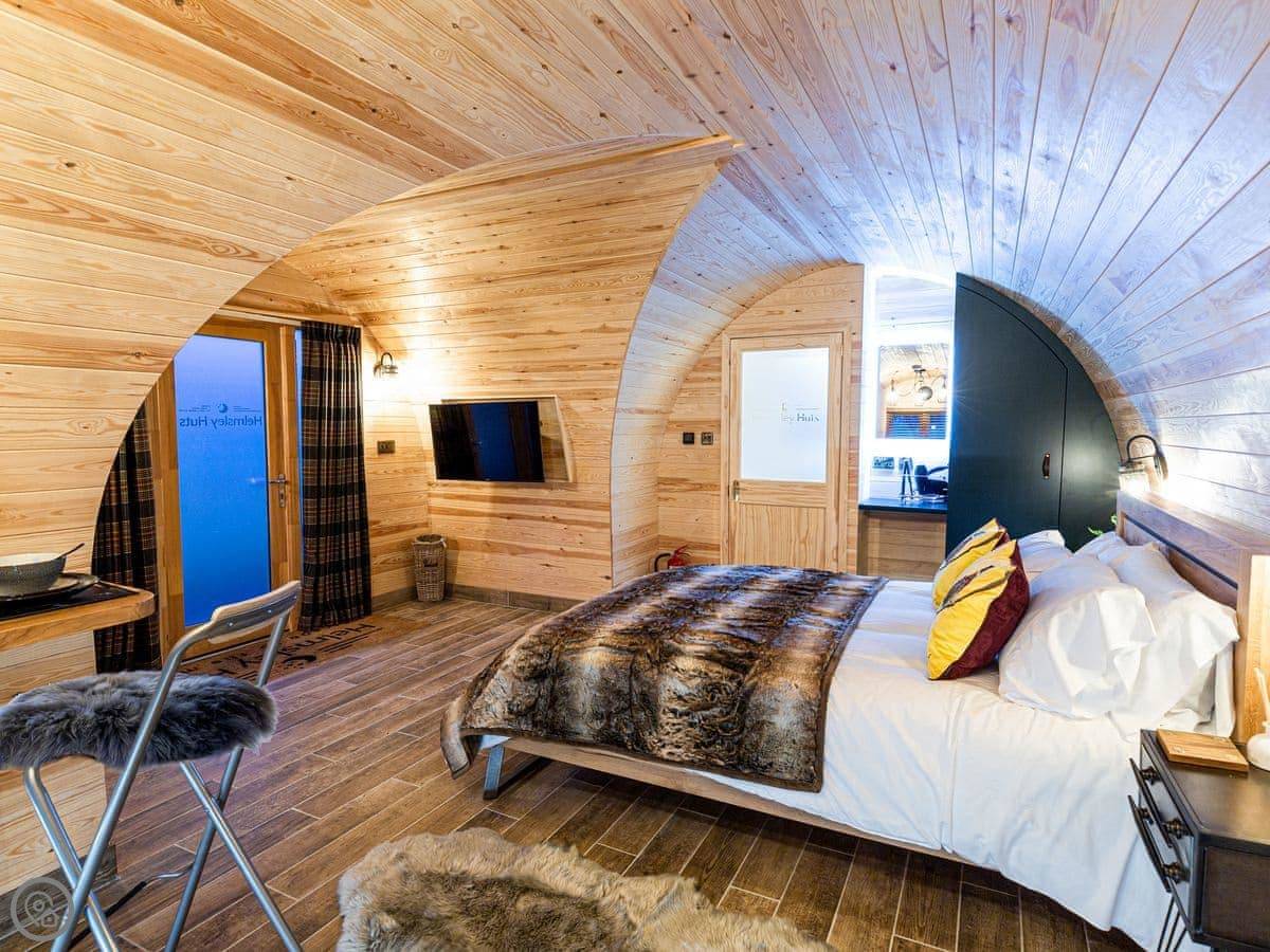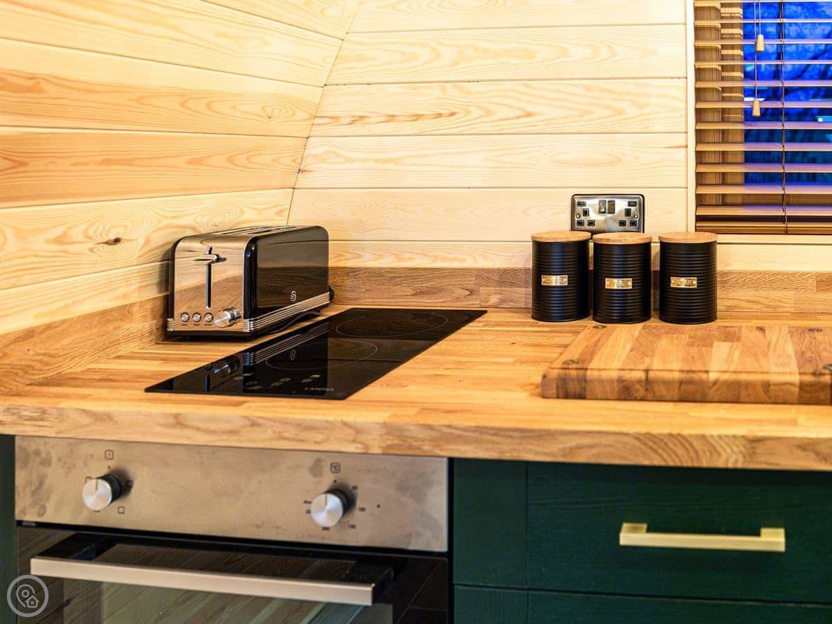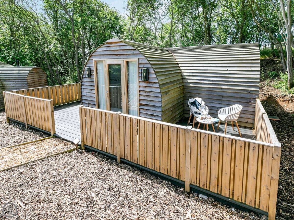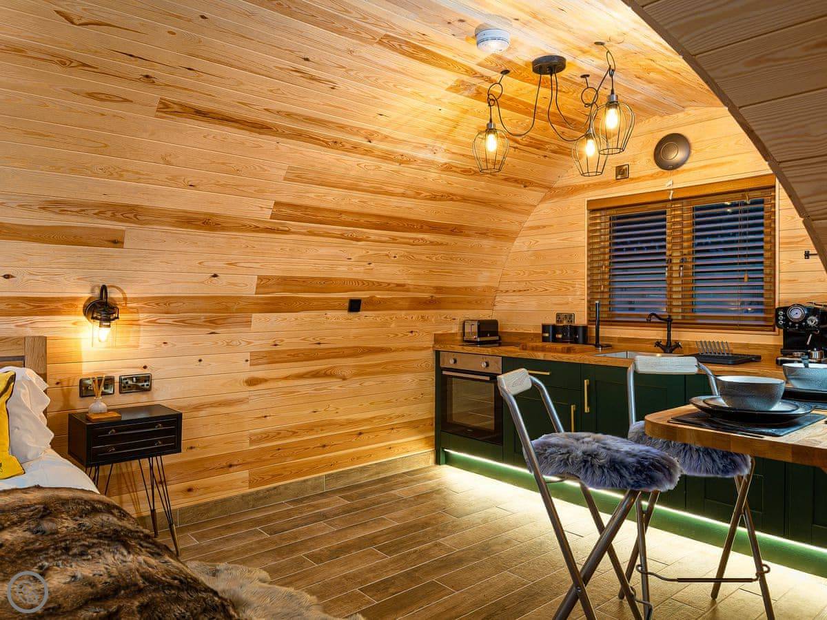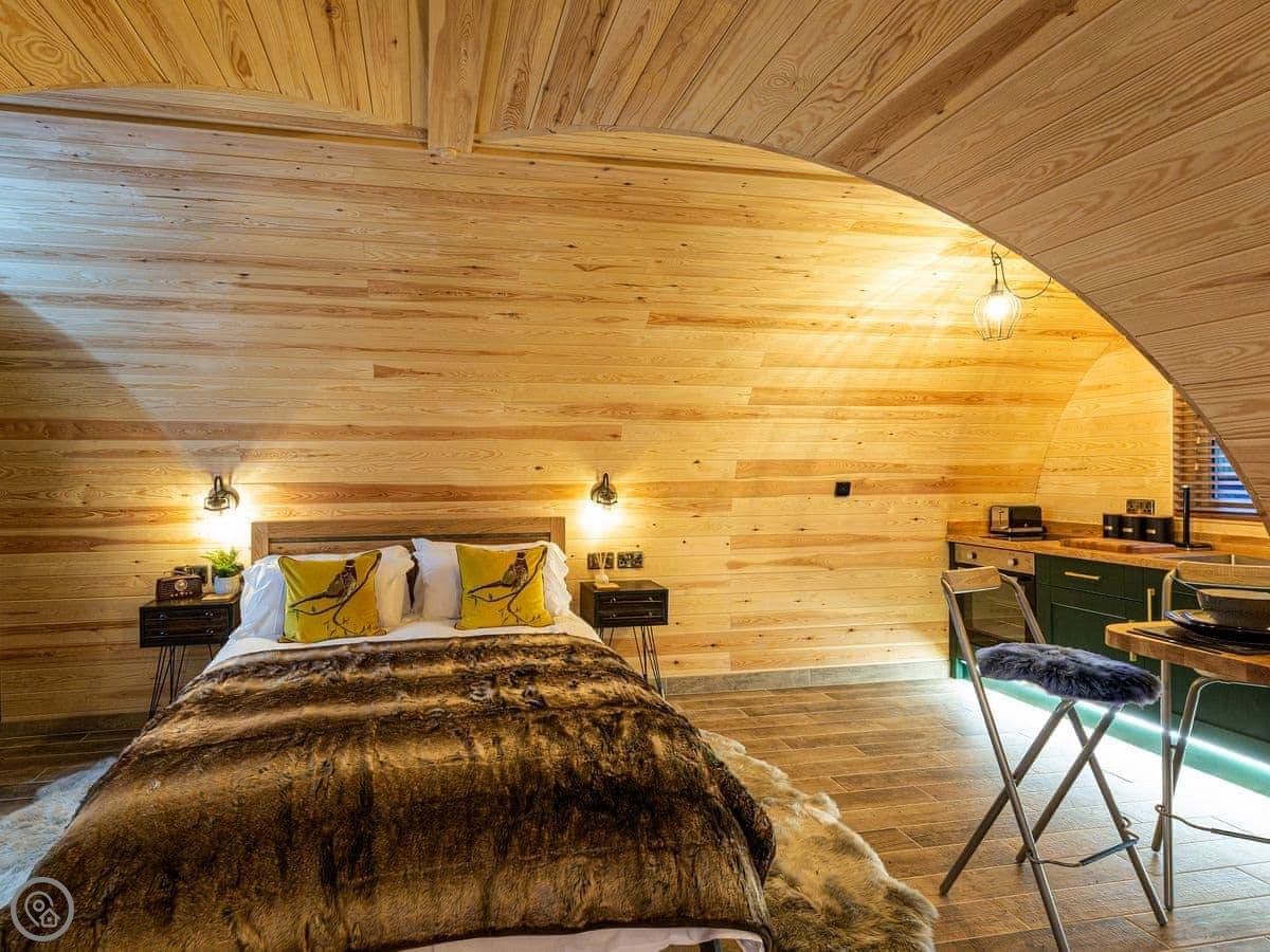 The living area boasts comfortable seating and a pull out 45” Smart TV giving an excellent place to relax after a day exploring the wonderful North York Moors National Park. Over in the stylish kitchen area you can find all the essentials, and you will be able to prepare a meal in no time. With a plush king size bed you are guaranteed a perfect night’s sleep. Adjacent to the open plan area is a gorgeous bathroom complete with rain shower which is just what you need after a day walking and taking in the surrounding countryside. The owners also provide bathrobes, slippers, towels and handmade soaps in the bathroom and the lodge has its’ own seated dressing area with hairdryer, straighteners, and built-in wardrobe.