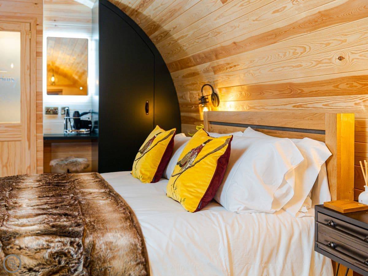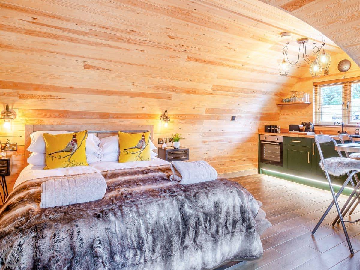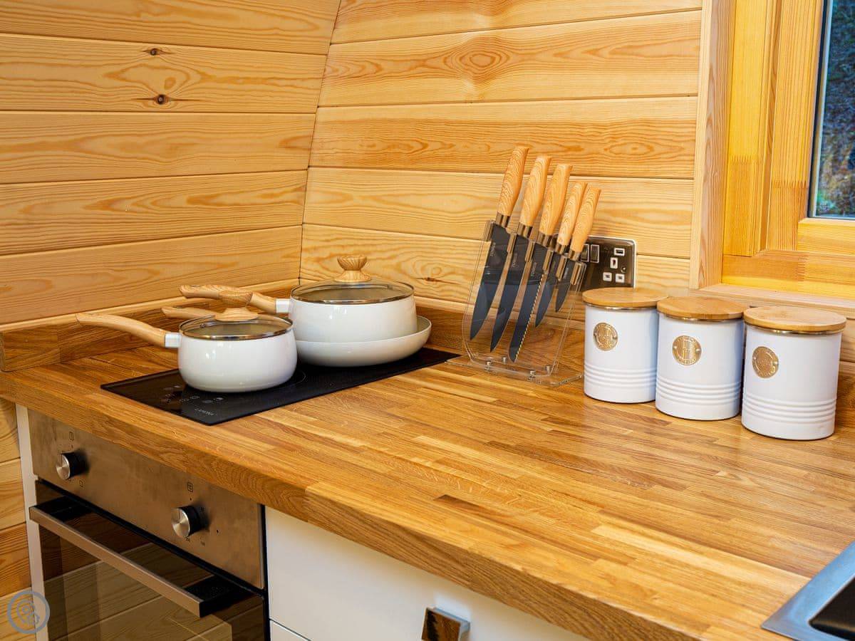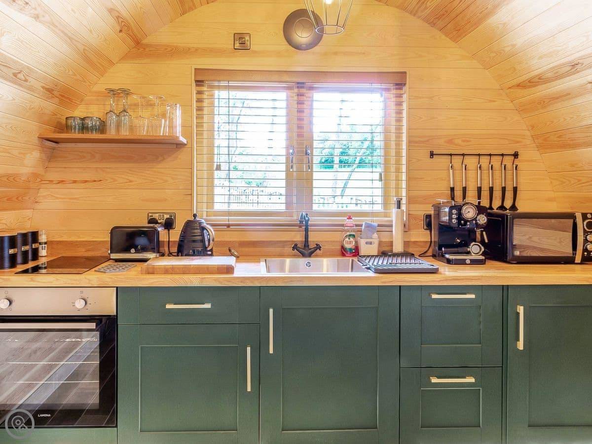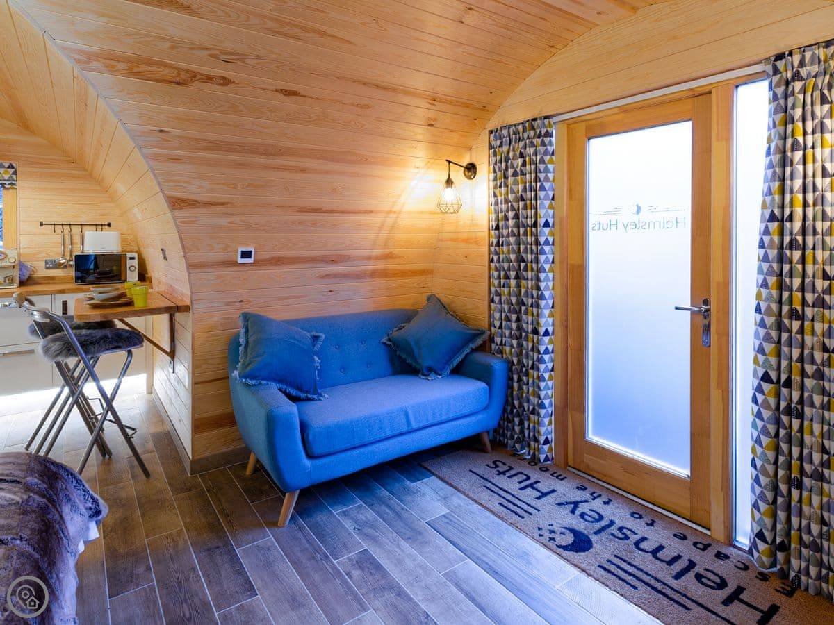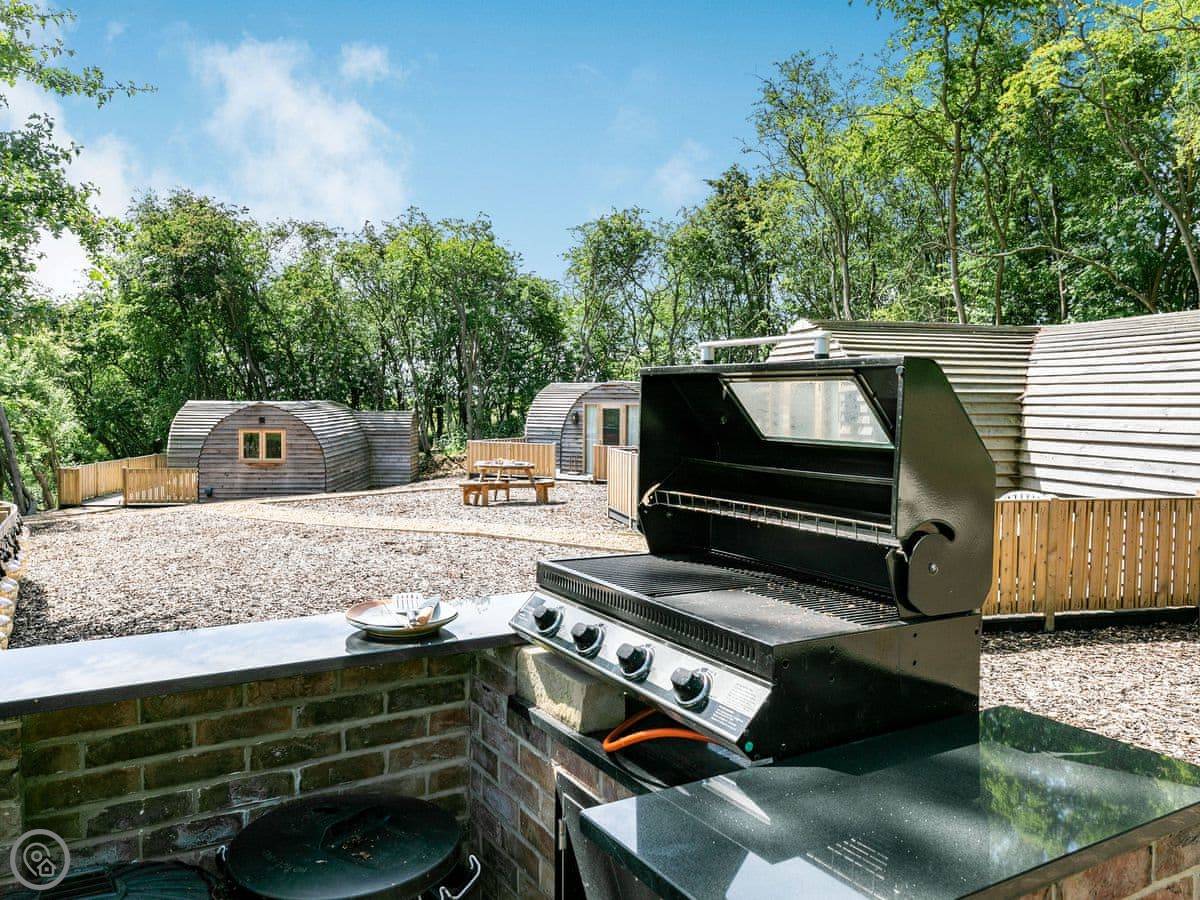 The living area boasts comfortable seating and a pull out 45” Smart TV giving an excellent place to relax after a day exploring the wonderful North York Moors National Park. Over in the stylish kitchen area you can find all the essentials, and you will be able to prepare a meal in no time. With a plush king size bed you are guaranteed a perfect night’s sleep. Adjacent to the open plan area is a gorgeous bathroom complete with rain shower which is just what you need after a day walking and taking in the surrounding countryside. The owners also provide bathrobes, slippers, towels and handmade soaps in the bathroom and the lodge has its’ own seated dressing area with hairdryer, straighteners, and built-in wardrobe.