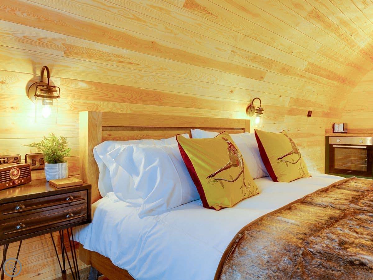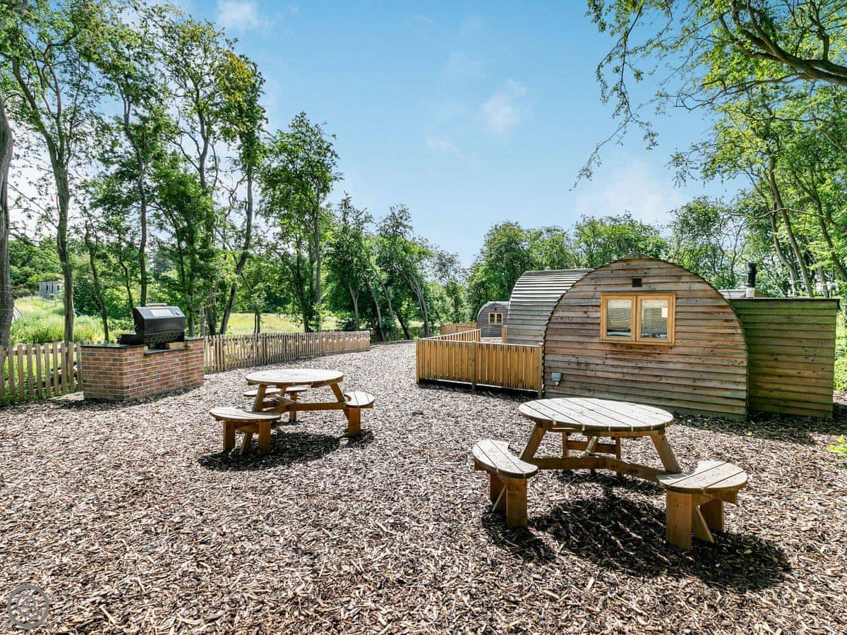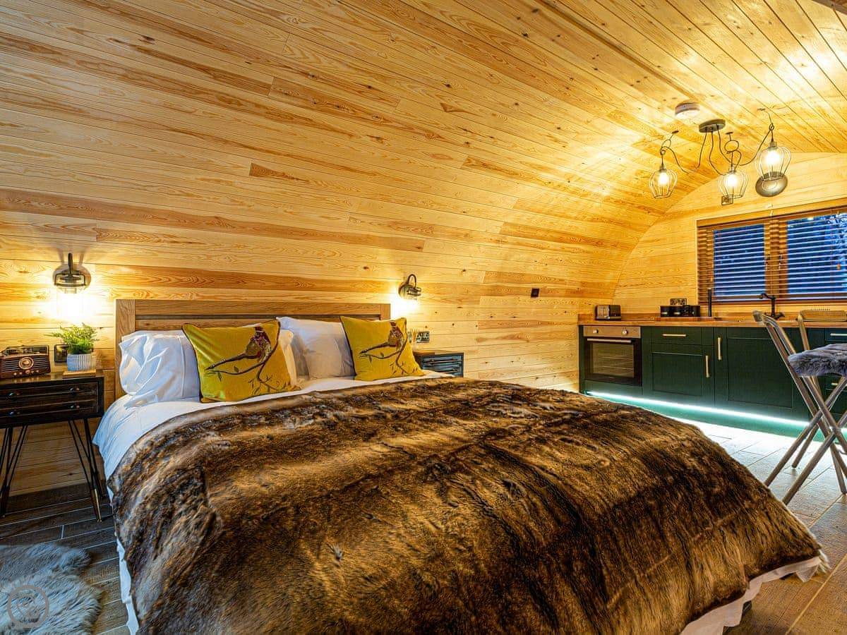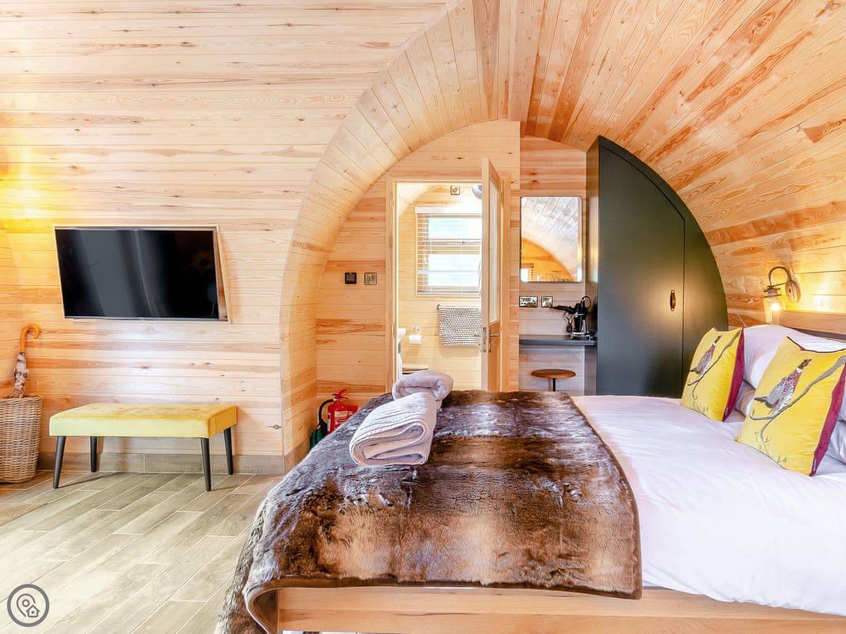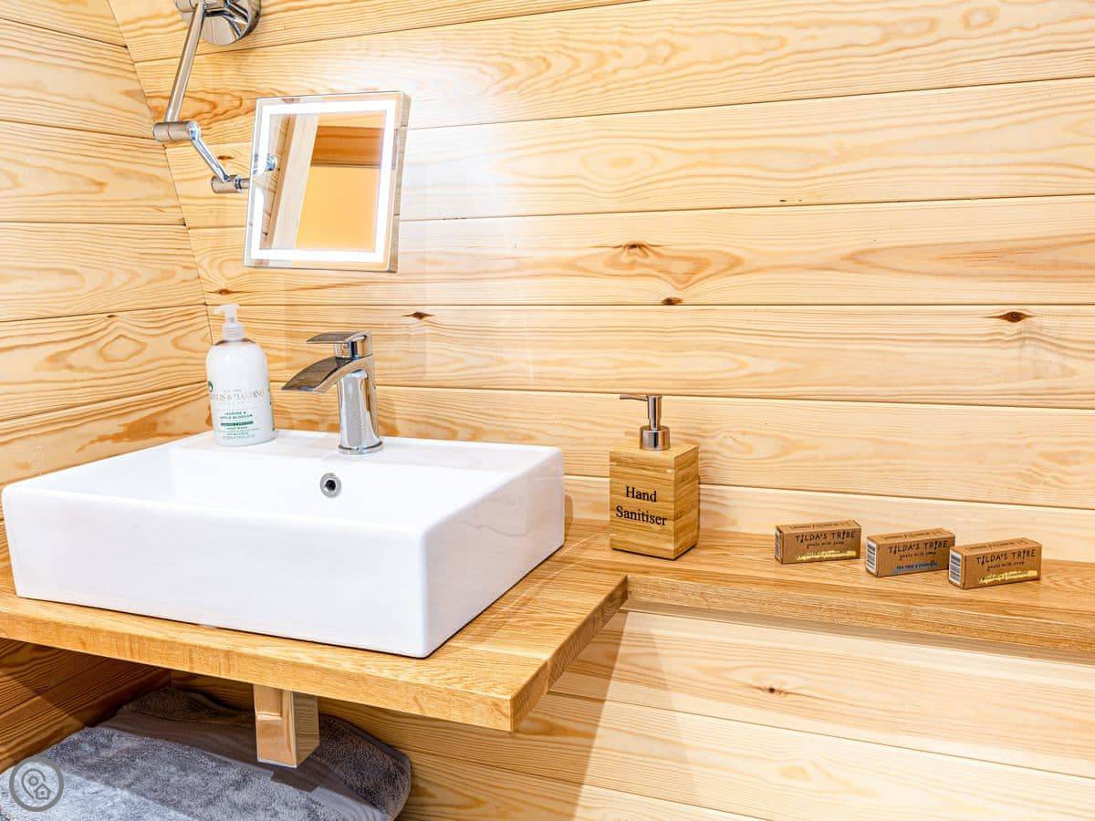 The living area boasts comfortable seating and a pull out 45” Smart TV giving an excellent place to relax after a day exploring the wonderful North York Moors National Park. Over in the stylish kitchen area you can find all the essentials, and you will be able to prepare a meal in no time. With a plush king size bed you are guaranteed a perfect night’s sleep. Adjacent to the open plan area is a gorgeous bathroom complete with rain shower which is just what you need after a day walking and taking in the surrounding countryside. The owners also provide bathrobes, slippers, towels and handmade soaps in the bathroom and the lodge has its’ own seated dressing area with hairdryer, straighteners, and built-in wardrobe.