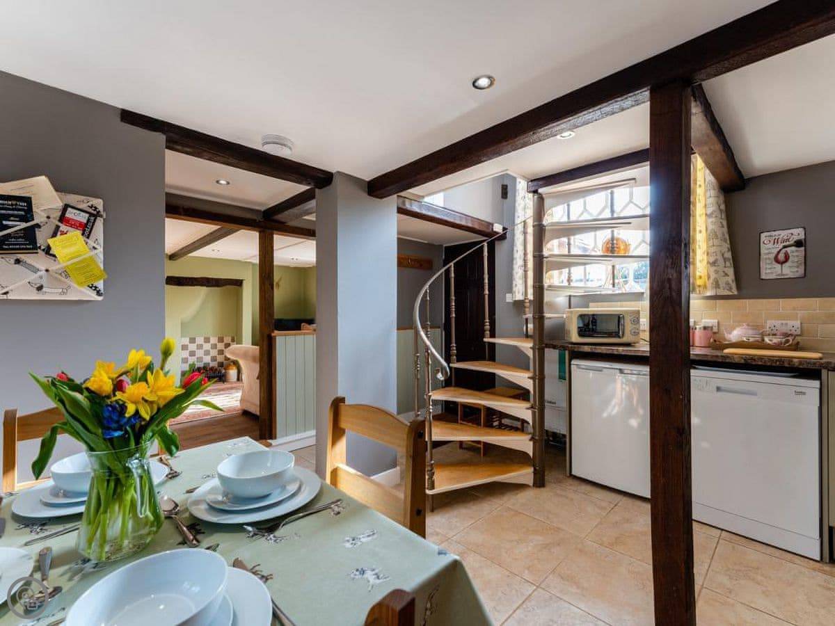The cottage sleeps four. Two bedrooms, one bathroom. It's got a 4 Star rating, which means it's well looked after. The stairs are spiral. They're fine, but just so you know.