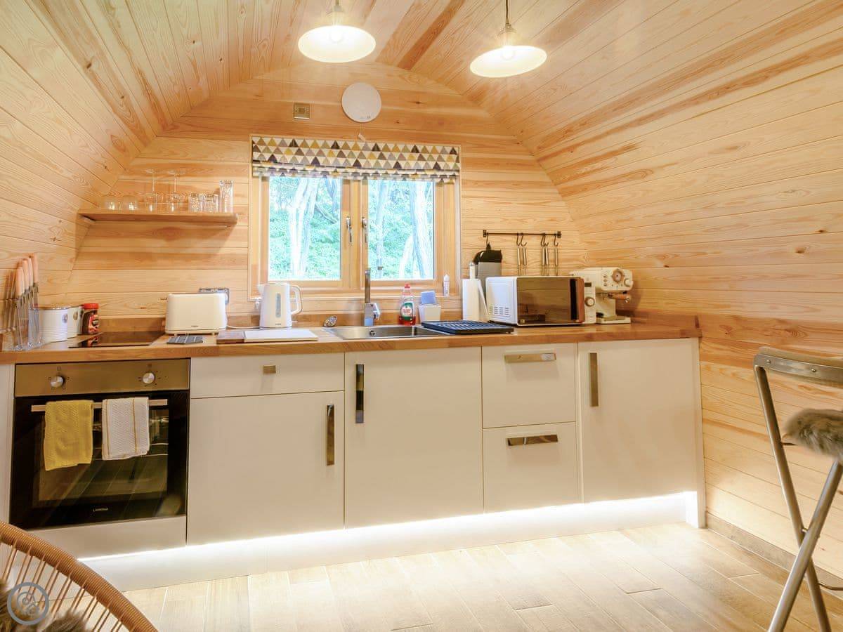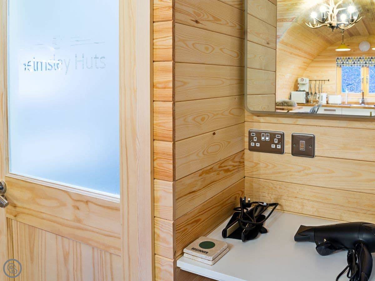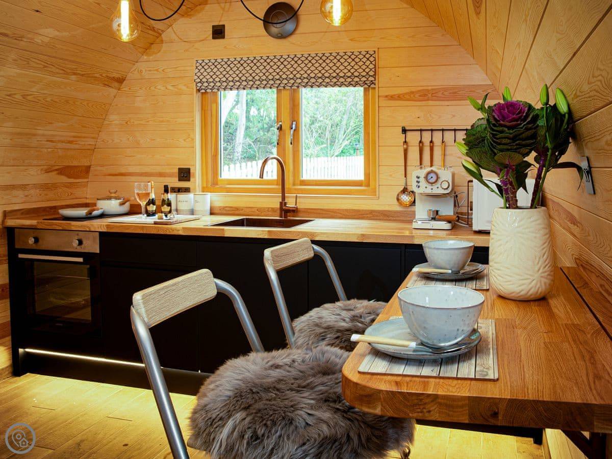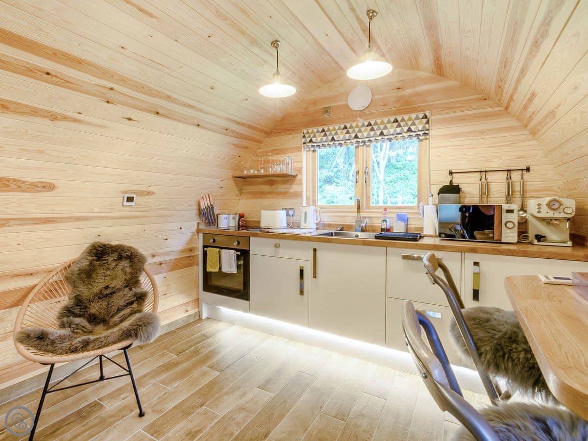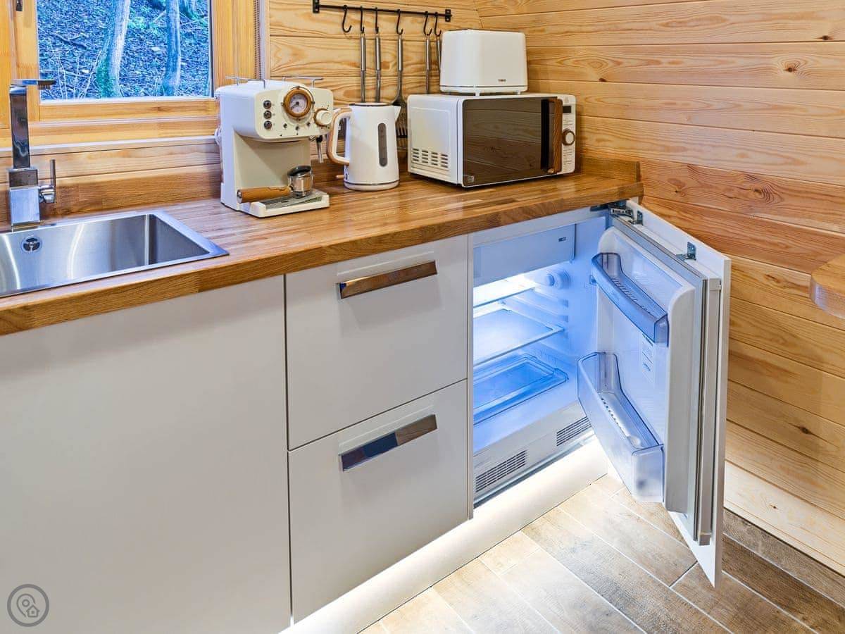 The living area boasts comfortable seating and a pull out 45” Smart TV giving an excellent place to relax after a day exploring the wonderful North York Moors National Park. Over in the stylish kitchen area you can find all the essentials, and you will be able to prepare a meal in no time. With a plush king size bed made with luxury Egyptian cotton you are guaranteed a perfect night’s sleep. Adjacent to the open plan area is a gorgeous bathroom complete with rain shower which is just what you need after a day walking and taking in the surrounding countryside. The owners also provide bathrobes, slippers, towels and handmade soaps in the bathroom and the lodge has its’ own seated dressing area with hairdryer, straighteners, and built-in wardrobe.