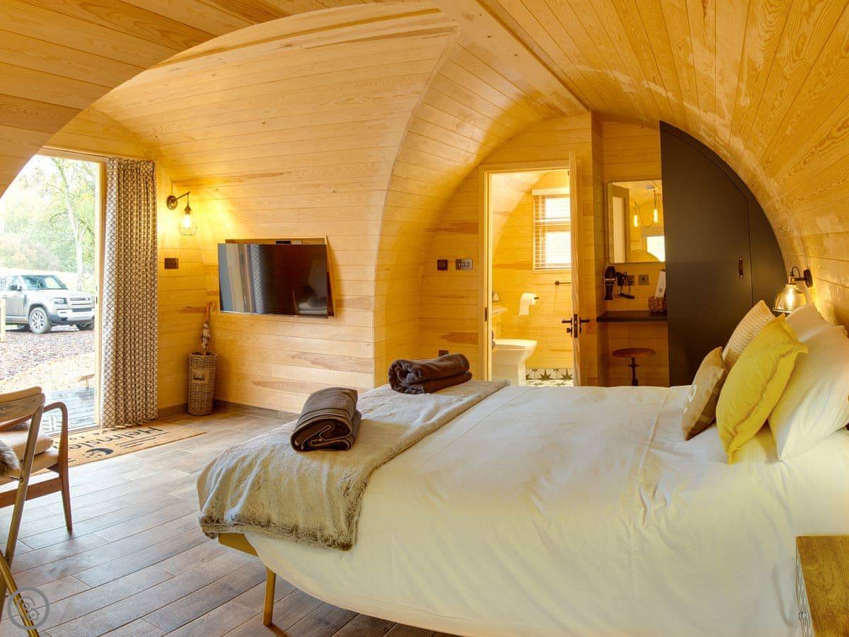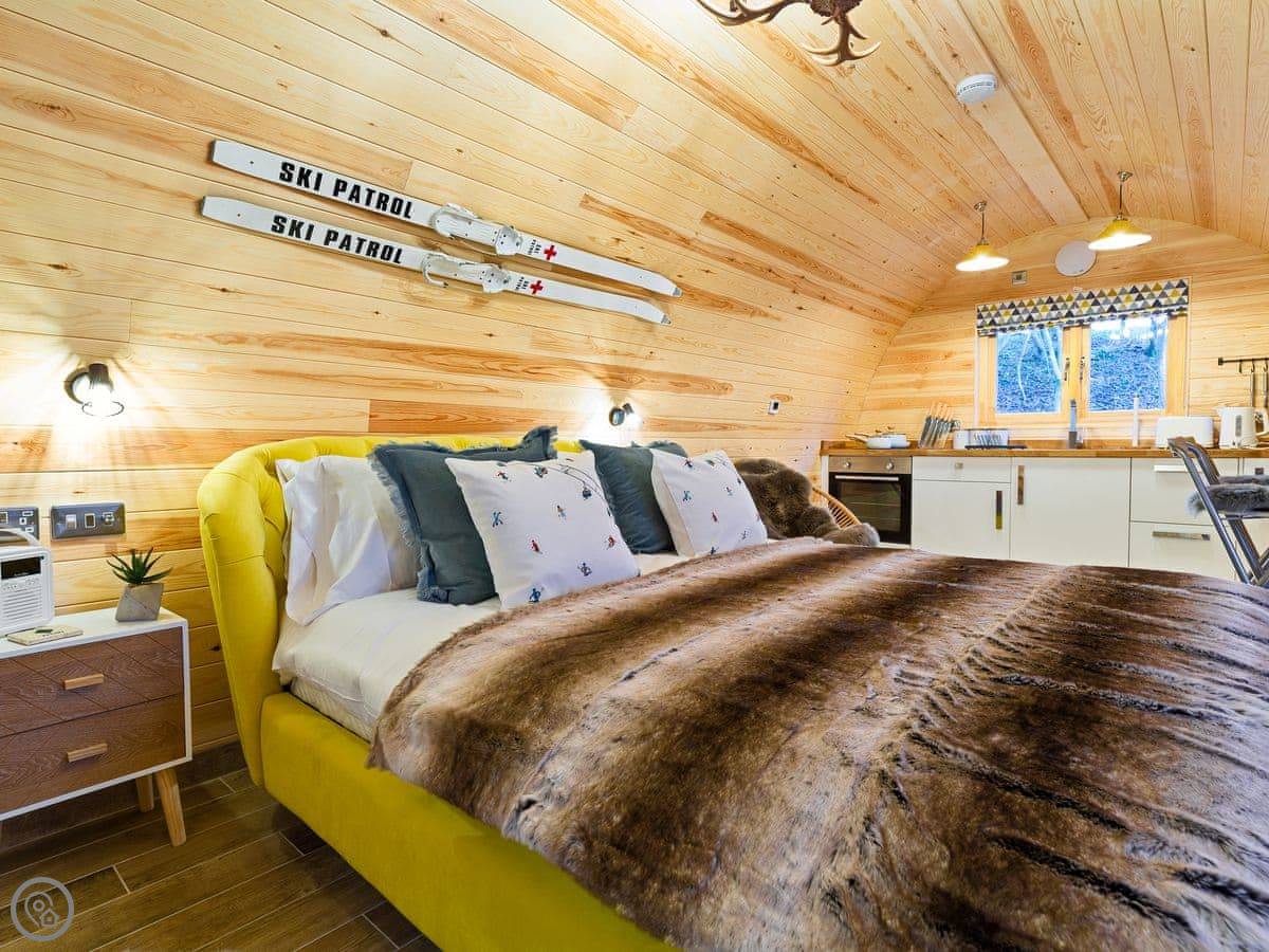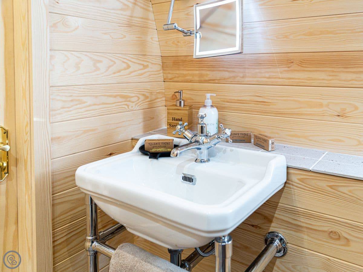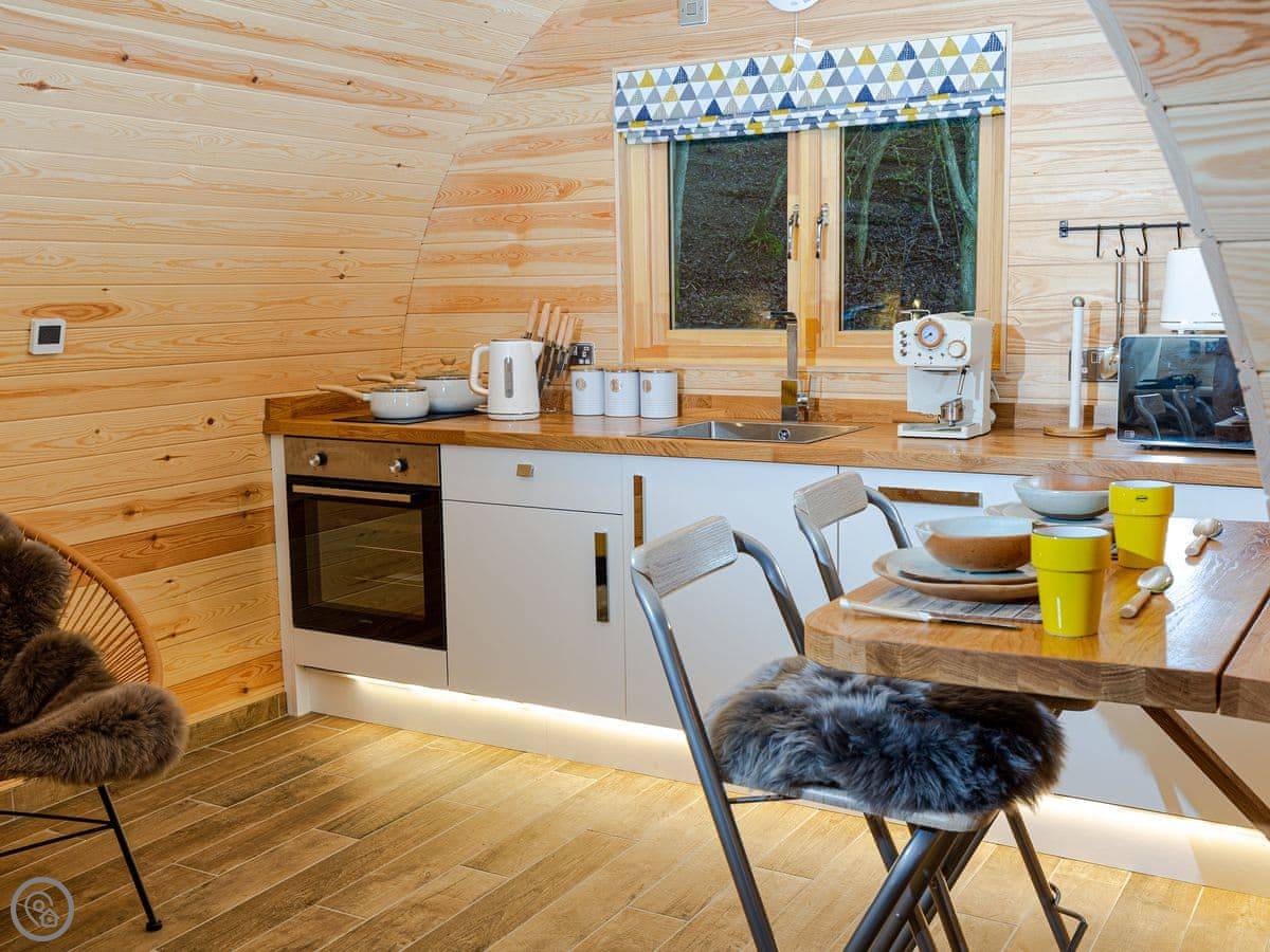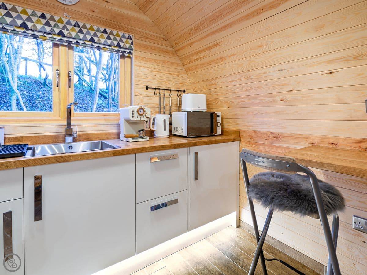 The living area boasts comfortable seating and a pull out 45” Smart TV giving an excellent place to relax after a day exploring the wonderful North York Moors National Park. Over in the stylish kitchen area you can find all the essentials, and you will be able to prepare a meal in no time. With a plush king size bed made with luxury Egyptian cotton you are guaranteed a perfect night’s sleep. Adjacent to the open plan area is a gorgeous bathroom complete with rain shower which is just what you need after a day walking and taking in the surrounding countryside. The owners also provide bathrobes, slippers, towels and handmade soaps in the bathroom and the lodge has its’ own seated dressing area with hairdryer, straighteners, and built-in wardrobe.