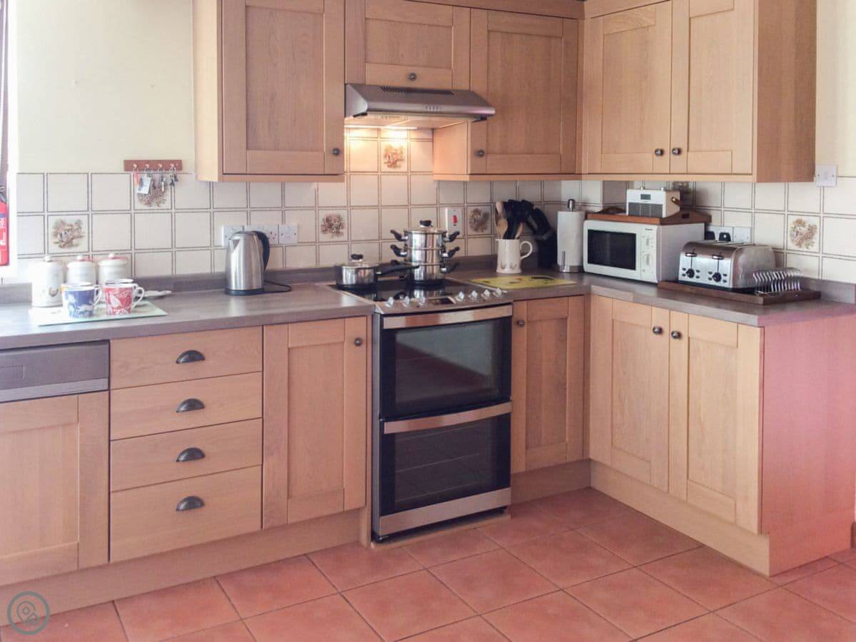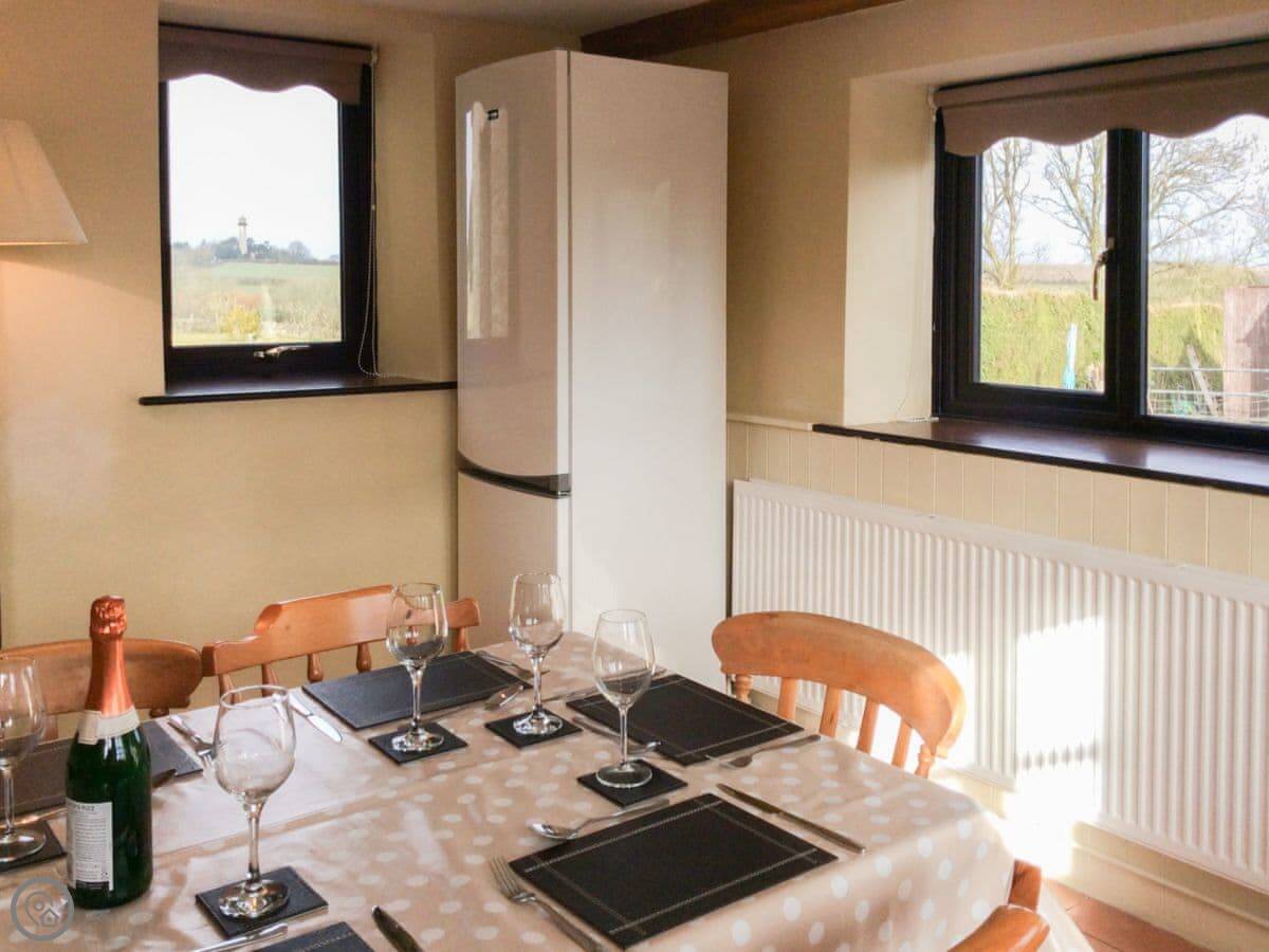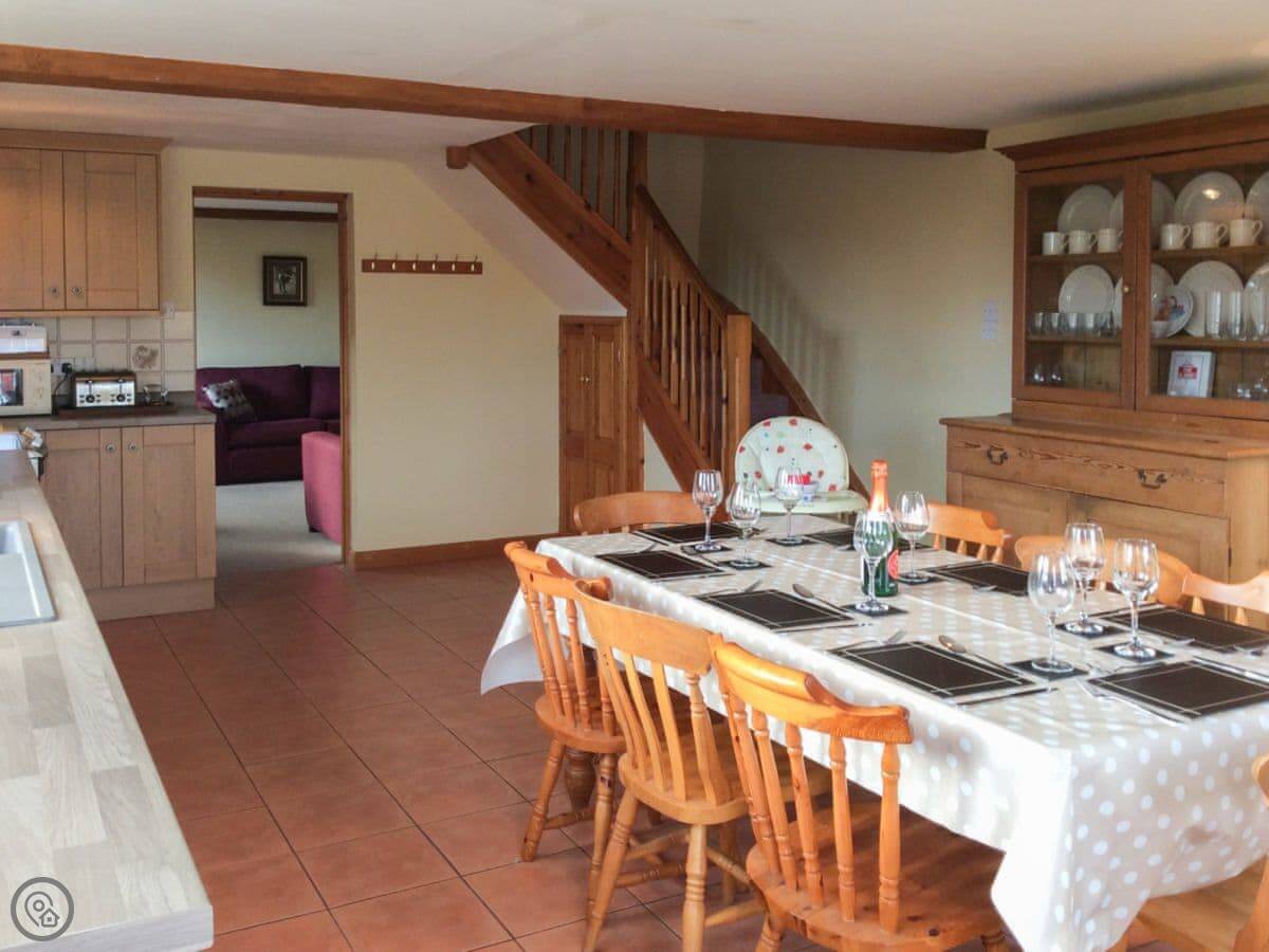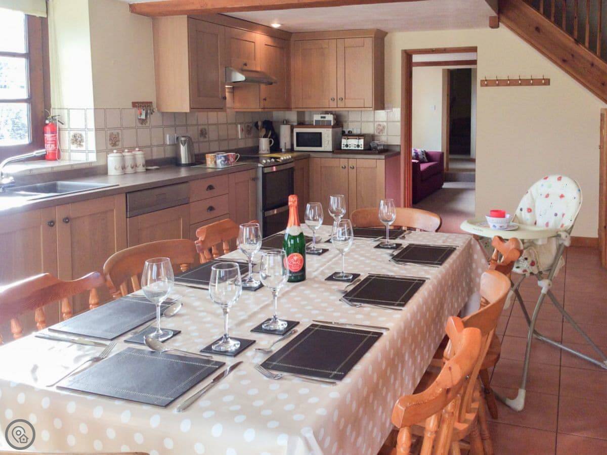 Inside, it's straightforward. The stairs are a typical cottage spiral, so mind your head. There's underfloor heating downstairs which works well. We've put in a stairgate and a highchair because we know families use it.