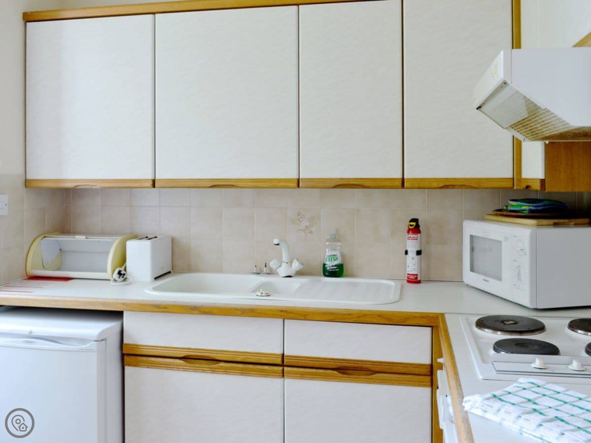 It sleeps three, which really means two adults and maybe a child on the sofa bed. It's a 3 Star property. It's clean and comfortable but basic, no frills. Being on the ground floor makes it easy for getting stuff in and out.