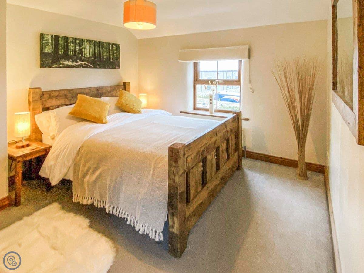 Fern Cottage is a modern, yet cosy cottage with exposed beams, curved walls, and wooden furniture throughout to keep within the theme.