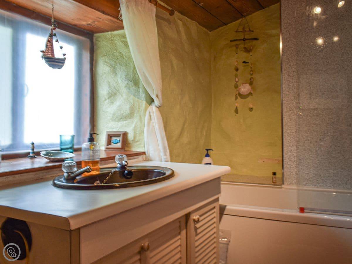 It is very unusual and quirky; downstairs is a bedroom with a downstairs shower room and separate toilet. There is a sitting room and a separate dining room, the main kitchen is also located on the ground floor with access to the wild garden. Upstairs are two more bedrooms, a family bathroom, a kitchenette, and a large lounge. The layout downstairs would suit people who do not want to manage the stairs, in larger groups the main sitting room upstairs is spacious with plenty of seating, the kitchenette offers easy access for making snacks, hot or cold drinks and for microwaving meals, saving the trips up and downstairs to the main kitchen whilst the sofa bed allows for an additional two people to sleep. The furniture is eclectic and mismatched which adds to the character of the property.