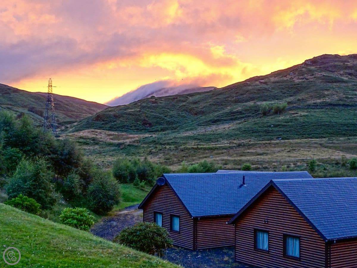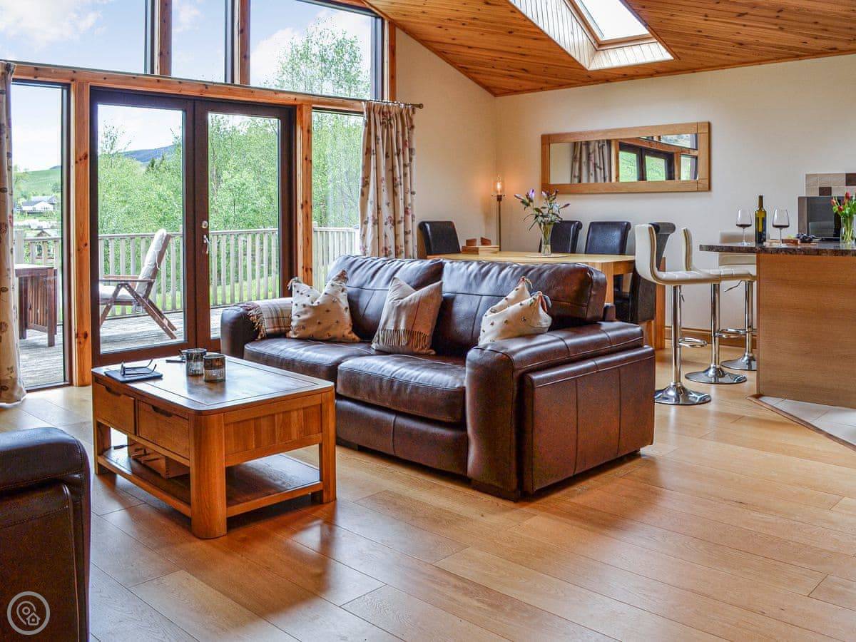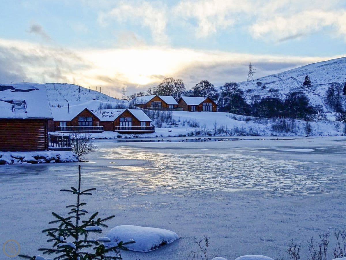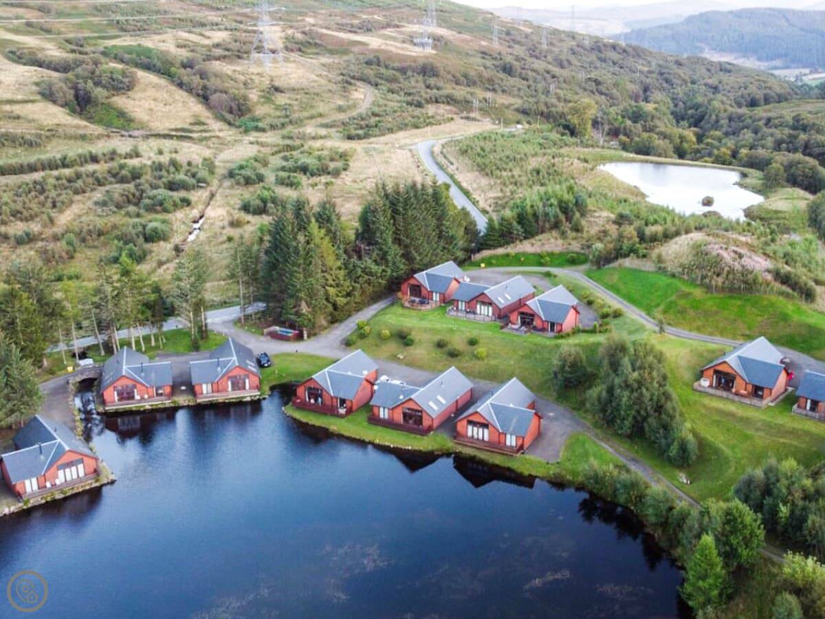 Glengoulandie Lodge is near Keltneyburn, between Aberfeldy and Pitlochry. It's a detached bungalow, so all on one level. You look out over a loch and a deer park. The view is good, lots of hills and water, and it changes with the weather.