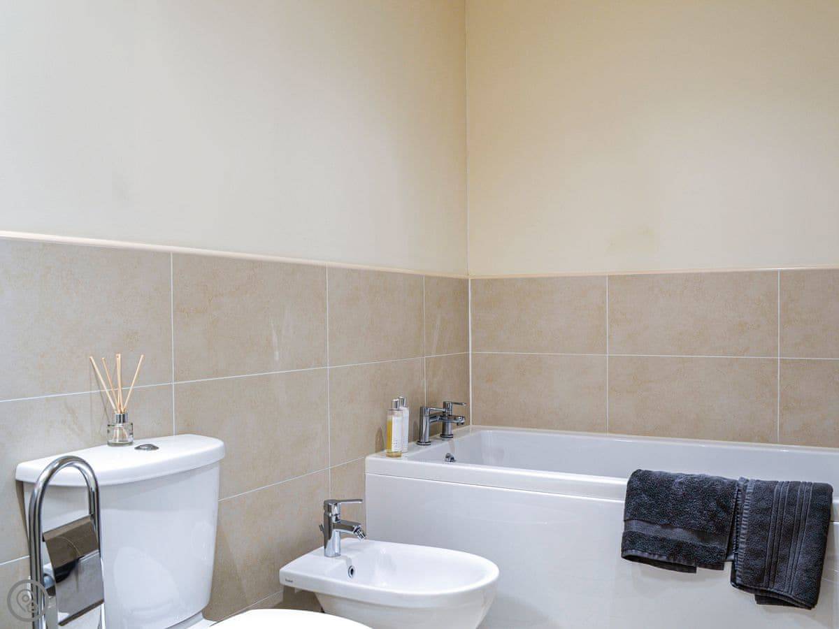 Facilities: it's all there. Washing machine, dishwasher, WiFi, TV, parking. The deck has garden furniture. It's wheelchair accessible. We take one well-behaved dog. Bedding and towels are included, and we can provide a cot and highchair.