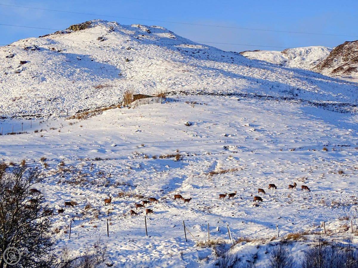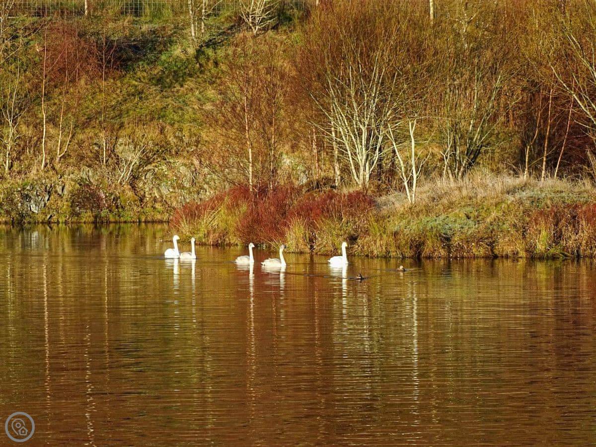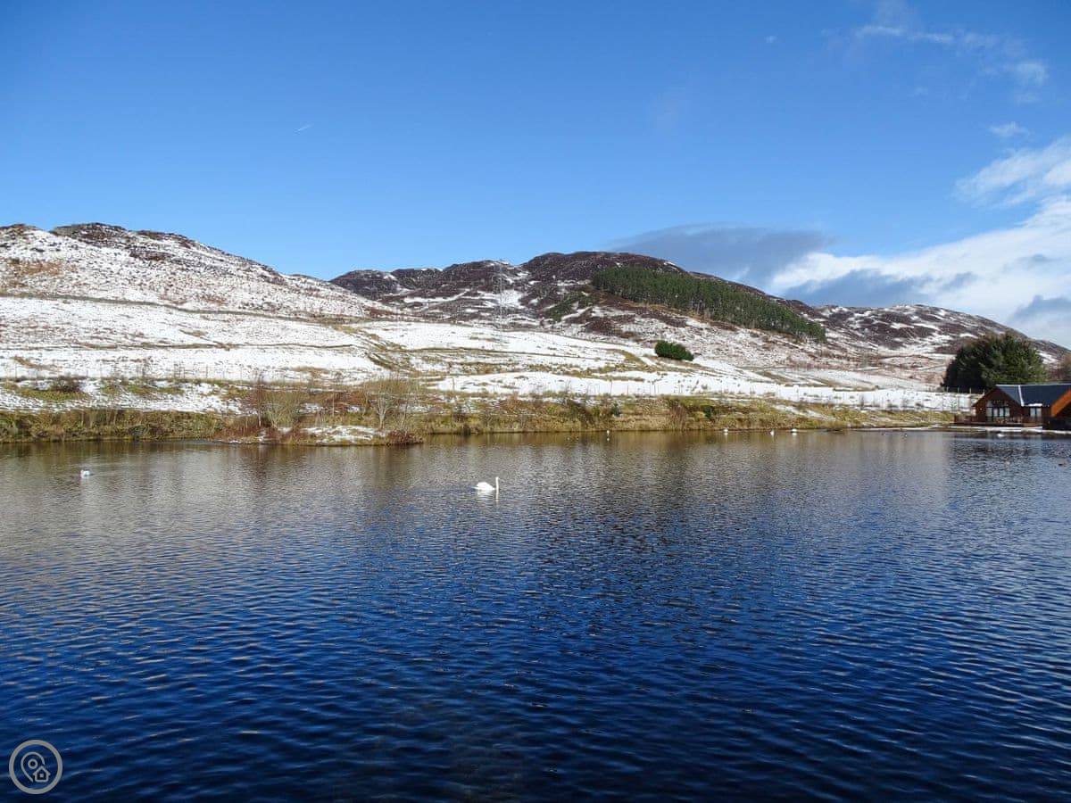 You're right on the edge of the deer park. You'll see red deer, ducks on the loch, squirrels, that sort of thing. There's a circular walk you can do from the door, around the loch and through the park. For something bigger, Schiehallion is just down the road. There are seven Munros within ten miles if that's your thing.