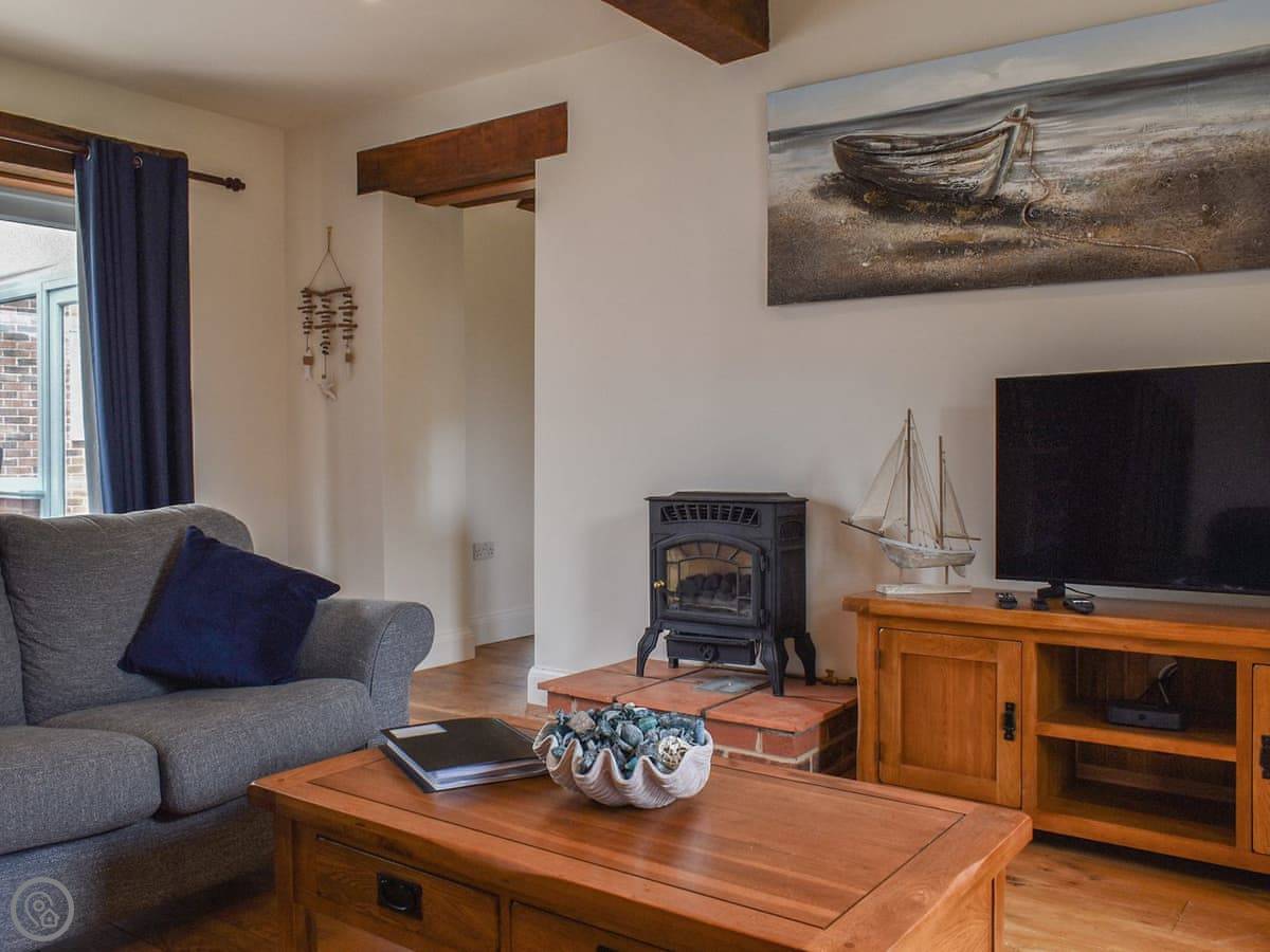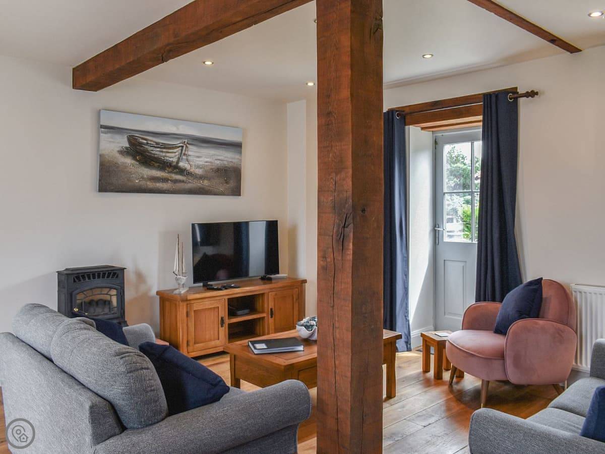 The living area is big, with plenty of room for everyone to sit. There's a wood burner, but you need to provide your own logs. The kitchen has a dishwasher and washing machine. The garden is enclosed, which is good if you're bringing a dog.