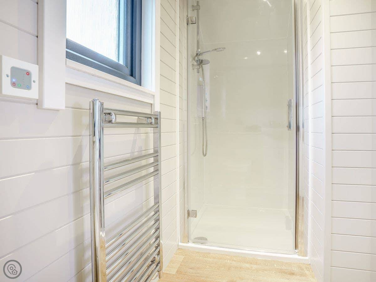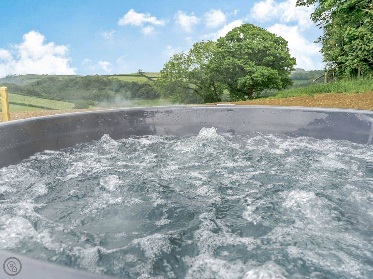 Facilities: it's got a TV, WiFi, a parking space right next to it. Bedding and towels are included. There's a cot and a highchair if you need them. You can use the BBQ. The hot tub is wood-fired, so you'll need to light it and maintain it, but it's very straightforward.