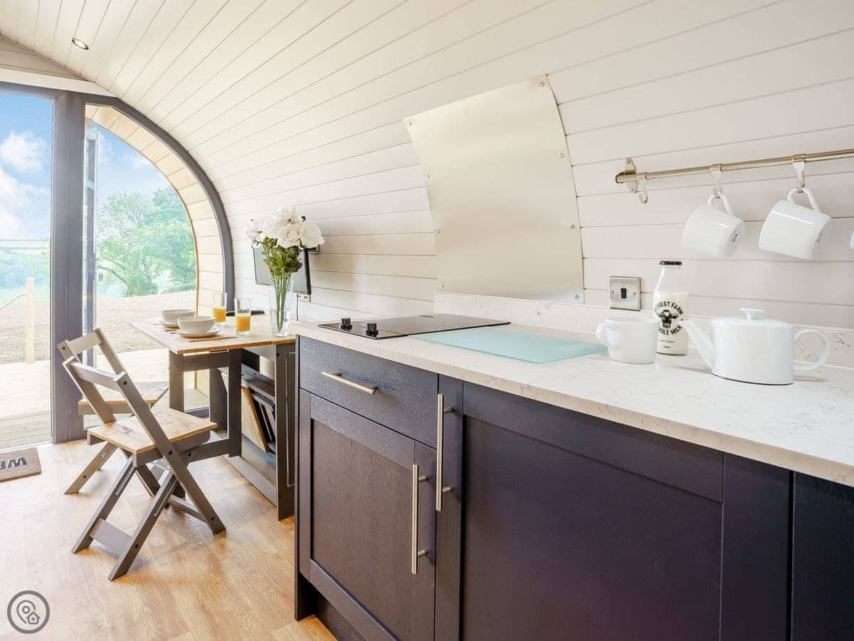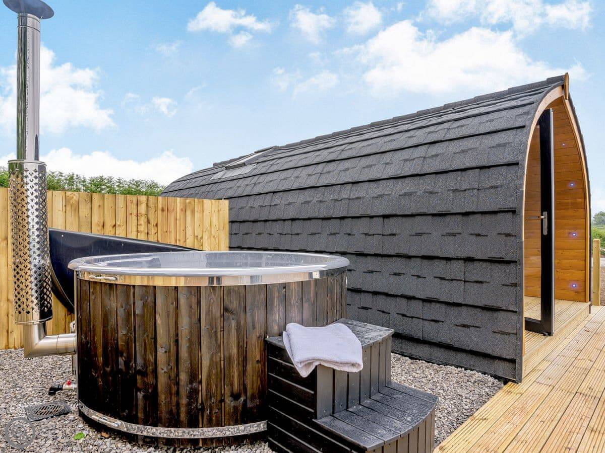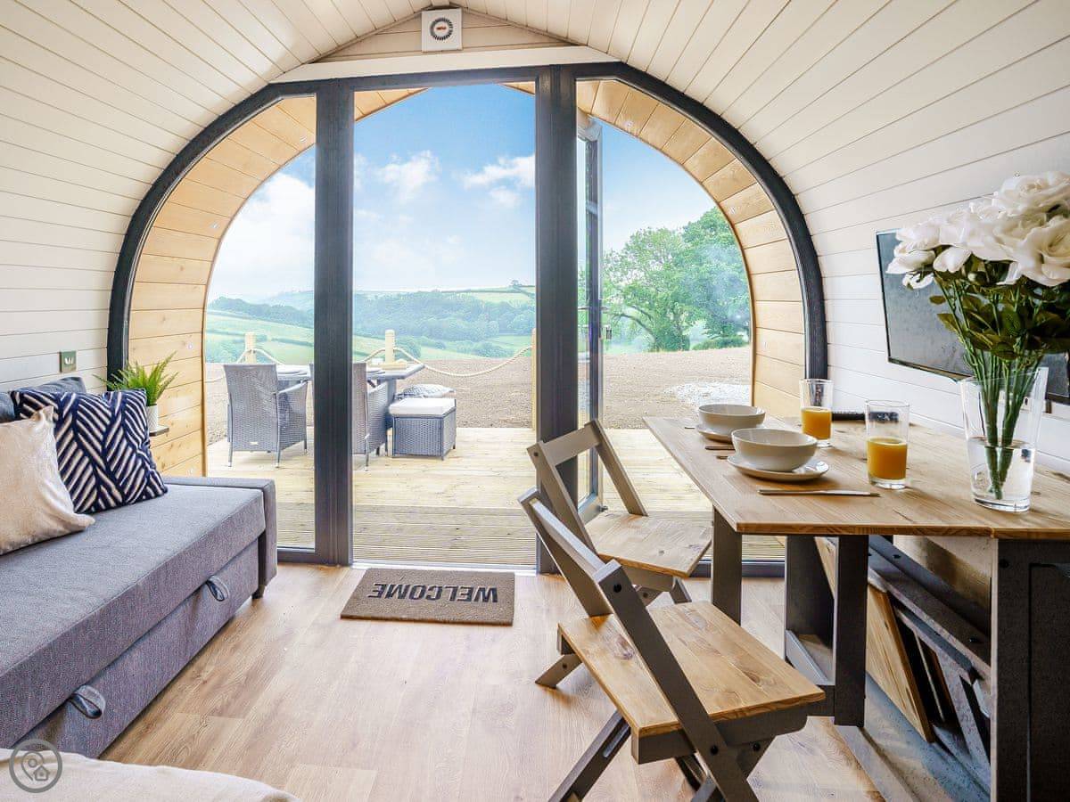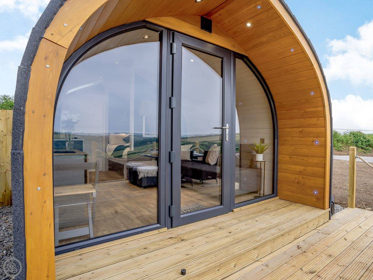You're in the fields here. There are a couple of other pods nearby but they're spaced out. It's quiet. The lanes are good for walks straight from the door.