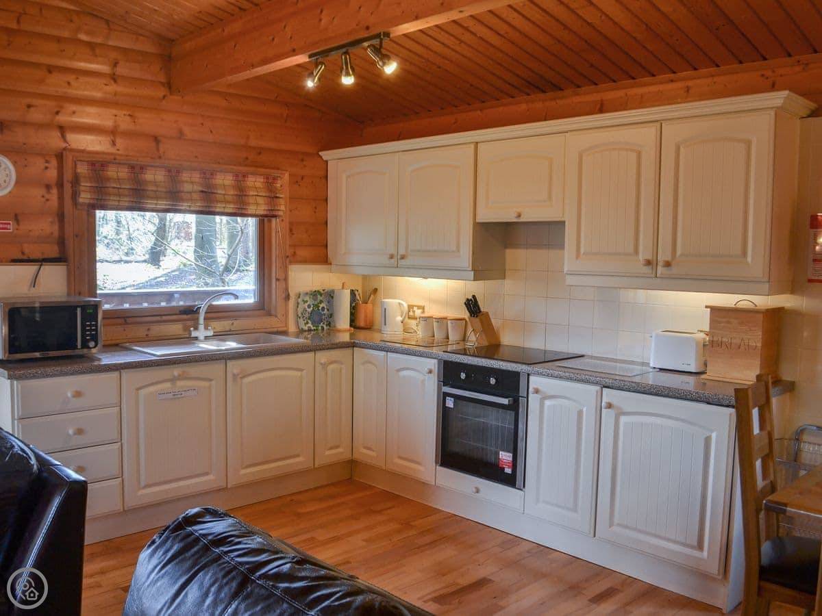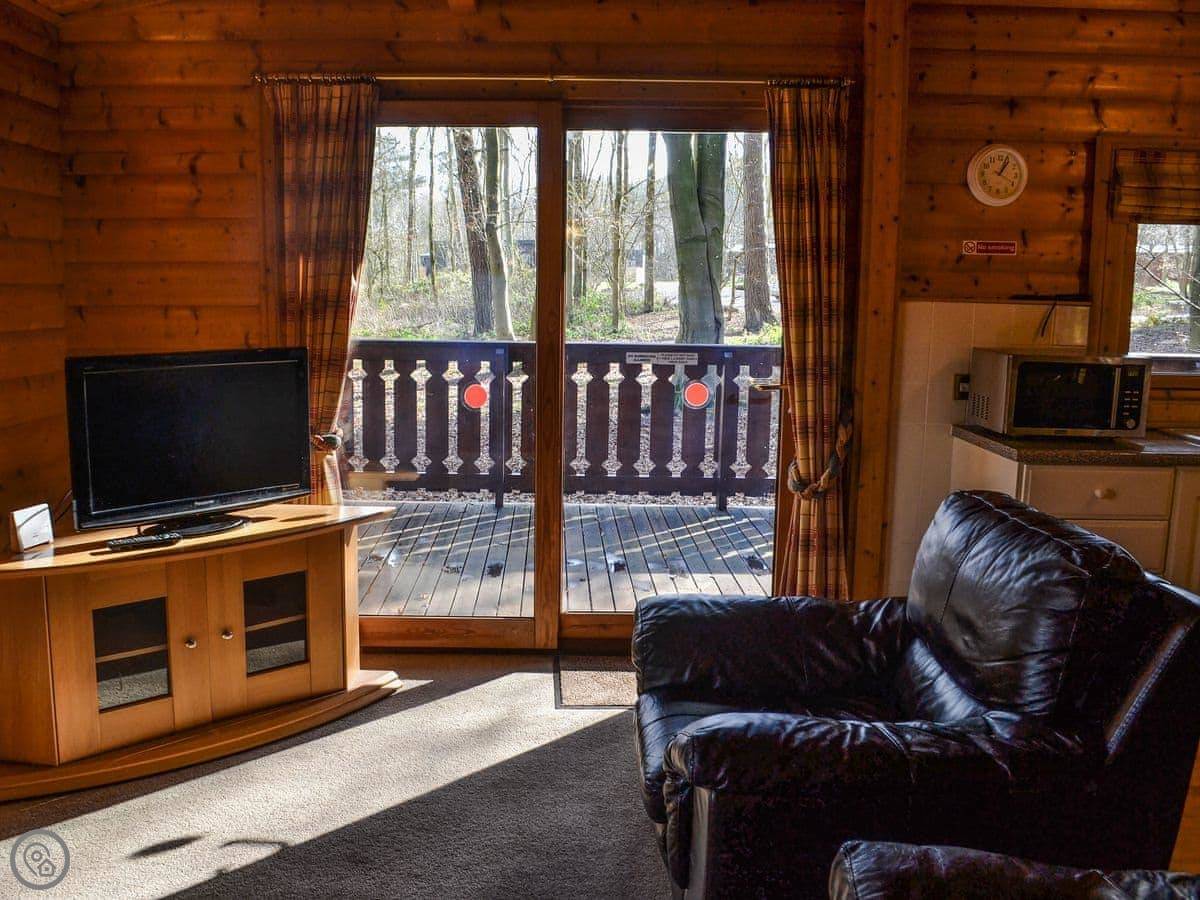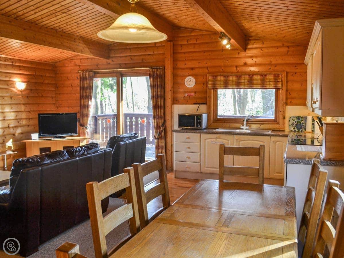 Ludensian Lodge is a wooden cabin near Louth. It's in Kenwick Woods, so the setting is trees and quiet. You've got your own parking spot right outside.