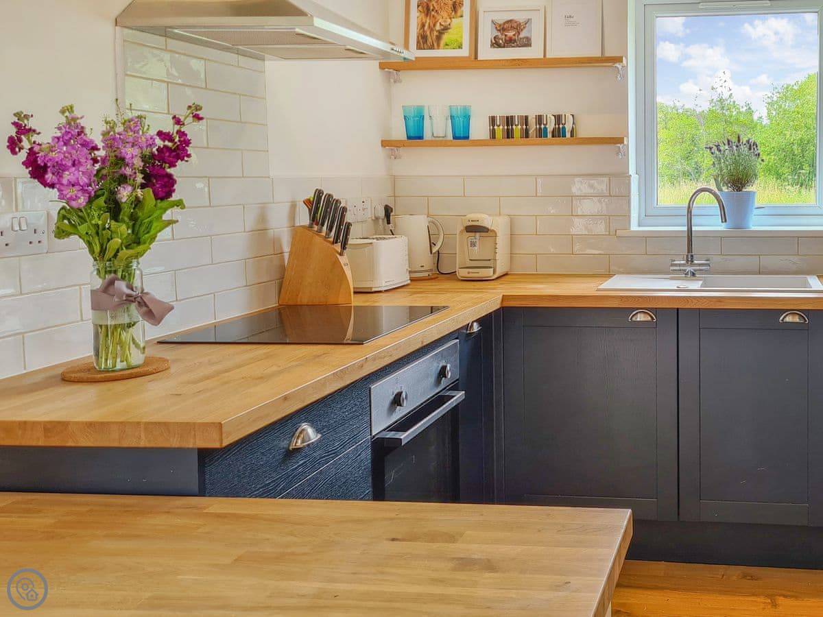This two bedroom cottage provides a bright and open space for your day to day living, with French doors leading to a decking where you can dine outside and enjoy the open view over the surrounding fields. The kitchen provides everything you will need for preparing meals, be it a fun filled occasion, or perhaps someone is being treated to a romantic occasion. Come the evening, guests can either sit outside and enjoy the surroundings or chill out in front of a movie with your feet up. Both bedrooms can be fitted to be either twin rooms or larger super kingsize. The bathroom has been finished to the same high standards as the rest of the cottage and has a shower over the bath. Outside, there are larger gardens where guests can enjoy a real taste of rural life but without being isolated; there’s a local pub serving food in the centre of Ettrickbridge for example. In the garden, guests can enjoy the scenery, the wildlife and even some horses in the distance. Fire up the BBQ and cook up some of the delights of local produce, one of the things that the Scottish Borders is famed for.